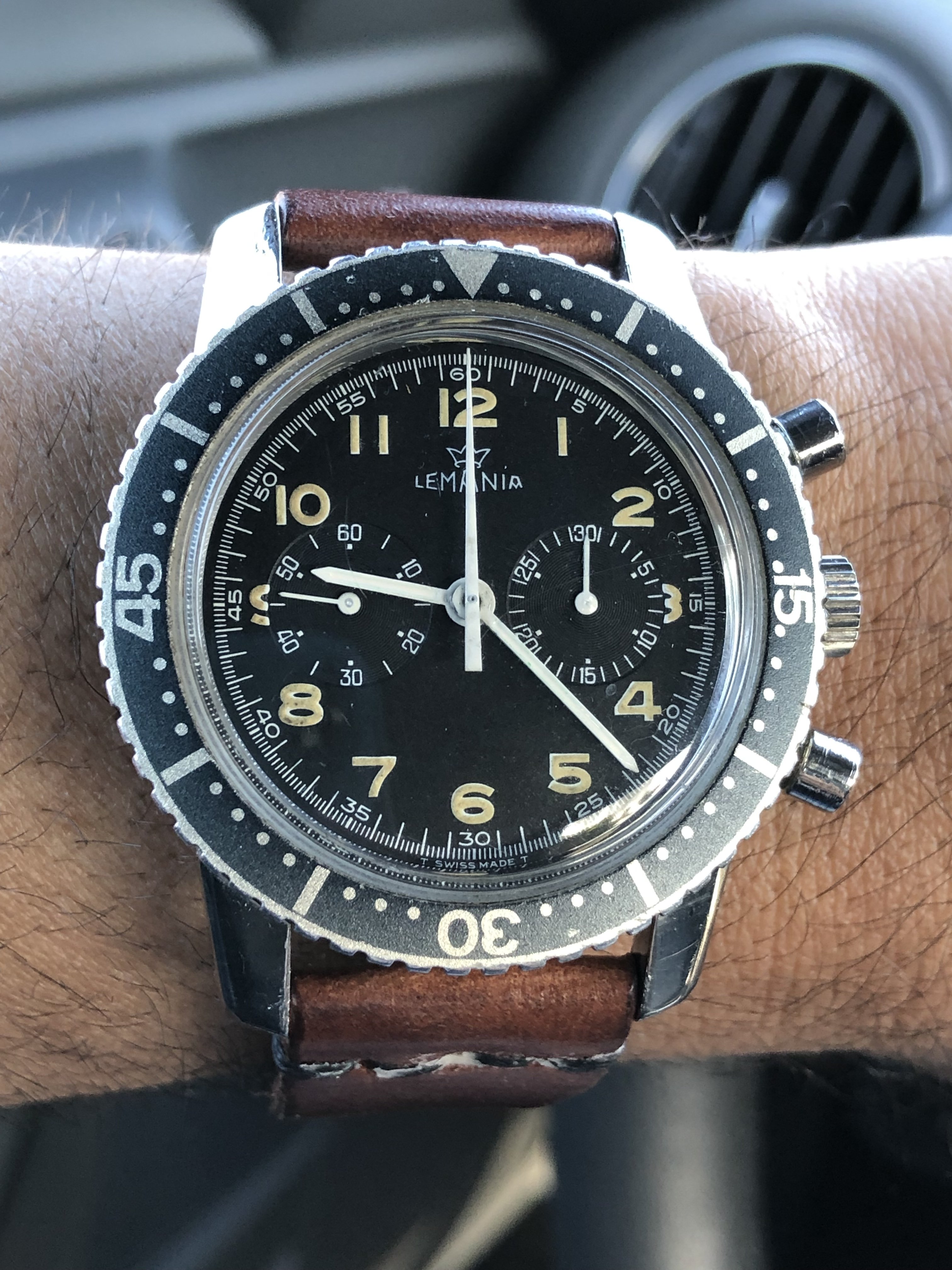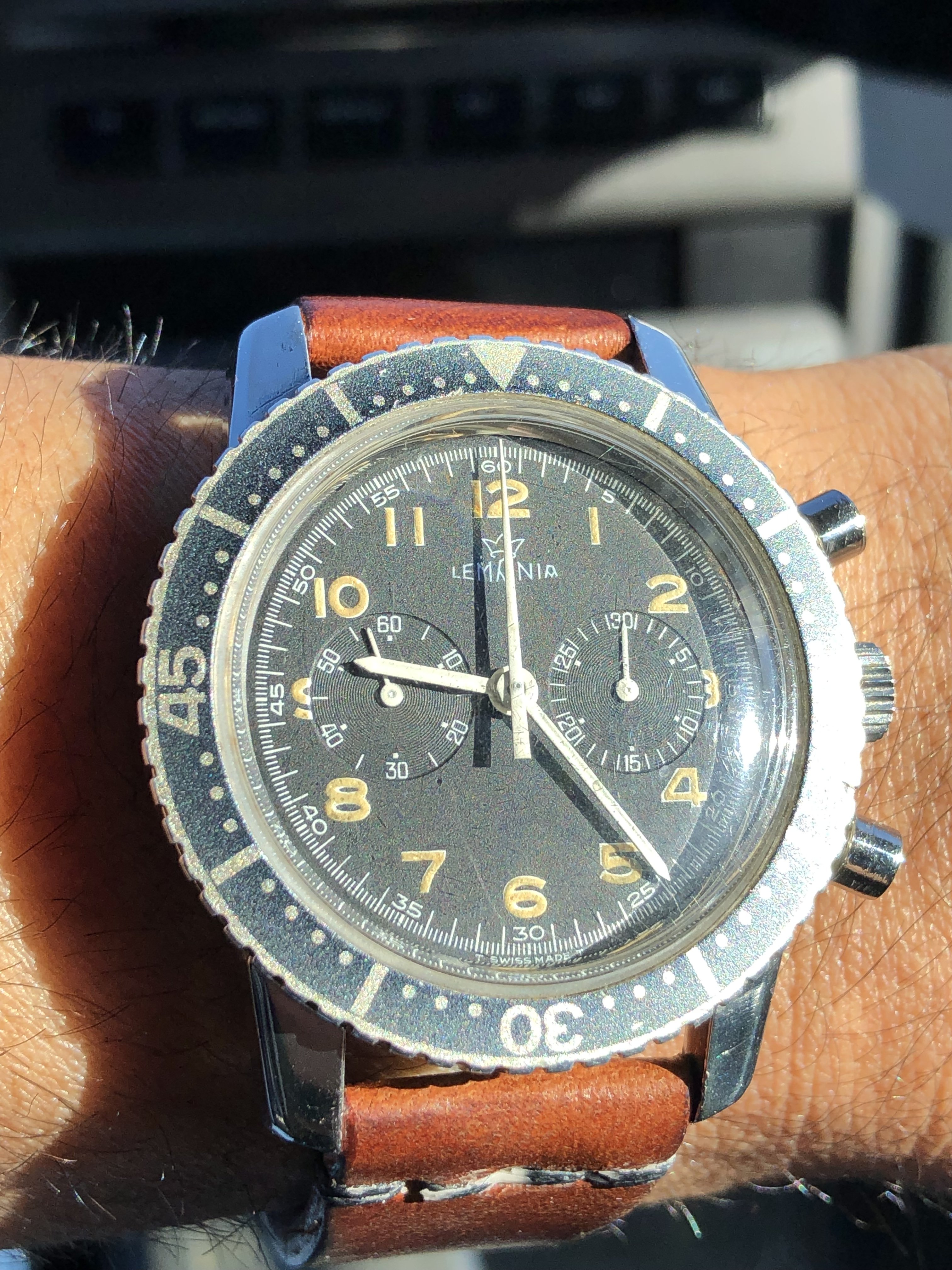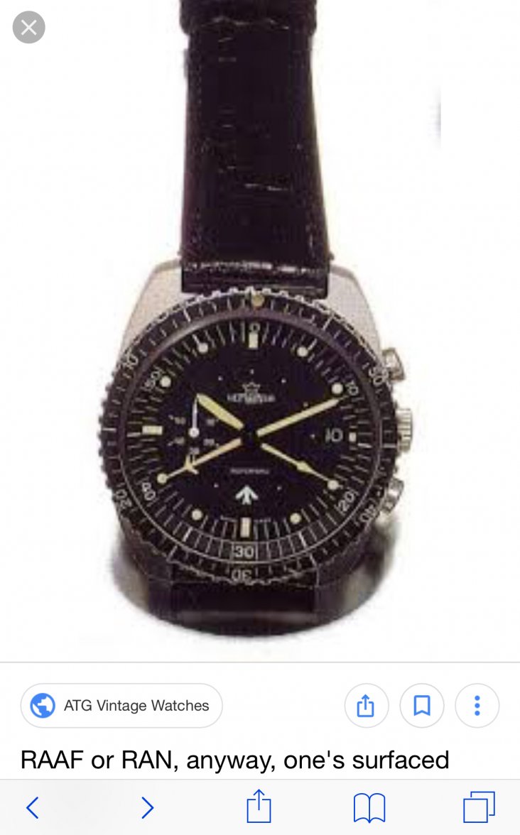This is similar to the MoD issued Lemania's of this era (of which there are no shortage on the market), but with the later cal 2220 movement found in the asymmetric-cased successors of this model for the MoD. And also AF marked, and with fixed bars. These are nowhere to be found (I did find a thread of an identical one on one of the military watch forums, but for now it eludes me...will find it and edit). I eagerly await getting this one serviced and on the wrist.