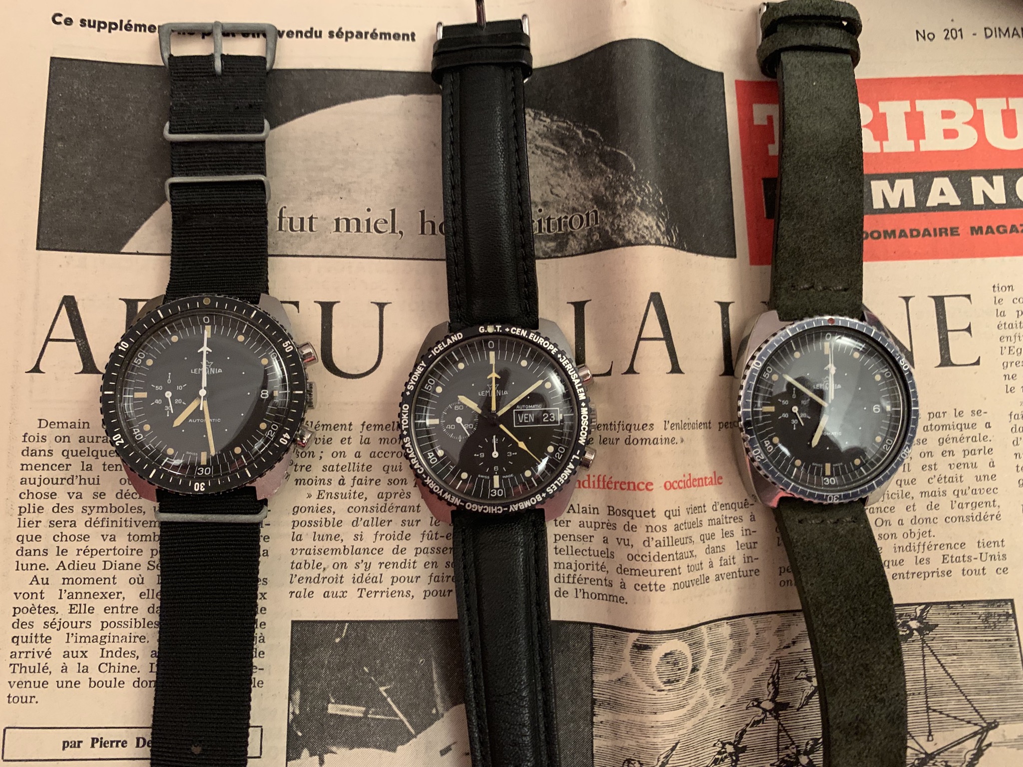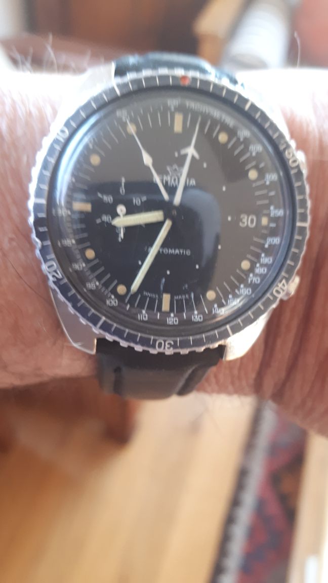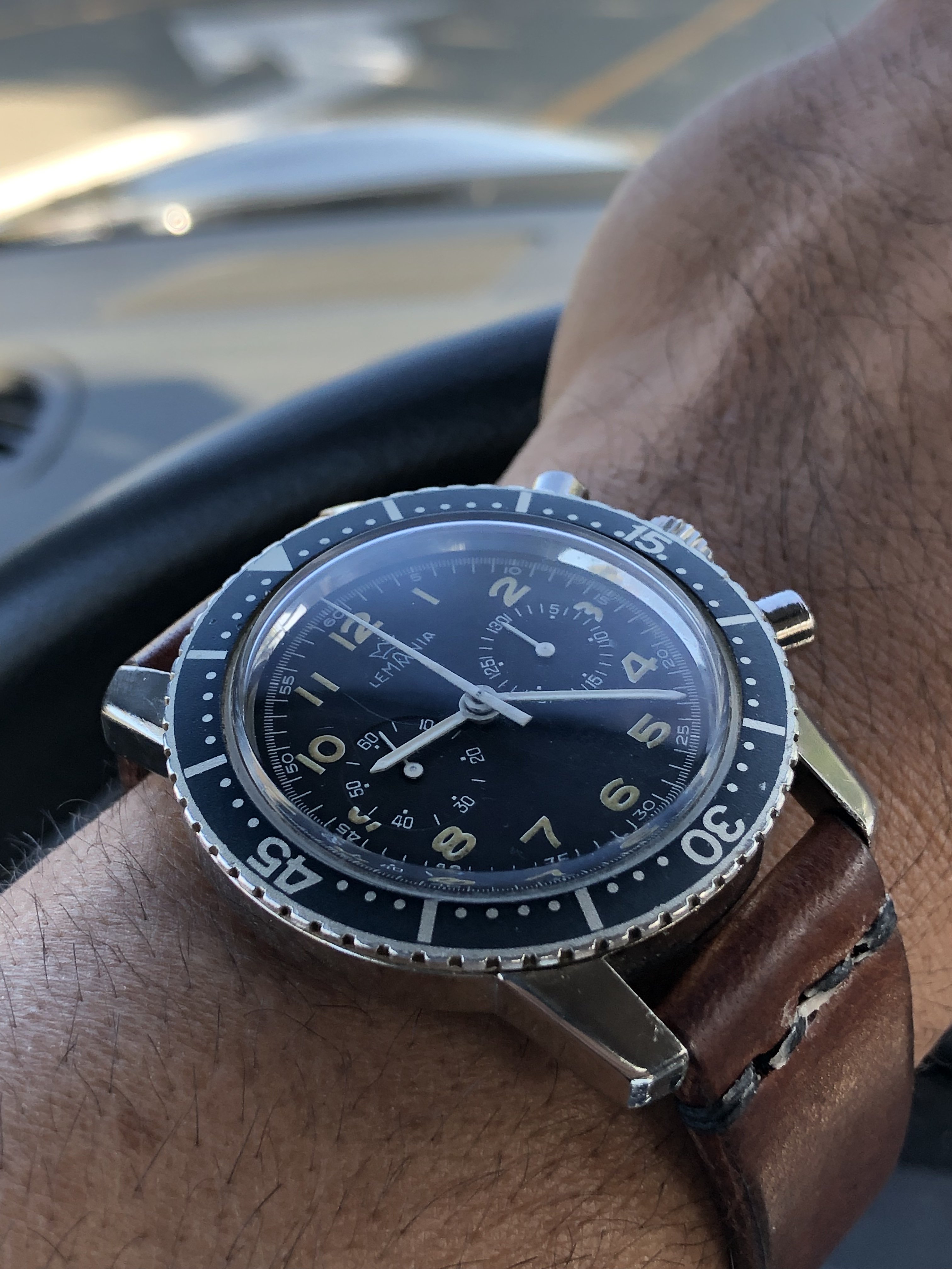 This is similar to the MoD issued Lemania's of this era (of which there are no shortage on the market), but with the later cal 2220 movement found in the asymmetric-cased successors of this model for the MoD. And also AF marked, and with fixed bars. These are nowhere to be found (I did find a thread of an identical one on one of the military watch forums, but for now it eludes me...will find it and edit). I eagerly await getting this one serviced and on the wrist.