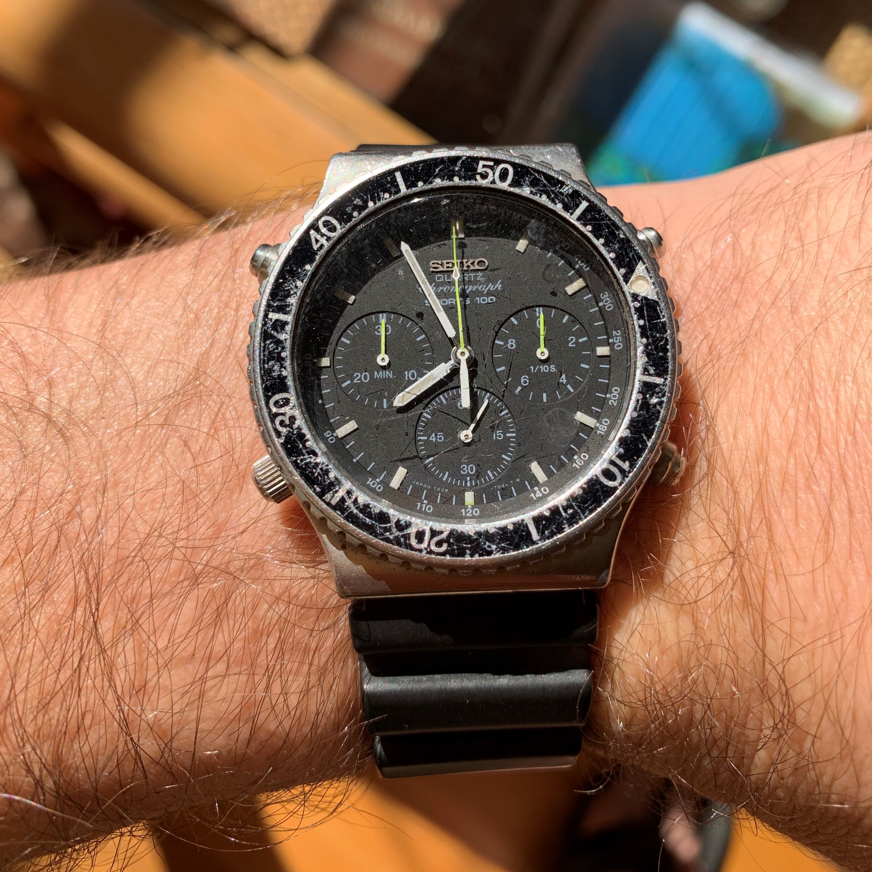 Quite strangely, I really like the customization on these two. I will not touch them... this is what an airforce pilot did to his tools. The Seiko is the only quartz Seiko in my collection. And its definitely the coolest and most comfortable (even the vintage strap is great, it’s a thin and light piece)...an absolute pleasure to wear (although I only wore it during my trip, it could use a service)...AF markings are thick.