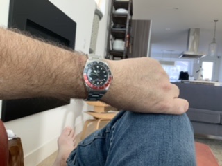 See the two photos side by side in my last post, and the NATO makes the GMT look like a kids watch. I think my wrist is almost 7.5”