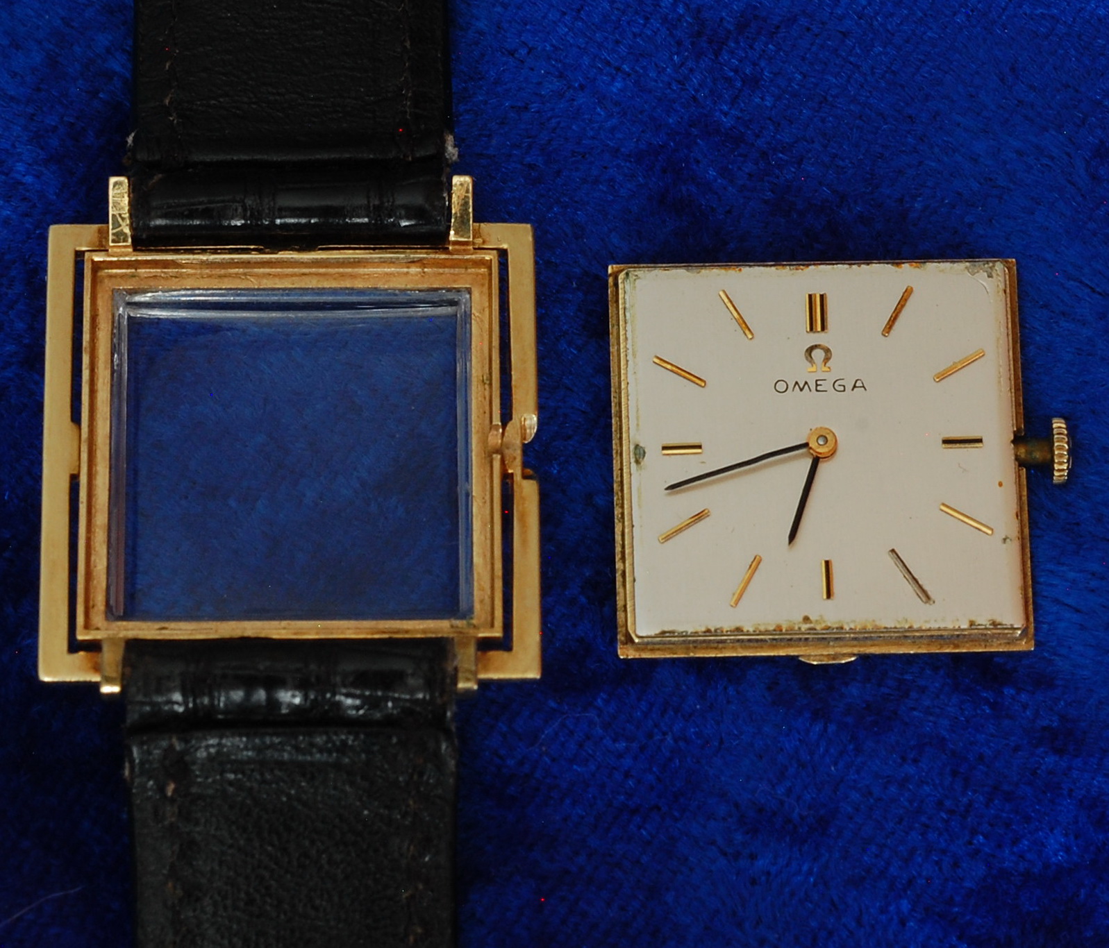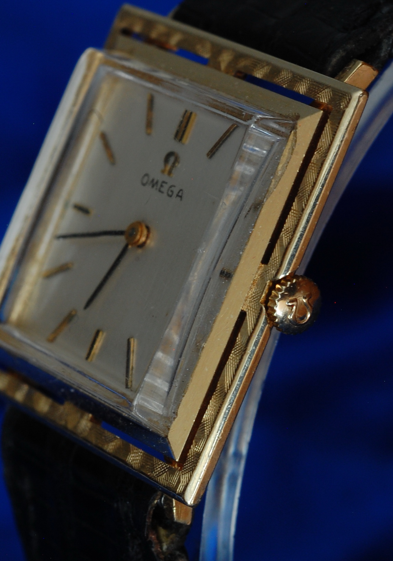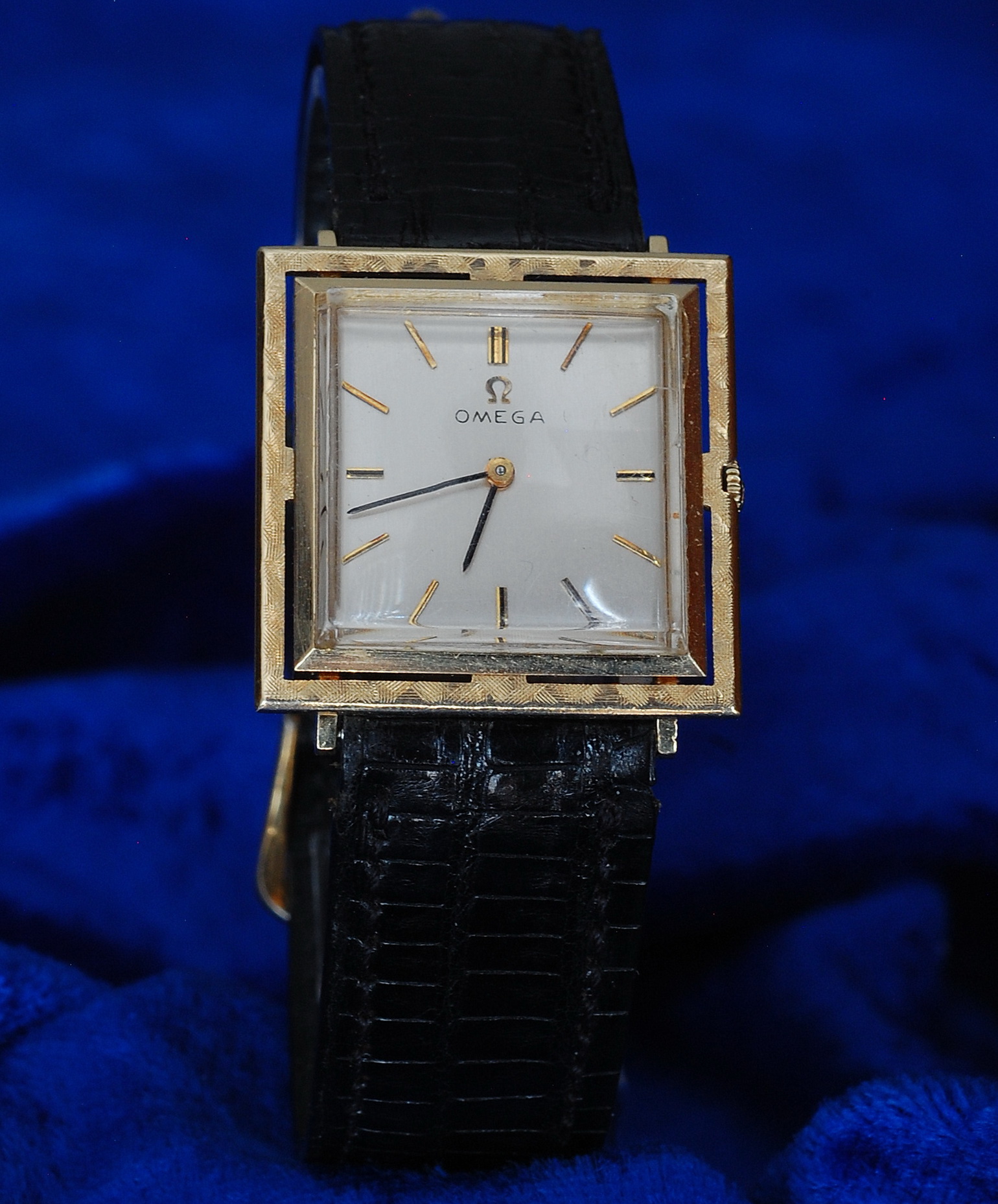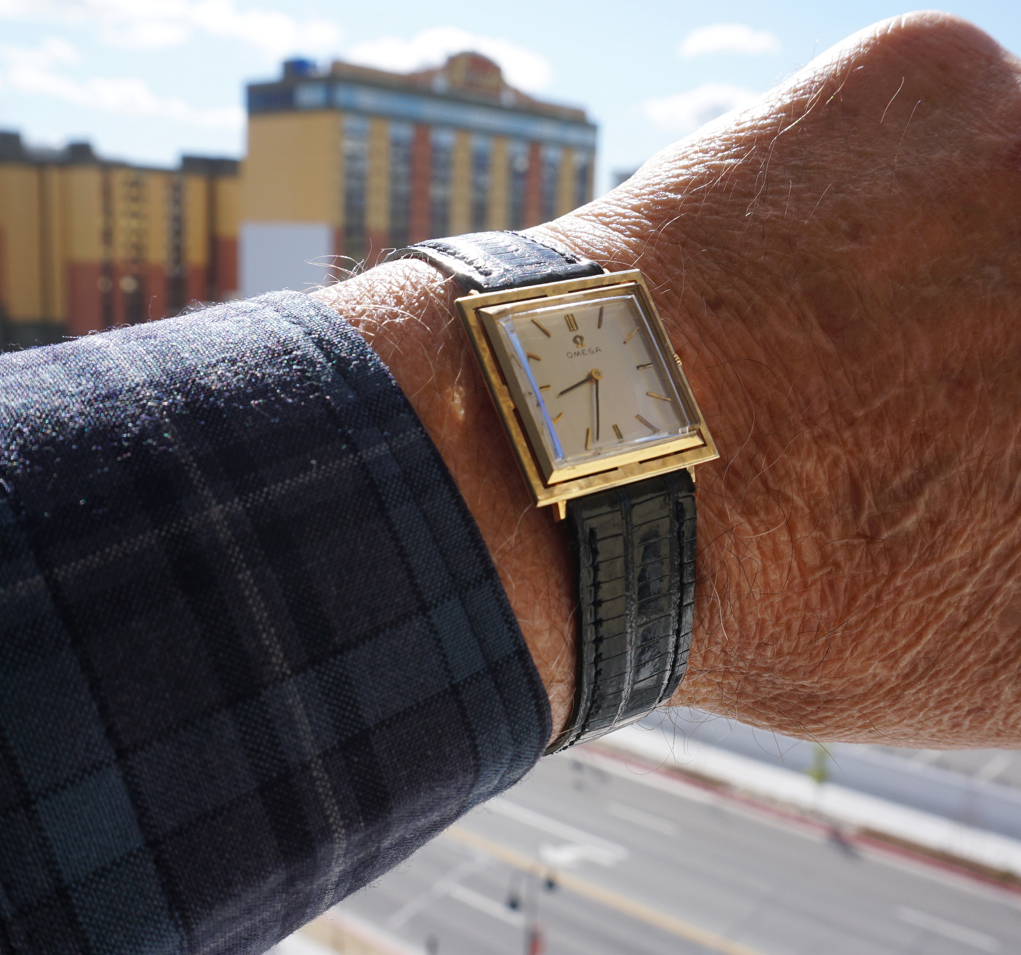 ·I have let a few nice karat gold Omega's slip by me because at 33mm or so I thought they were just a little small for my 8.5 inch wrist. Then I saw this little square number and I just really wanted to give it a new home. It runs very nicely and both the case and dial are in presentable condition. As a jeweler by training I appreciated the floating borders and the florentine graving. I have only worn it a couple of times, took me a minute to find a lizard strap that would actually fit me. I think because it is square it faces up a bit larger than the 27mm would suggest. I like the hand winding, and even though it is +- 10-15 seconds I will have it serviced soon. It will be a keeper