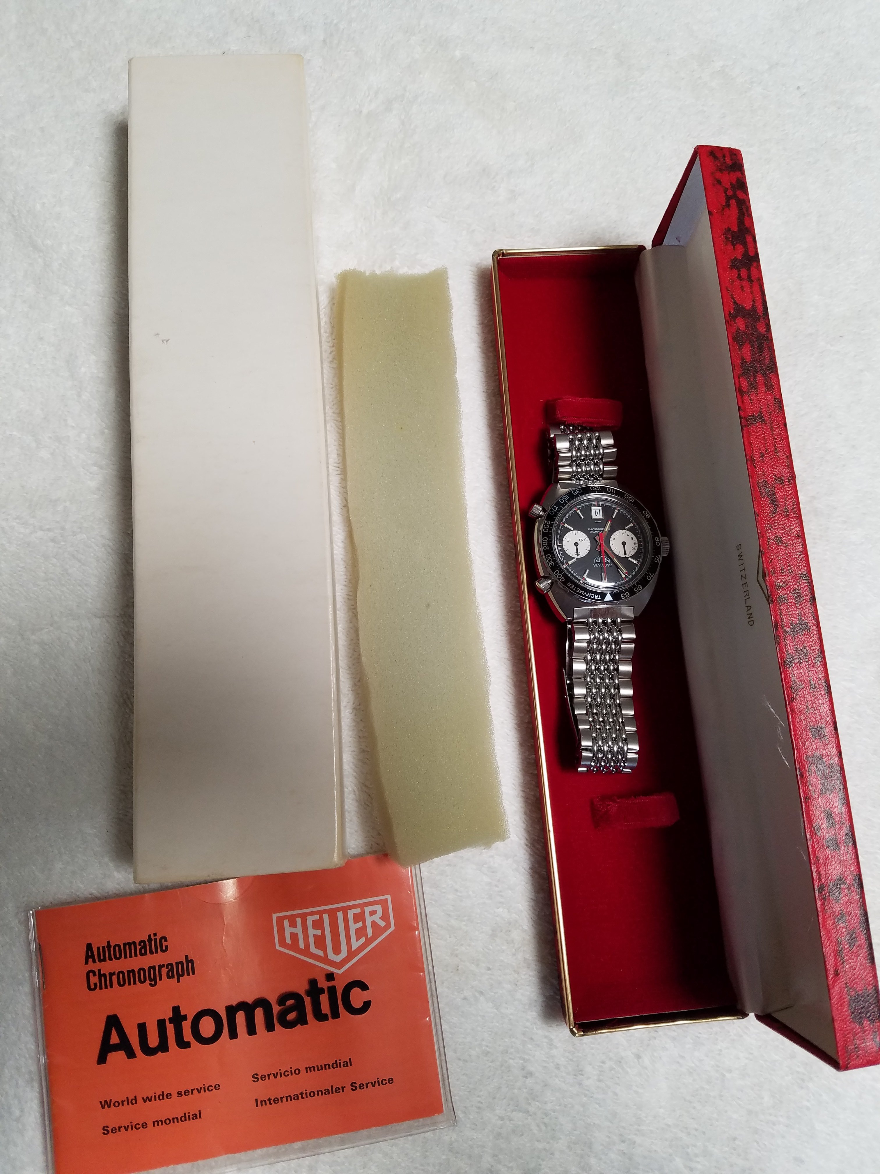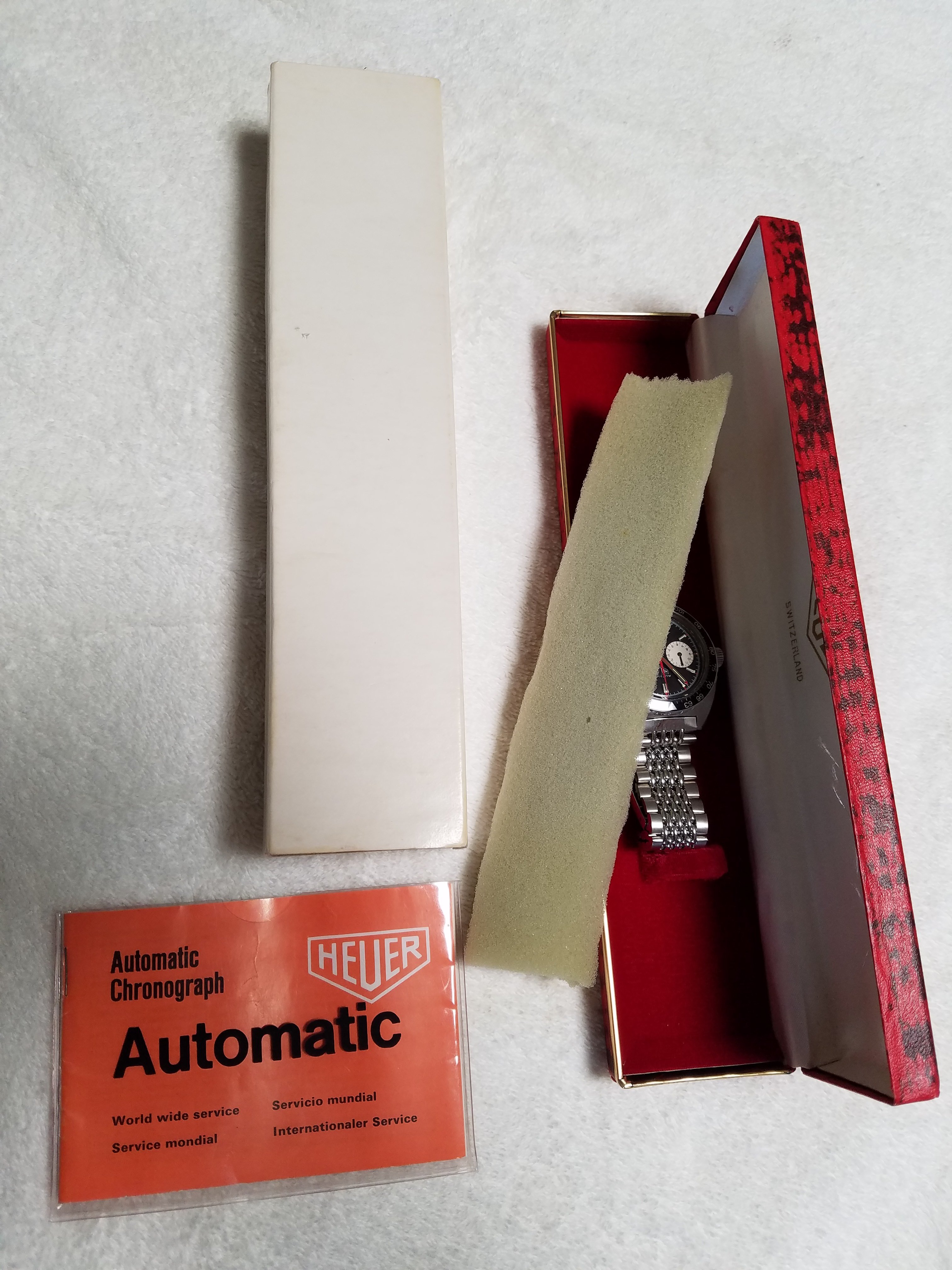 I received the watch as a gift in June, 1974 when I bought a new car. The saleslady handed me this small box and said it was my free gift. I was unaware of this program so I asked what it was and she replied a watch. I took it home and set it on the desk. A few days later I took a look at it. At that time the name Heuer meant nothing to me and I thought it was too large and with a number of features that I had no use for. I figured it was a cheap watch that the dealer got a deal on. So I put it back in the box and stuck it a drawer and would continue to wear my Accutron.
