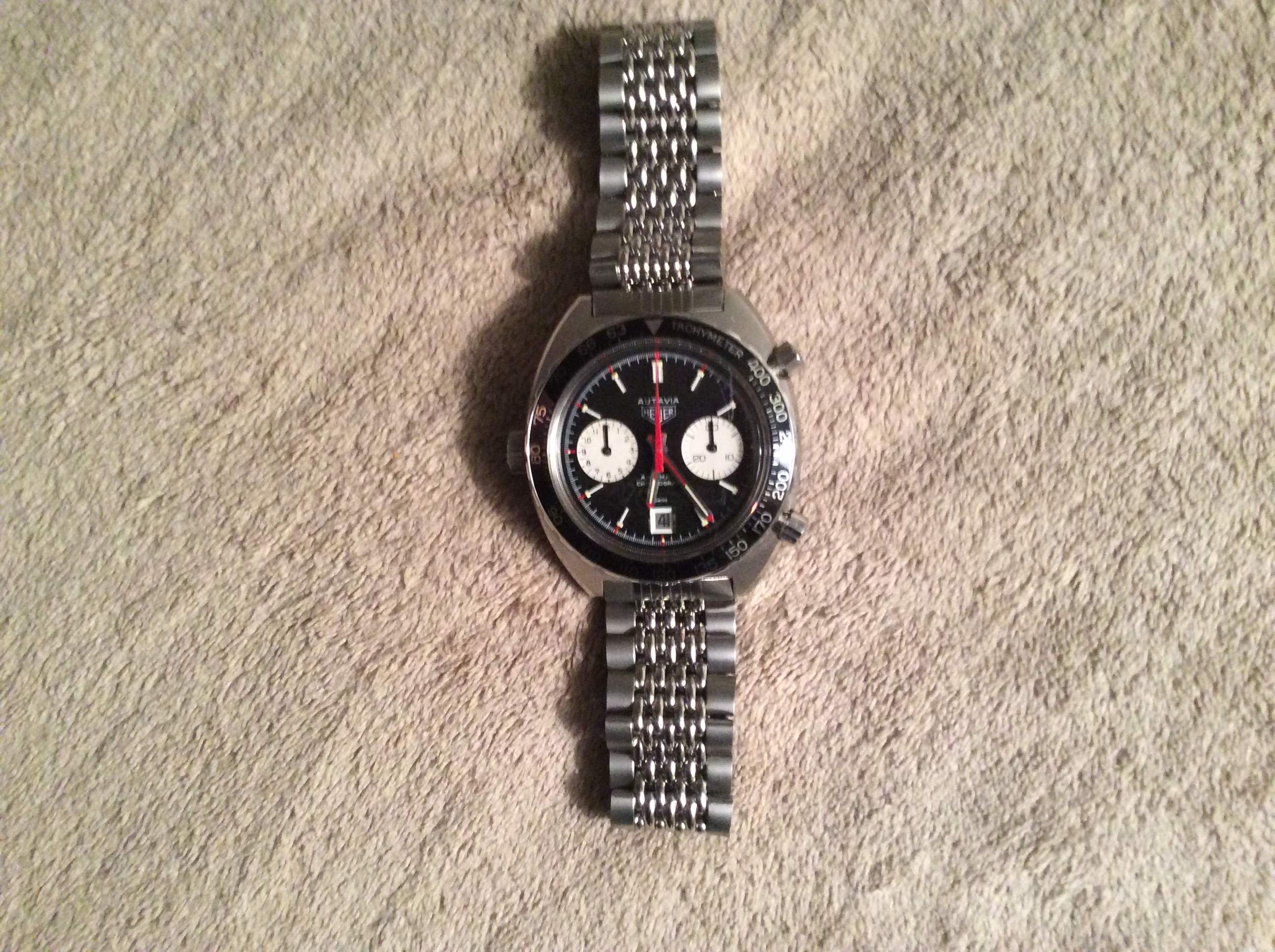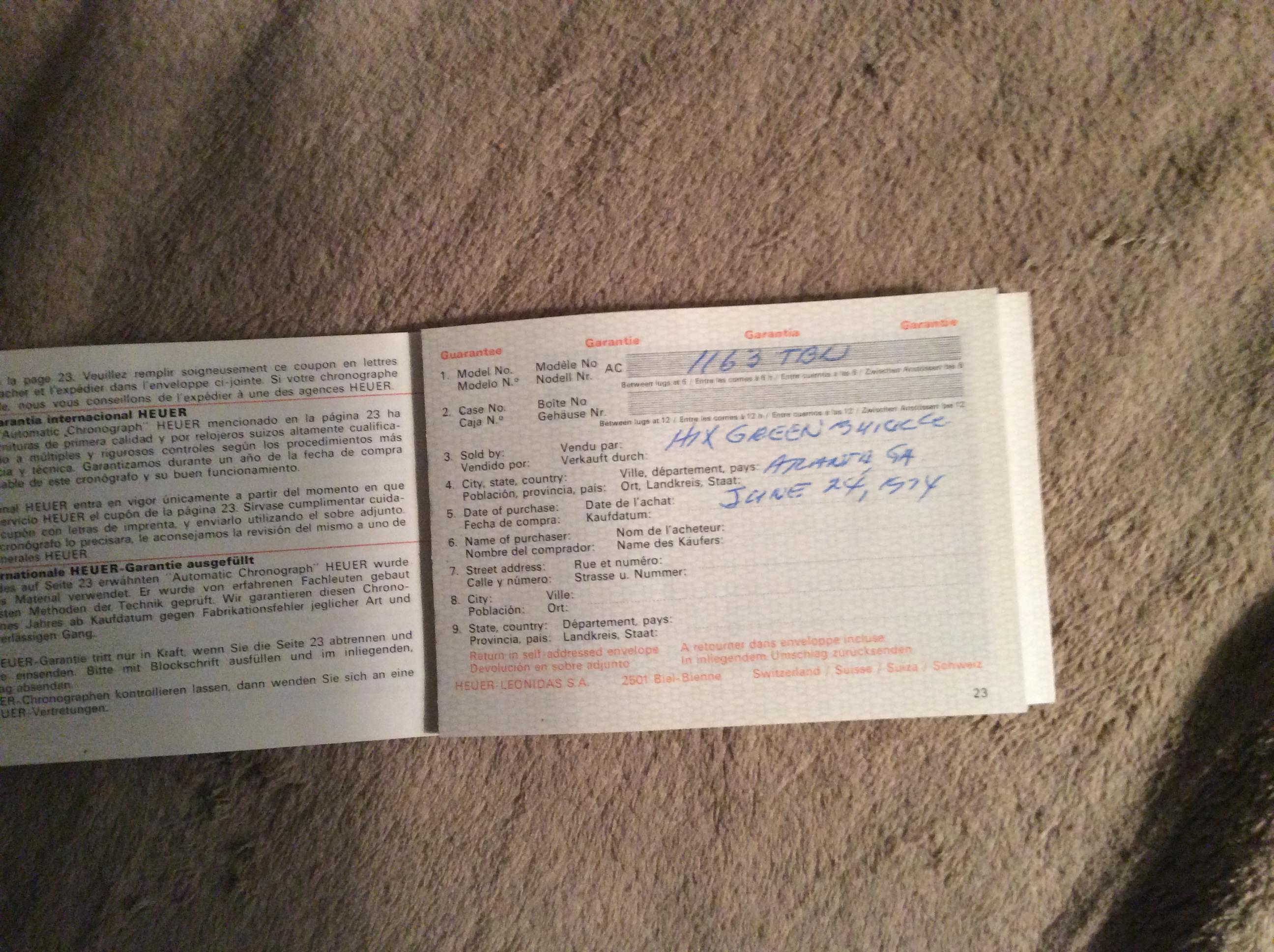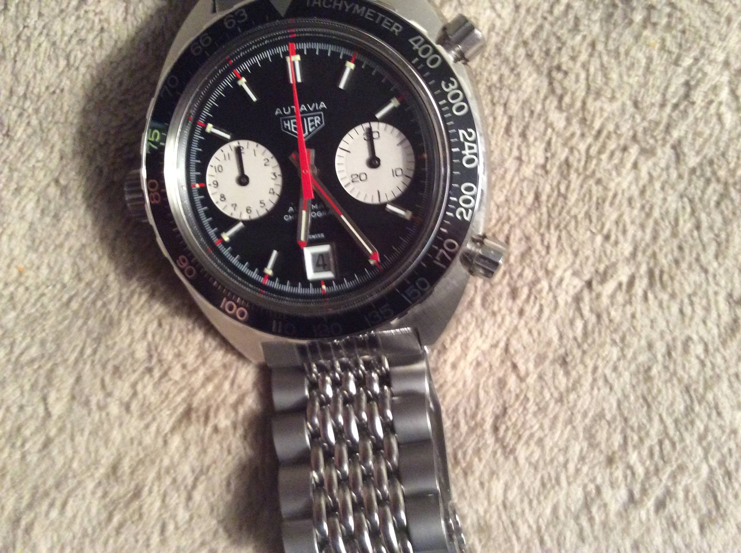 I totally forgot about it until 43 years later when I ran across it in the drawer in June, 2017. I now recognized the name Heuer and decided to do some research. That’s when I ran across David at Calibre11. He has been a huge help to me and in educating me on this watch. With the pics I sent him he was able to identify the model as the one on the warranty card was invalid. I read that the model and serial were on the back under the sticker. For some reason I was hesitant to do that and asked David and he suggested I don’t and informed me that that info was also on the bracelet lugs. I took it to my trusted watch guy and we had a lengthy conversation as he knew a lot about Heuer watches. And then he took the bracelet off for me, and after he put it back on he said he didn’t put a scratch on it so the NOS was safe.