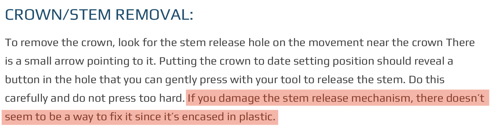 In doing so, they managed to pull the crown and stem completely out of the watch!