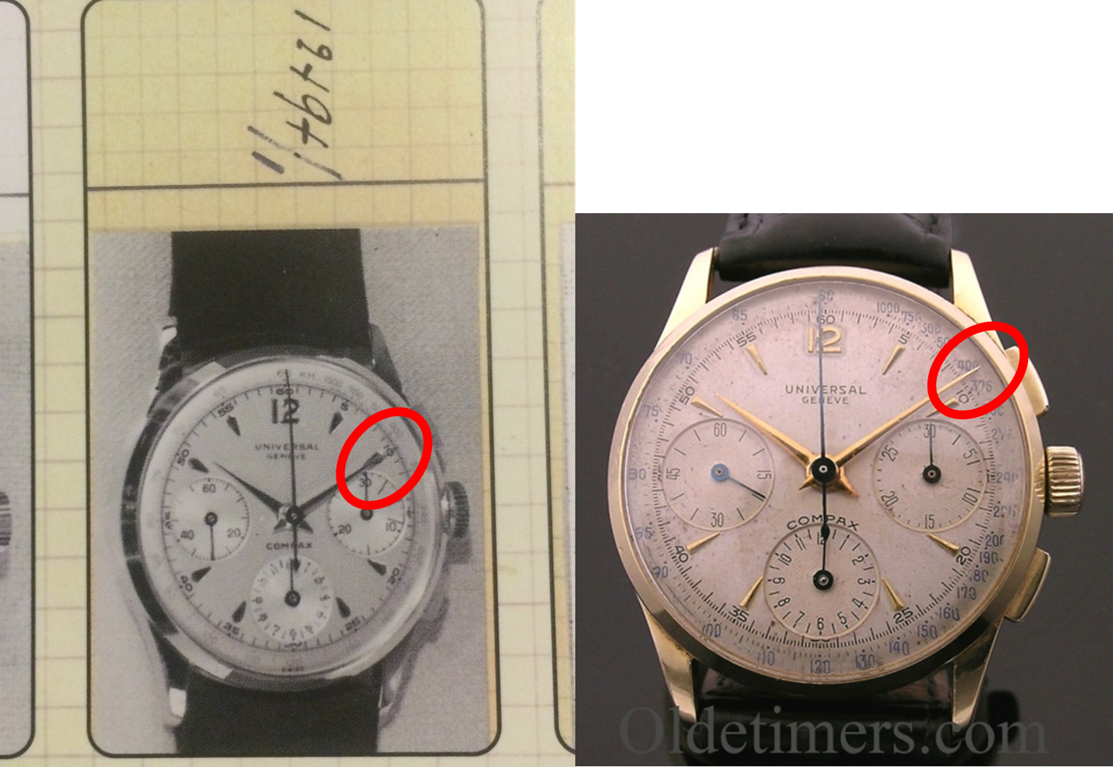 I think the hands are not original because the minutes one looks too long and I had never seen such on a Compax. In my opinion, they should be whether larger and triangle (like LouS' Compax), or leaf-shaped.