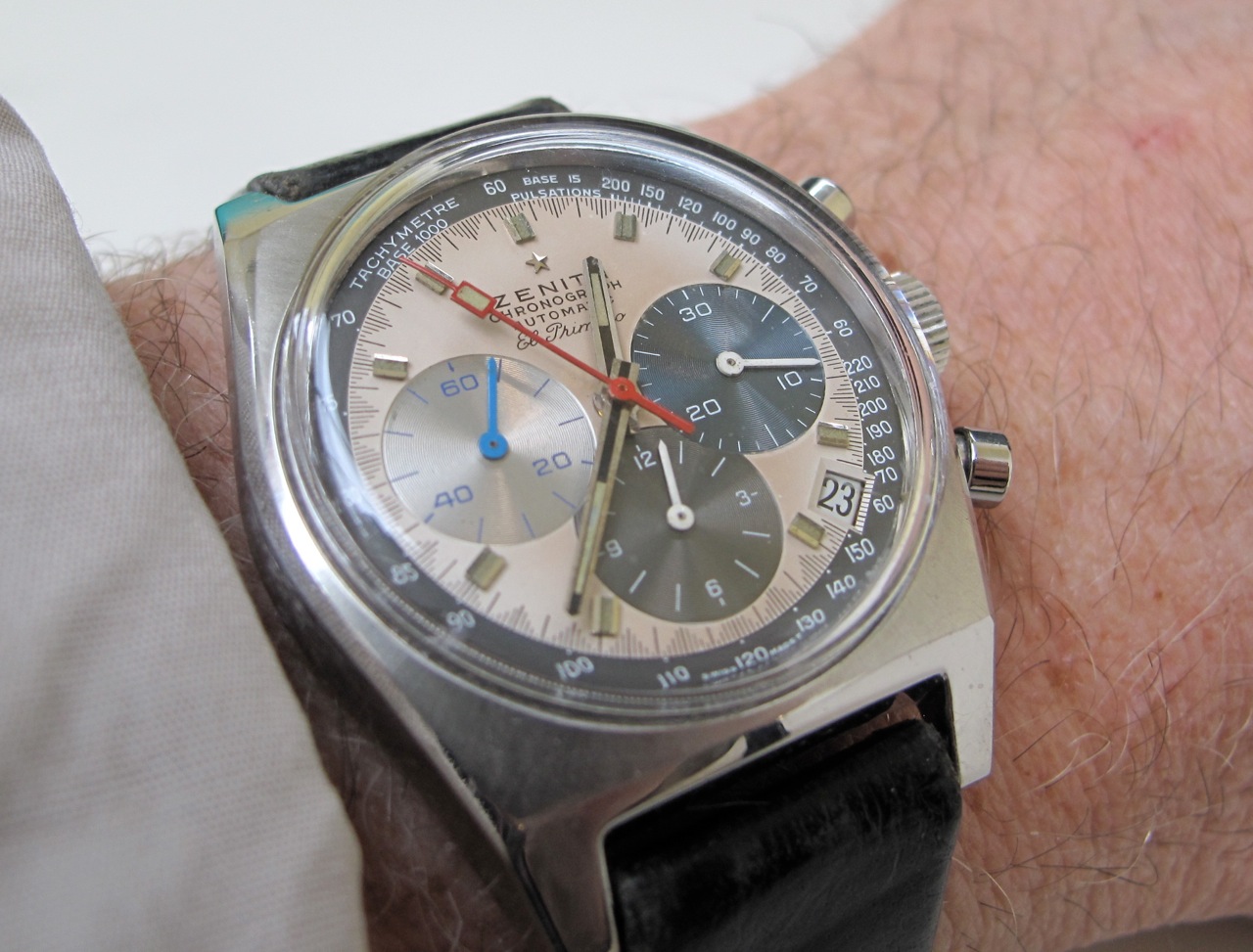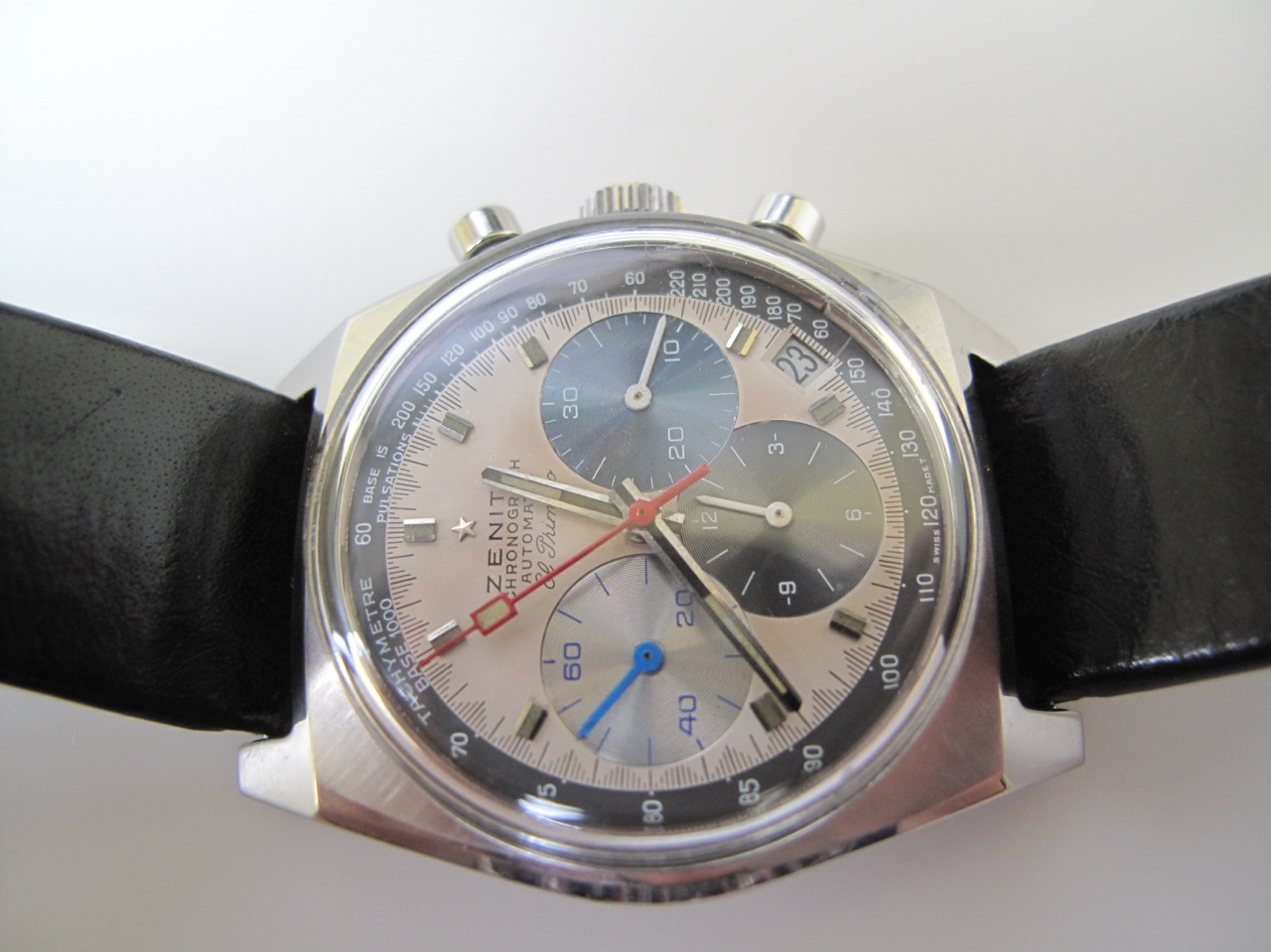 ·Laurent is a VERY hard act to follow, but here is the A3817 I was finally able to nail down, with rather plain original Zenith leather strap and steel buckle. Won in a sales contest in Indiana in 1971 by the late brother of the very fine gentleman from whom I obtained it. Zenith produced 1000 of these, in 1971.