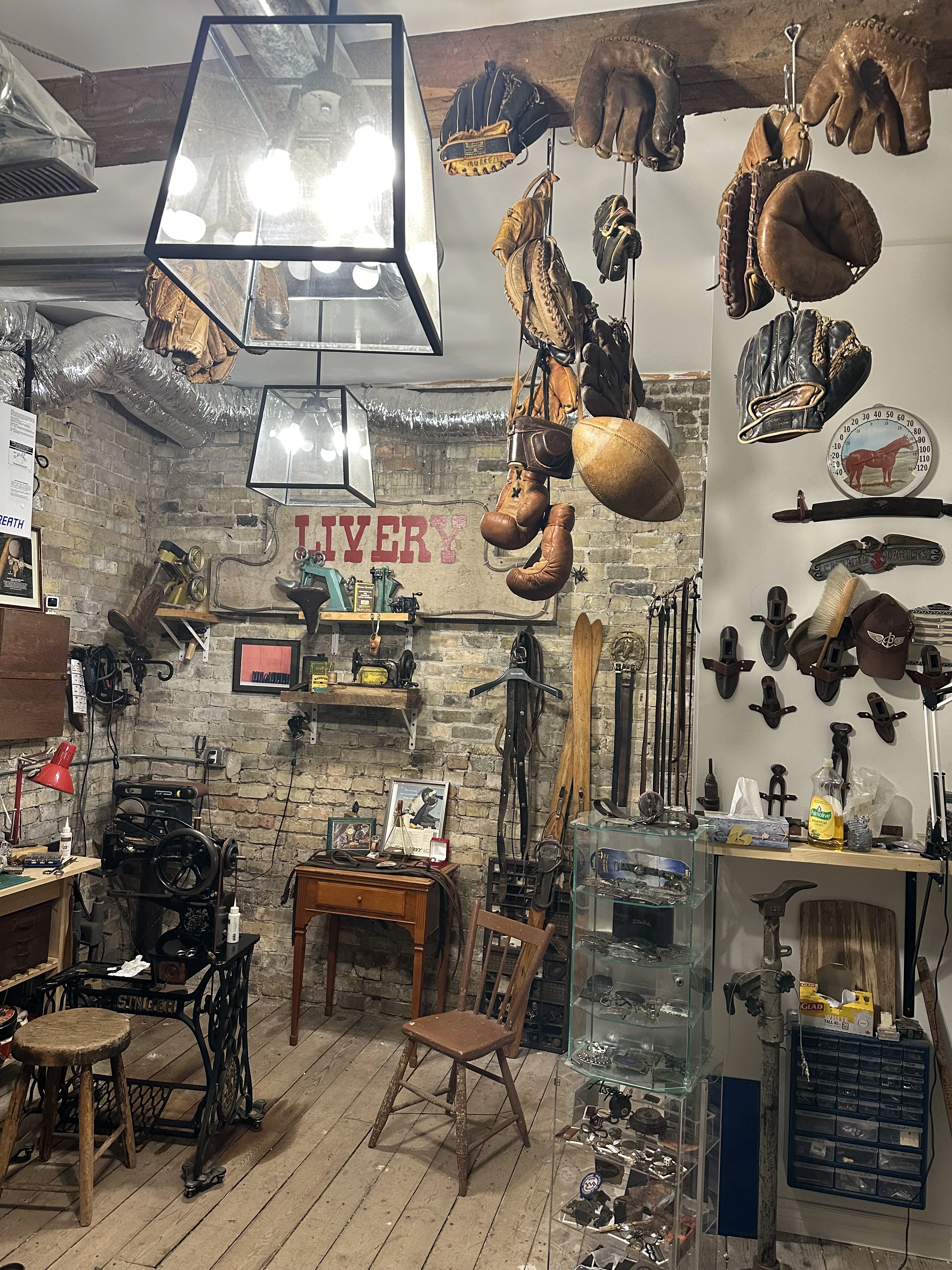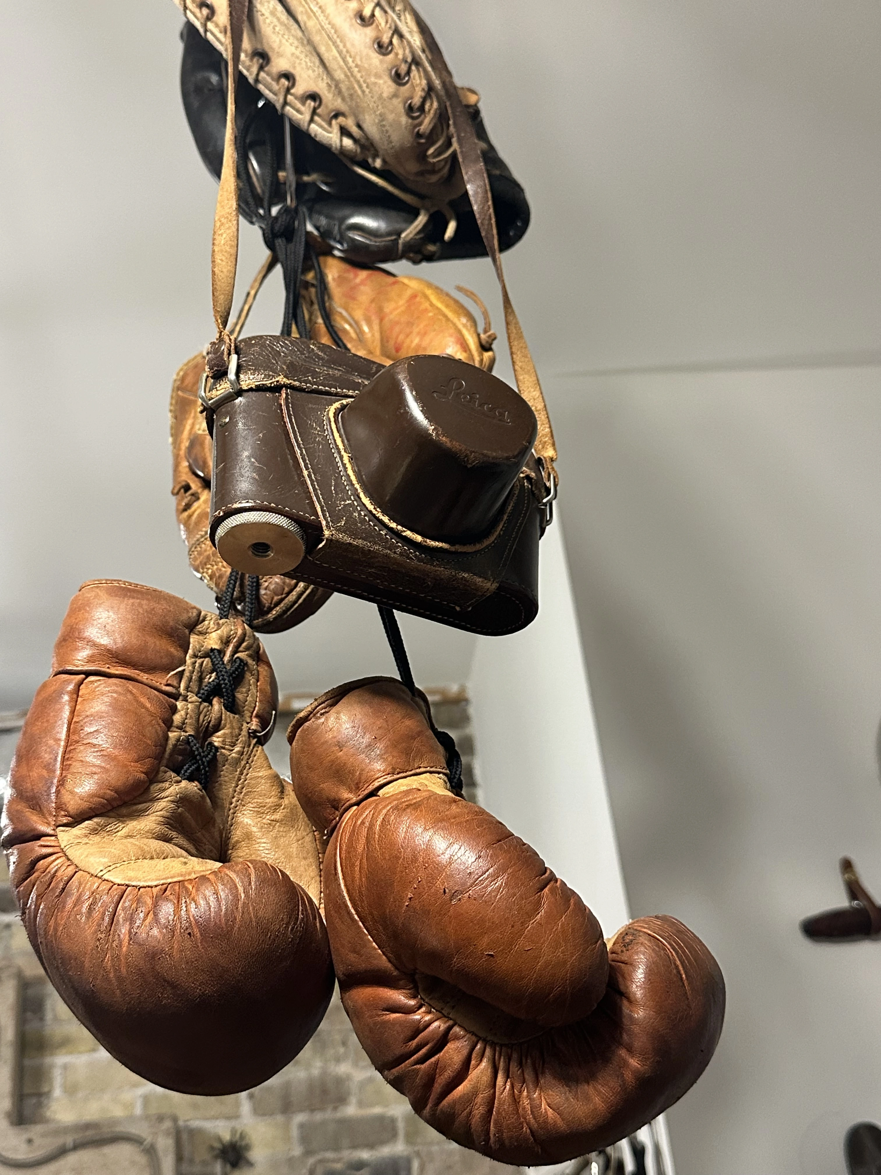 The boxing gloves needed fixing. They fit right in with the look. I make a few belts every week.
