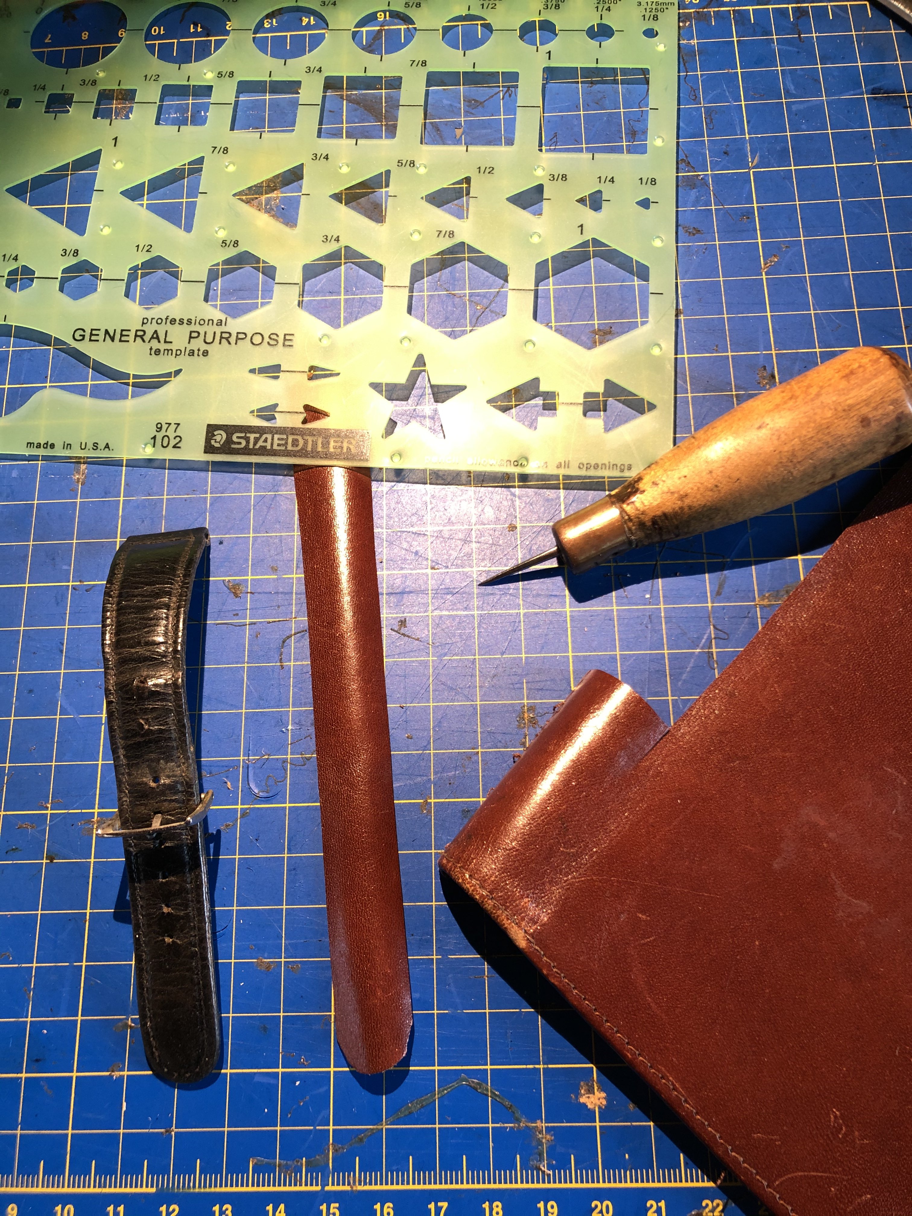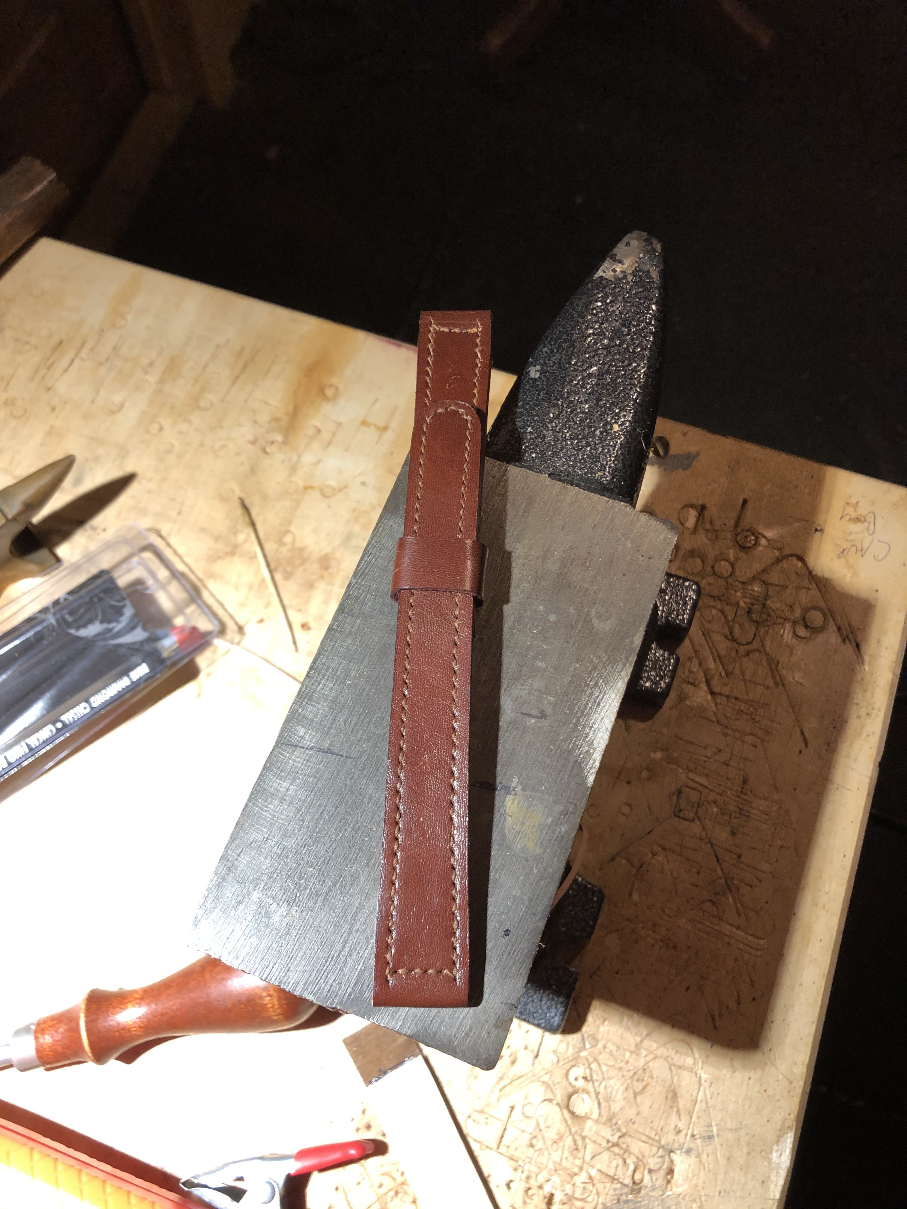 Thank you! It did not take long to cut the leather pieces and apply the cement. Less than 30 minutes and it is better to make several straps simultaneously. The drying time is also less than an hour before I stitch. The stitching takes longer, and I could use a machine but it does not forgive if I make a mistake. Here is a shot in daylight. I did most of my stitching during the Ravens / Jets game.