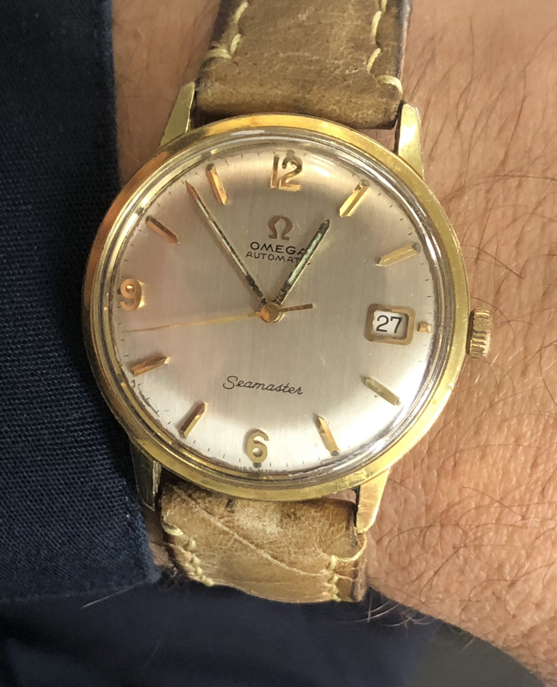 A friend of mine worked in a factory that made hockey (goalie) pads many years ago. He gave me a set of old pads filled with deer hair. I made him a strap for his late grandfather’s Seamaster with leather from the pads.