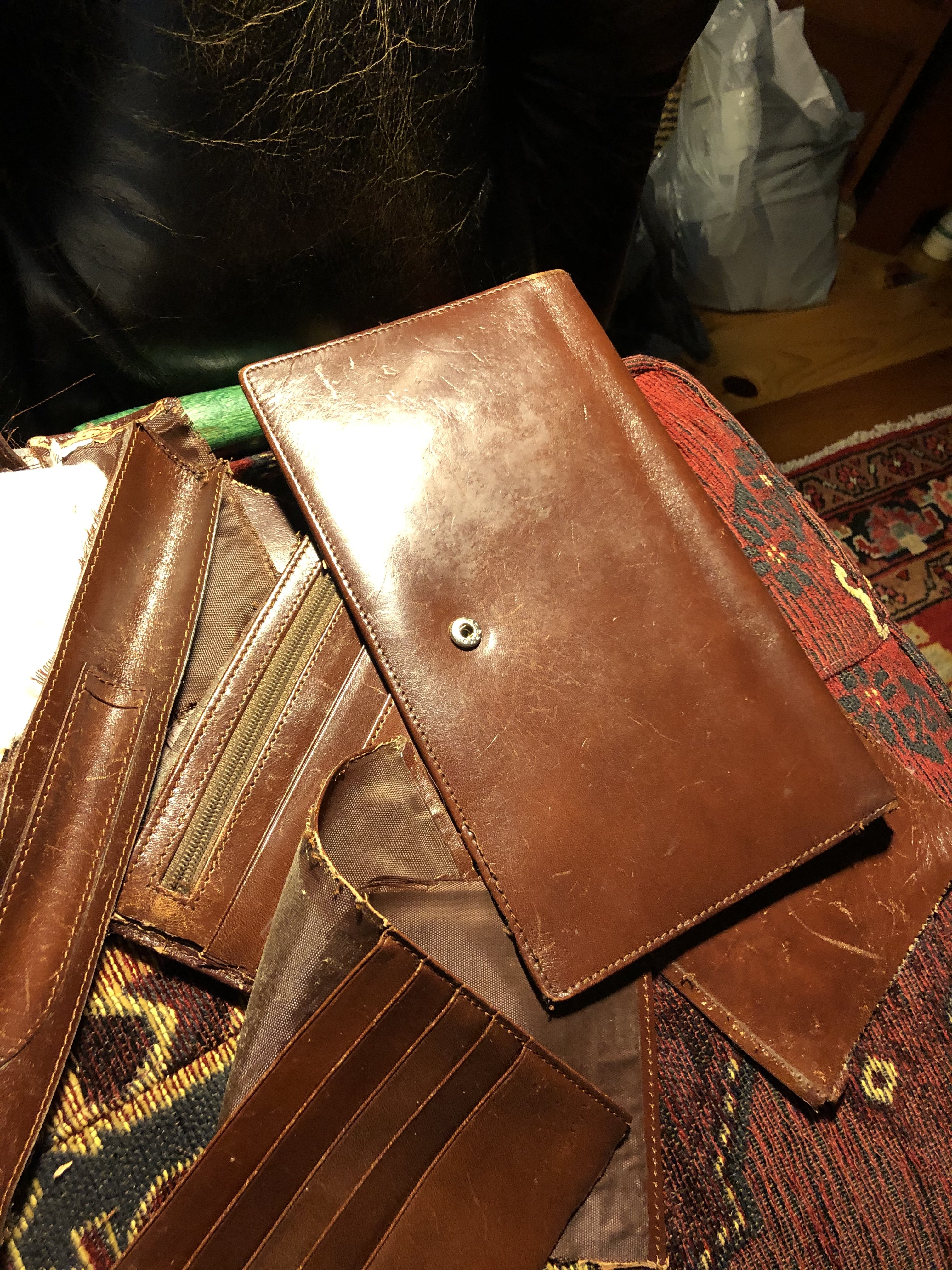 That reminded me. Years ago I was given a piece of nice quality wheeled leather luggage to use for the leather. Not much wrong with it other than a latch was missing from the extending handle.