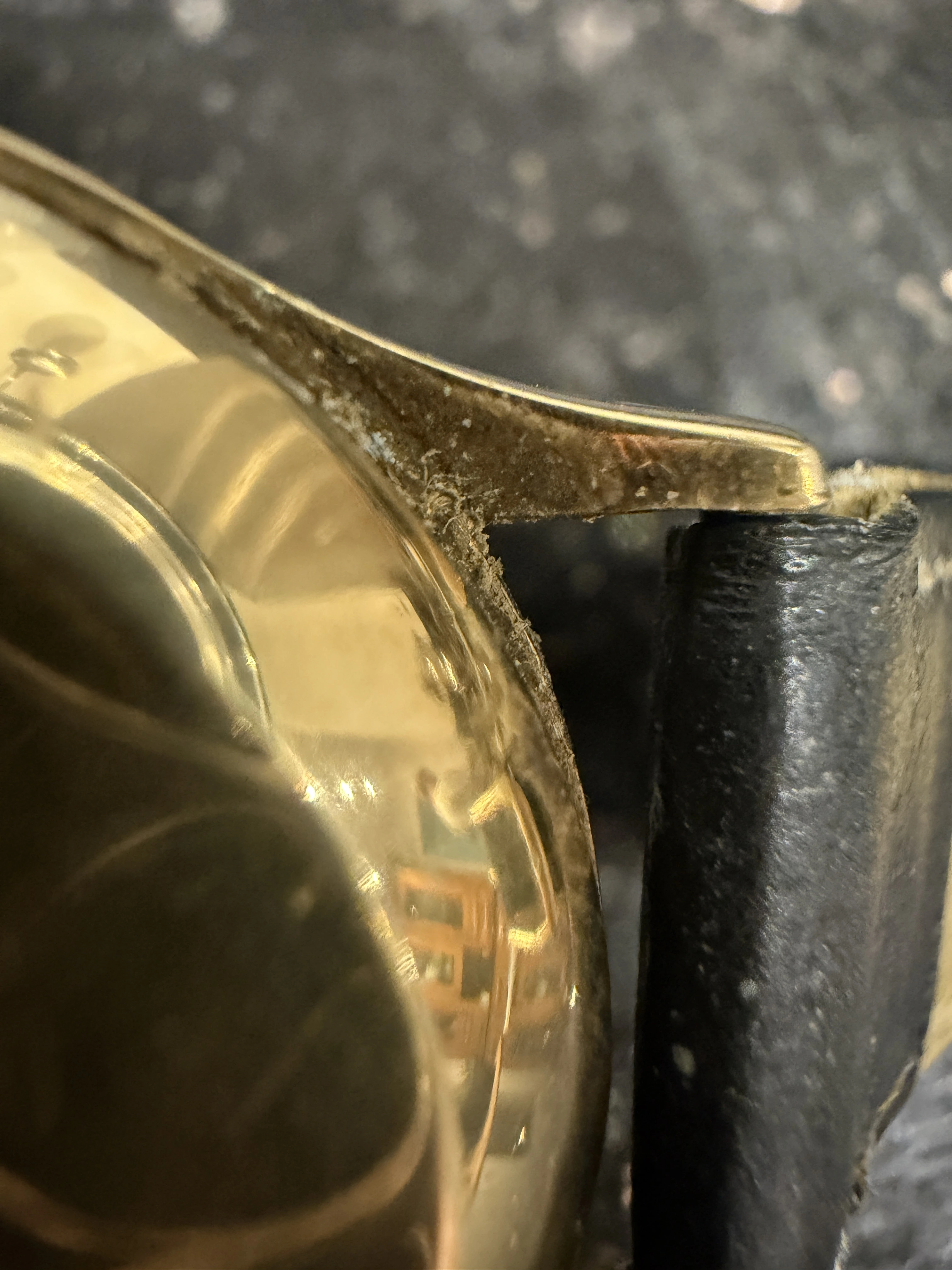 The lugs don’t have hallmarks, so it is unlikely to be a Swiss gold case.