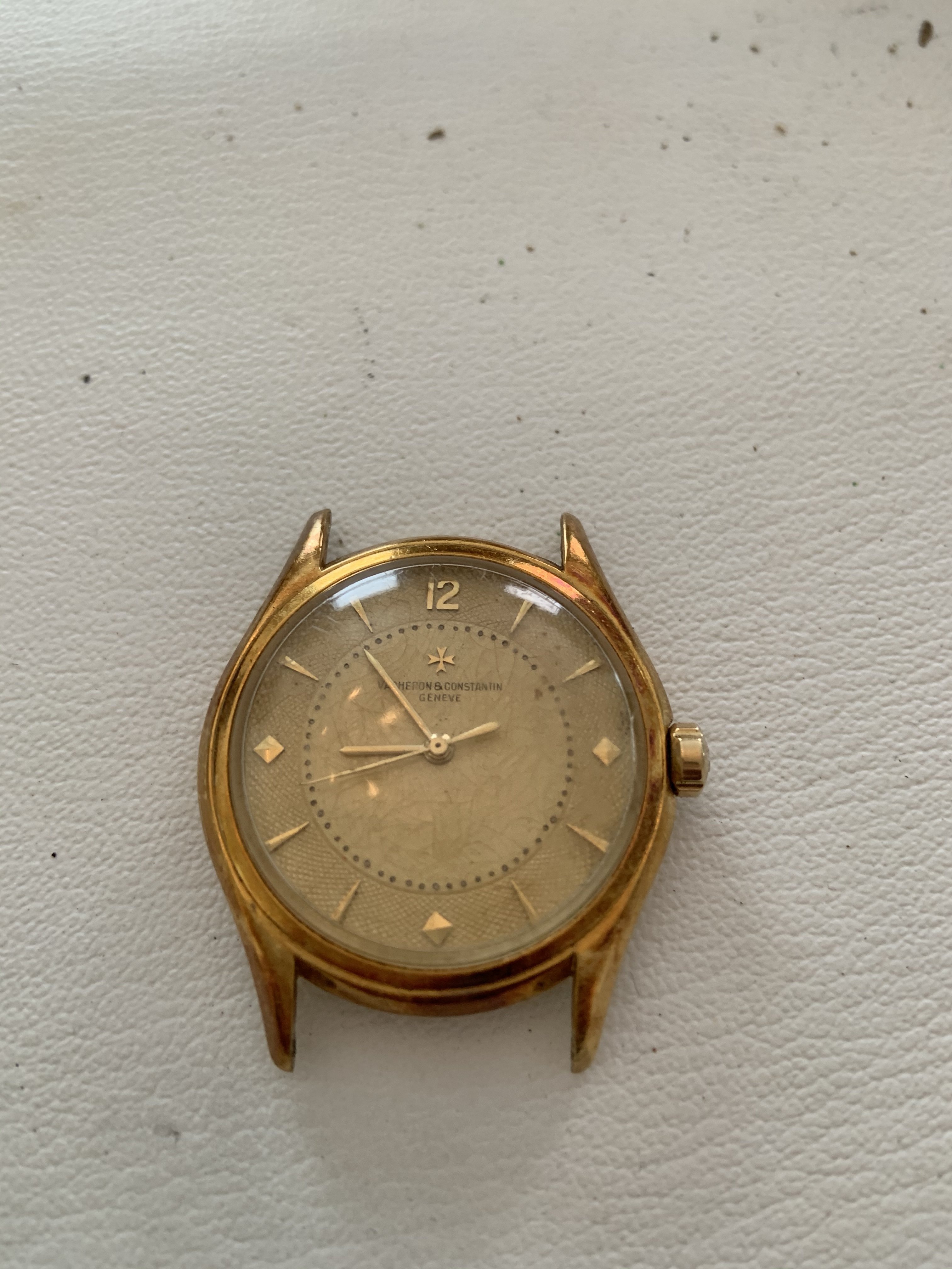 Pretty sure the dial has been redone but the crown might be original - does it have the VC Maltese cross embossed on it (I think I see a hint)? I don't think the HOdi crown is original. Watches from the 40-50's were typically worn every day; crowns just wore out; to me it's unusual to find one as original and it was also quite normal to have dials redone (during the 50's in particular) as well.