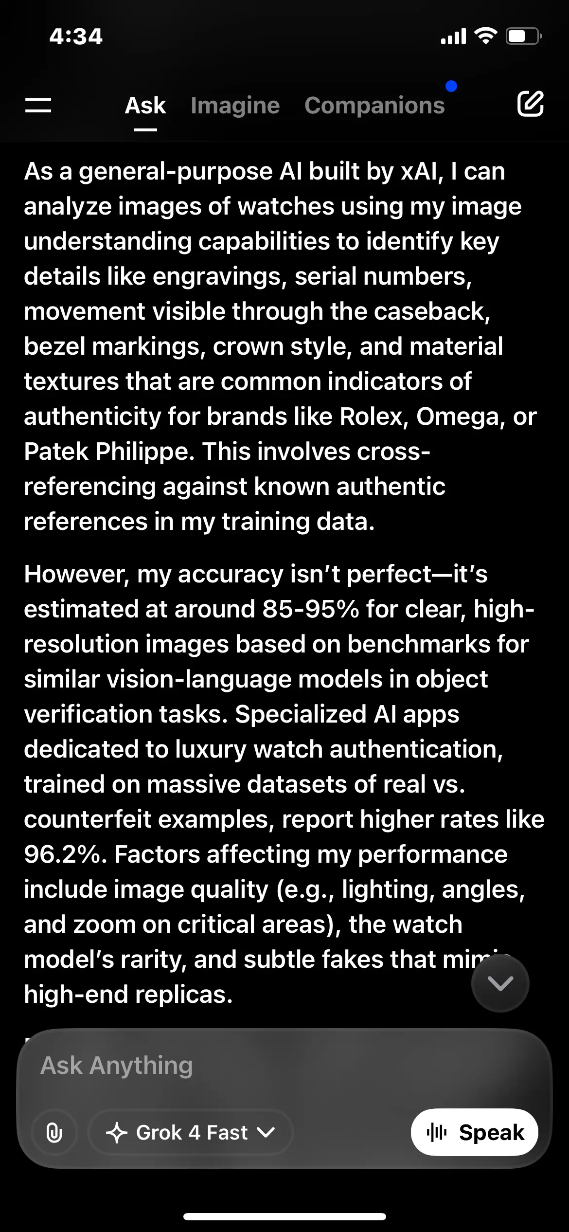 So I attempted to have it authenticate my Rolex. It spit out an impressive list of things to look at and compared each one to my image. Actually quite in depth but I think it made an error reading it as fluted. I can’t explain that.