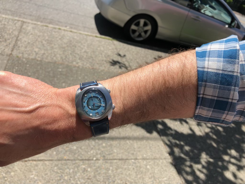 I was out doing some watch shopping and was able to try ...this blue dialled stunner