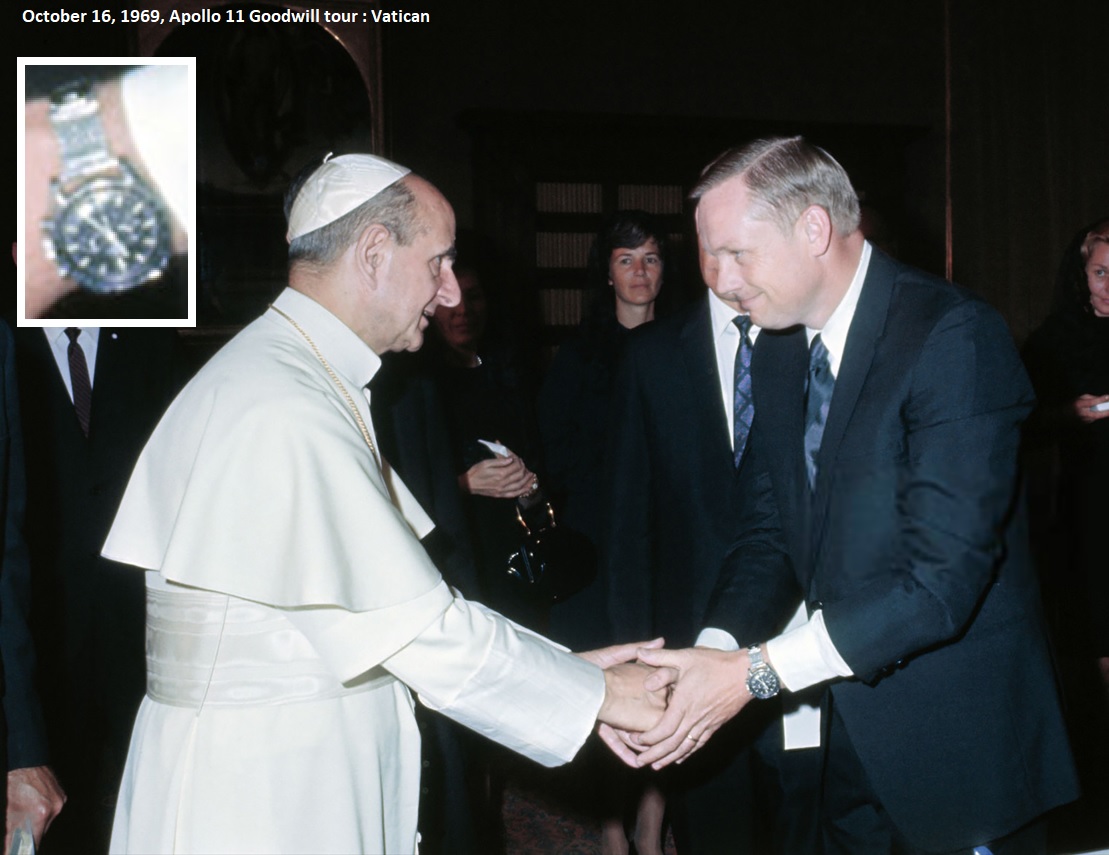 The first " Mercury 7 " and early Apollo astronauts received many gifts, among which wrist watches (Accutron, Bulova, Le Coultre, Vacheron Constantin)... some of those were auctioned since the 1990s onwards.