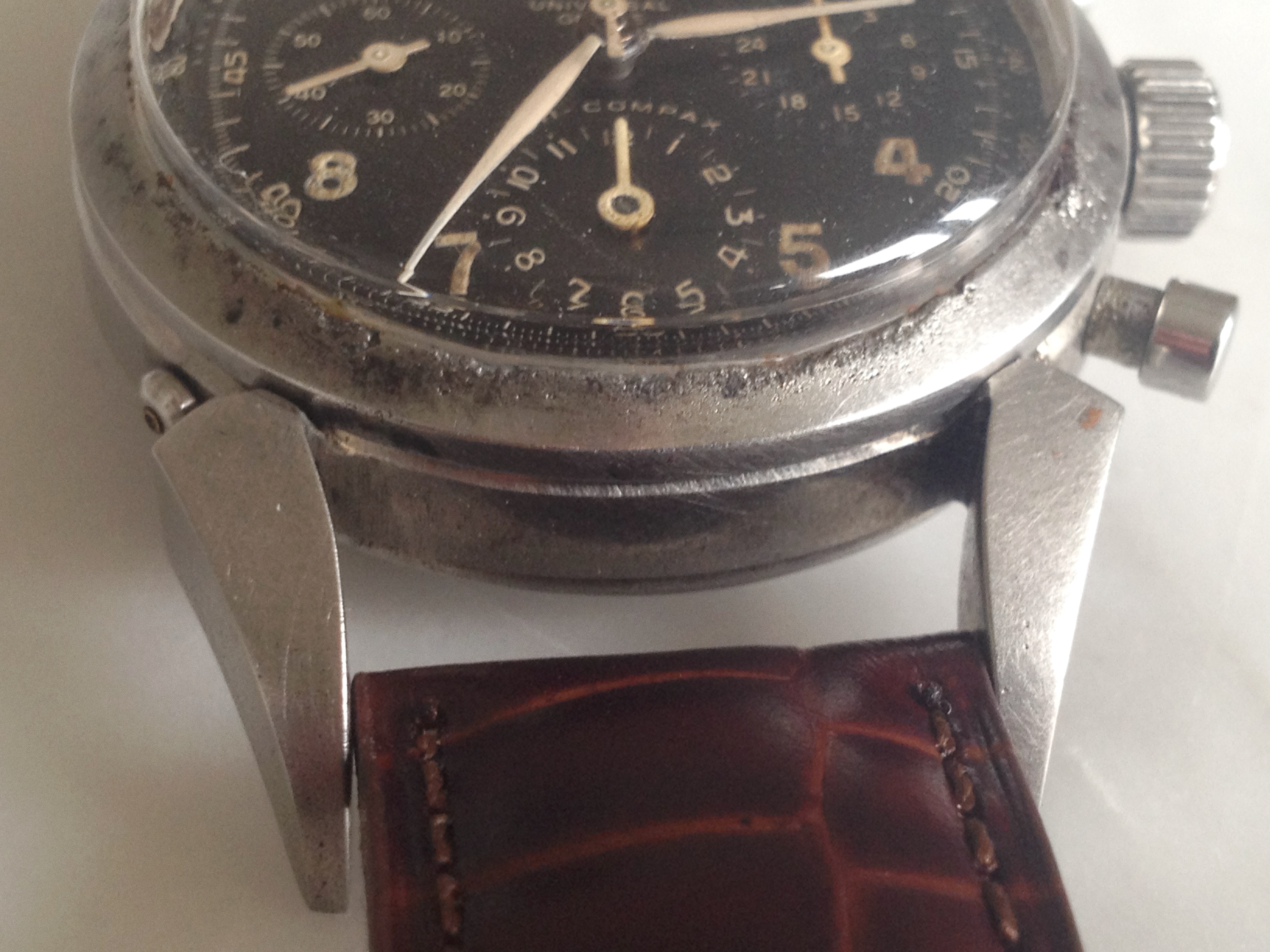 1) dull case finish full of swirlies, different from the vast majority of steel Tri-Compaxes that are demonstrably original.