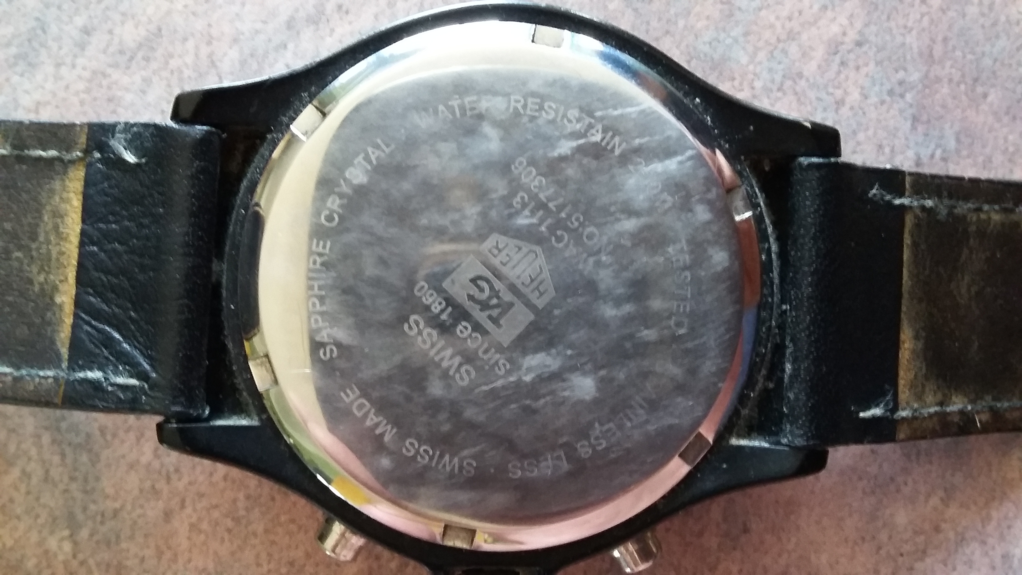 Thanks for the comments. I got a better camera than the cheap one in my cell phone. Attached are clearer photos of the face and the back of the watch. It is an older watch so not sure if the information is available online. Do you folks still think is not the real thing?
