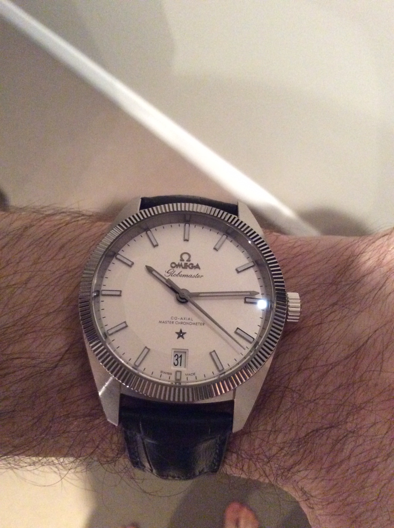 Without that special meaning, I still believe the Globemaster is a great watch. The pie-pan dial is awesome and I love the case shape. The fluted bezel is indeed the 'Rolex'-thing, but no-one ever started about that when they tried my Globemaster on. The shape of the case, the pie-pan dial and the size make it a completely different watch from a Day-Date or Datejust.
