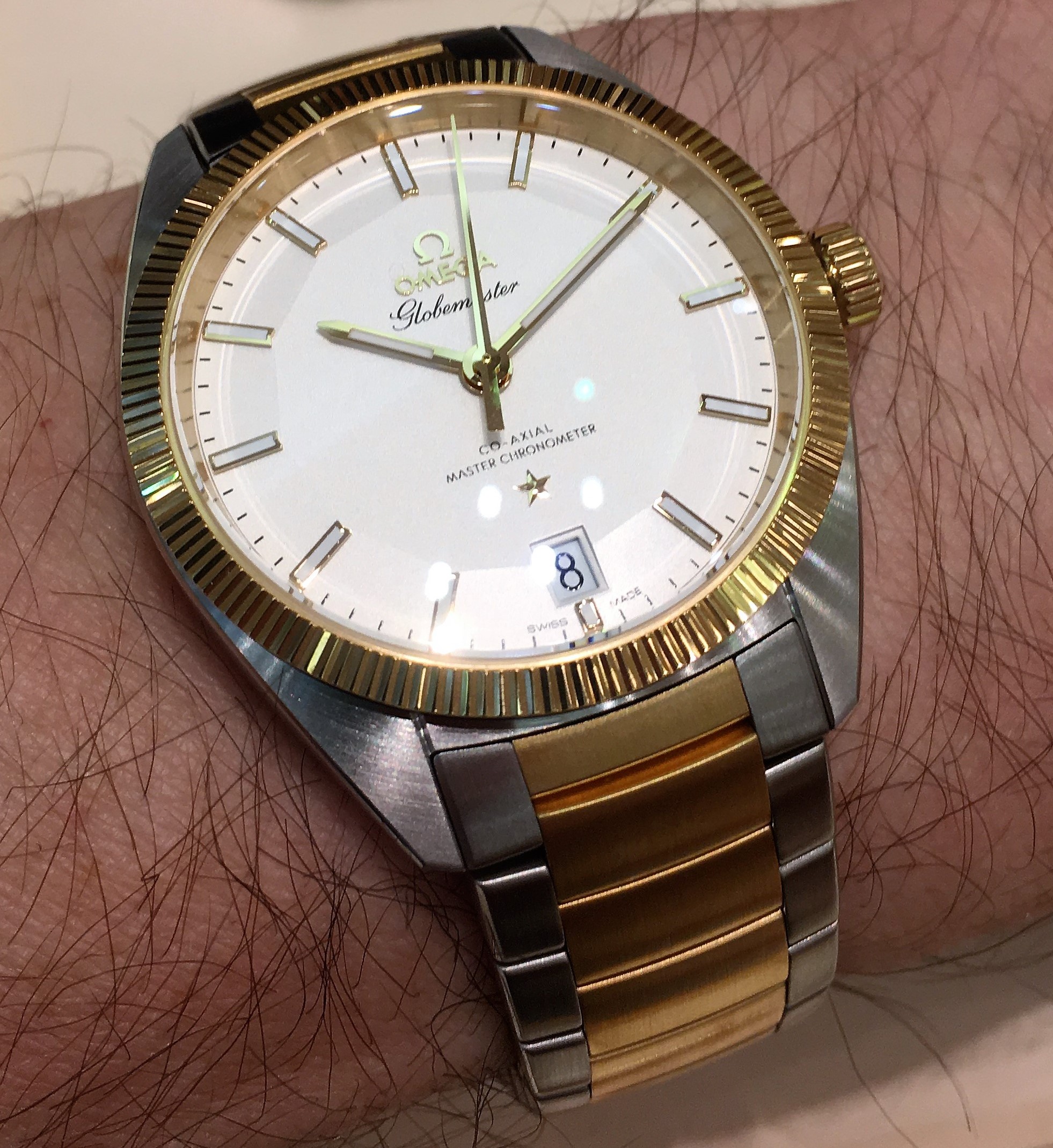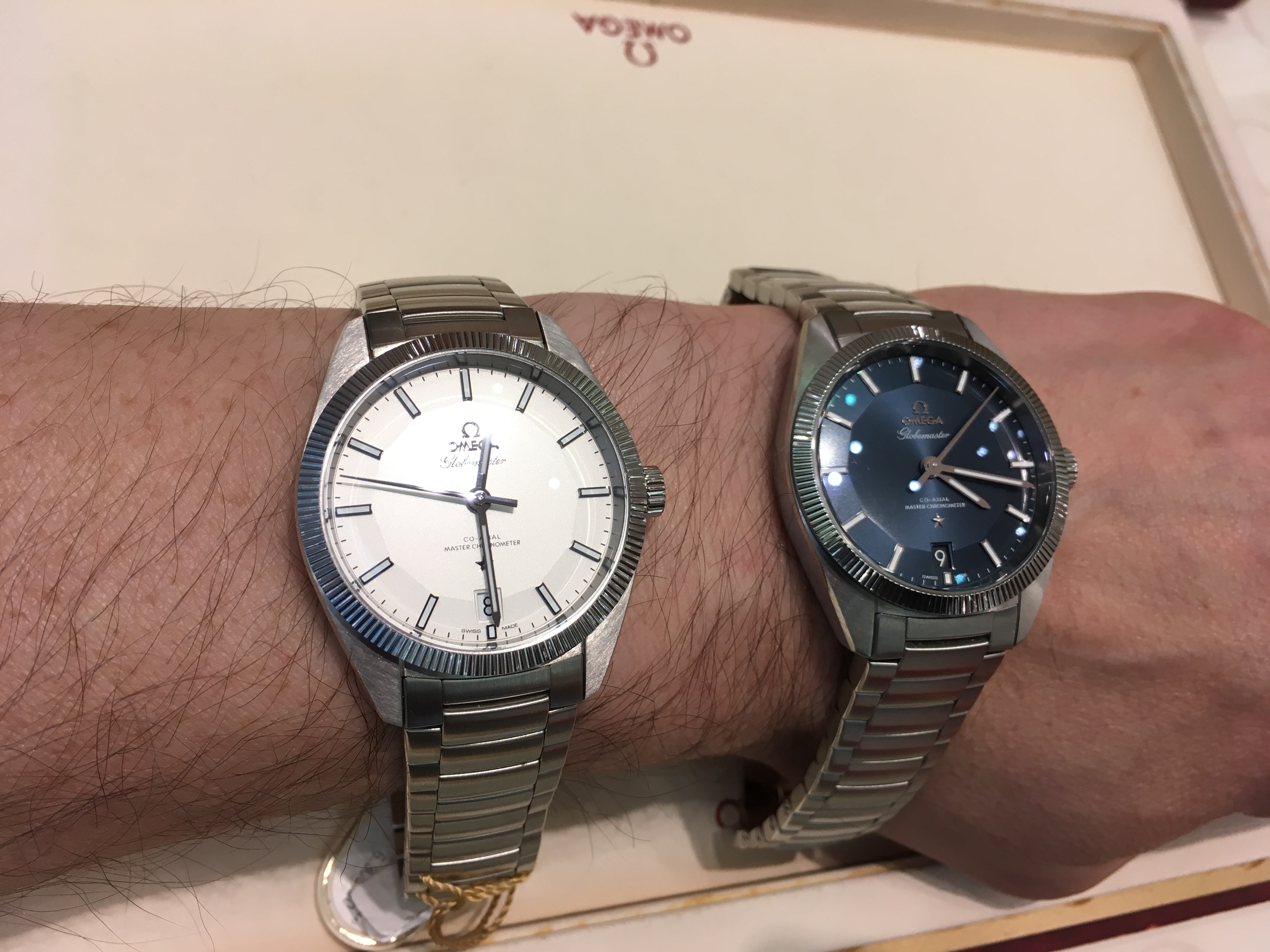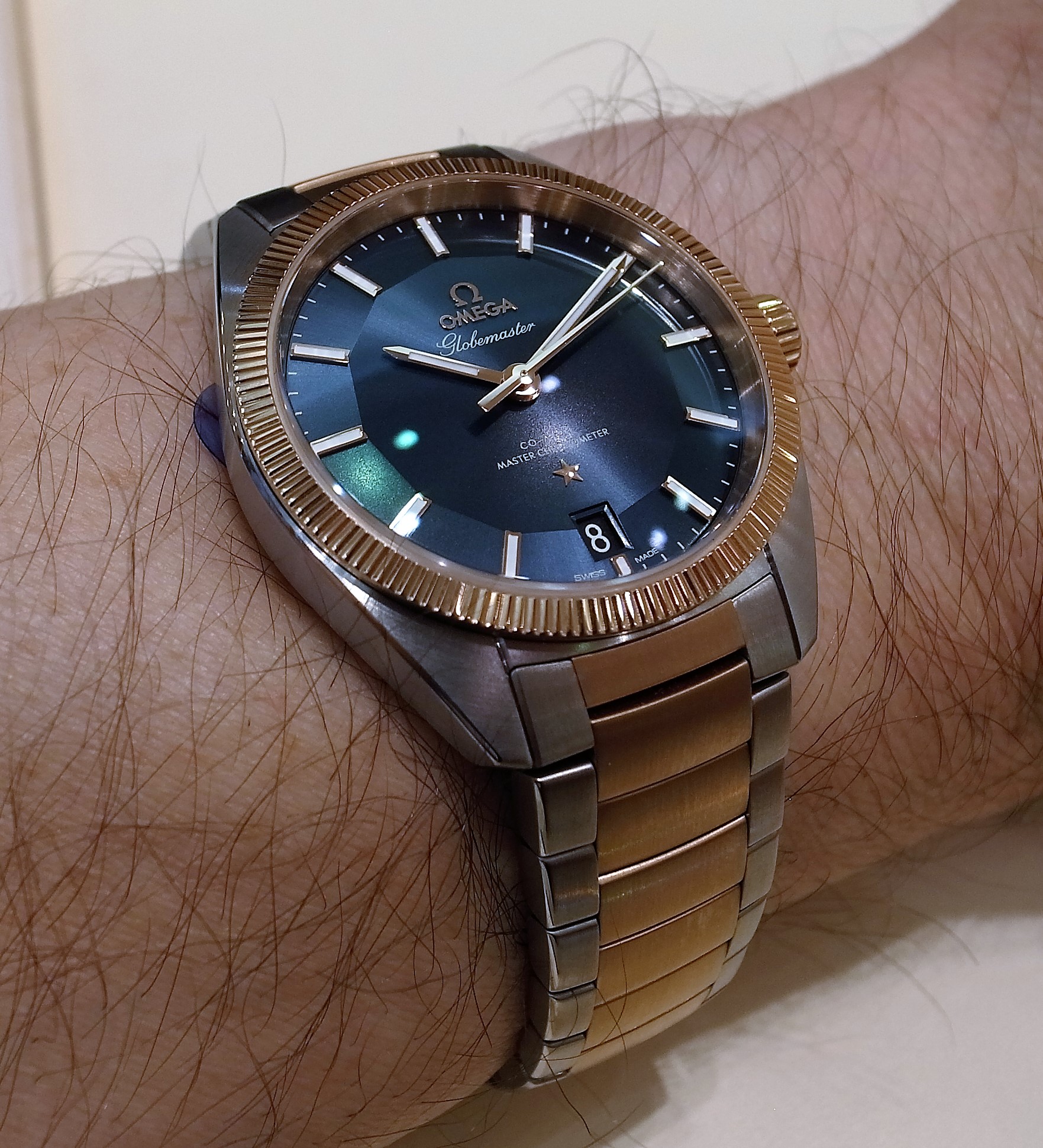 At my request Omega went over the inside edge of the bracelet very lightly with a polishing wheel which cured the sharpness issue; the result is imperceptible to the eye but noticeable in comfort.