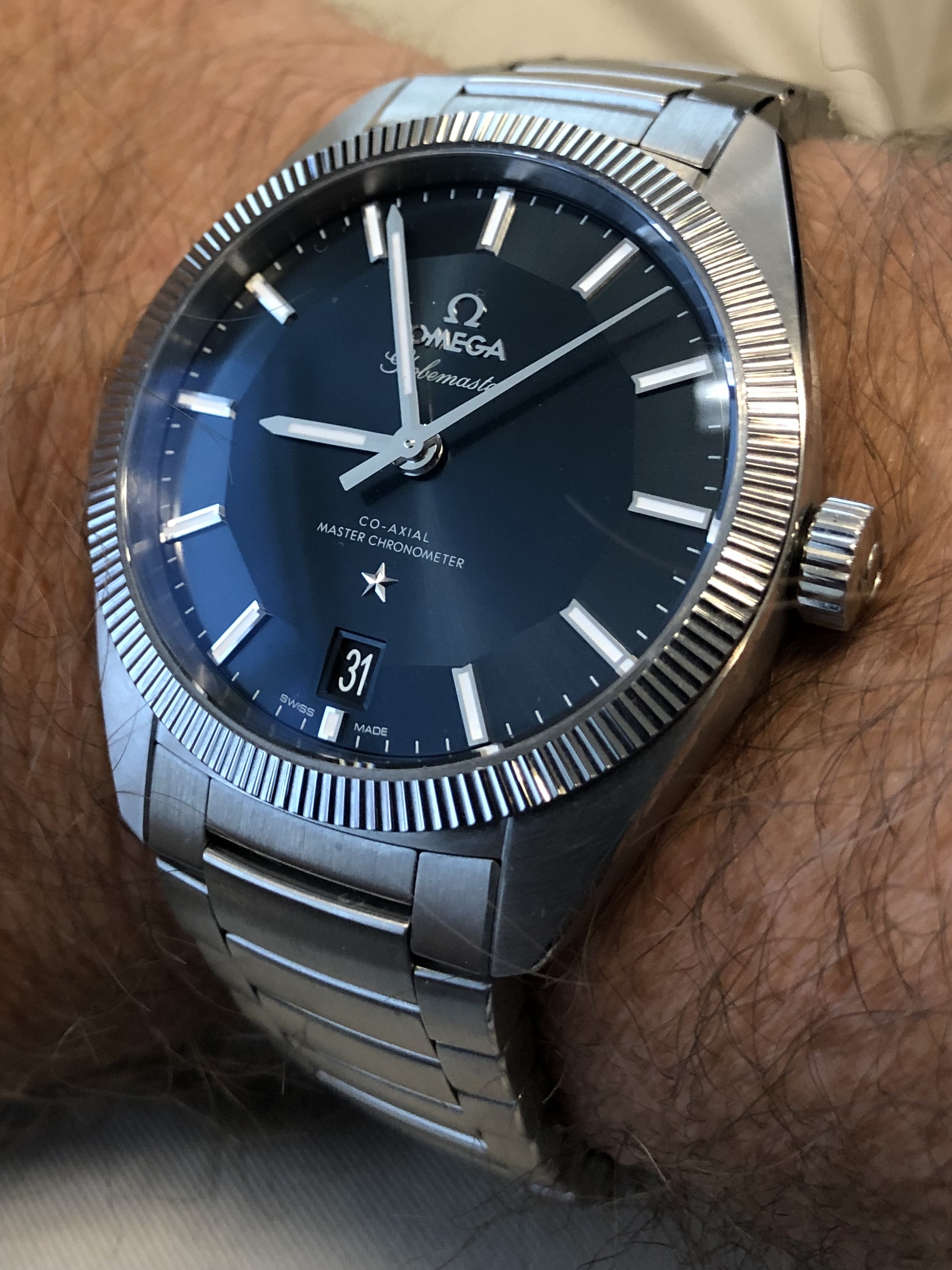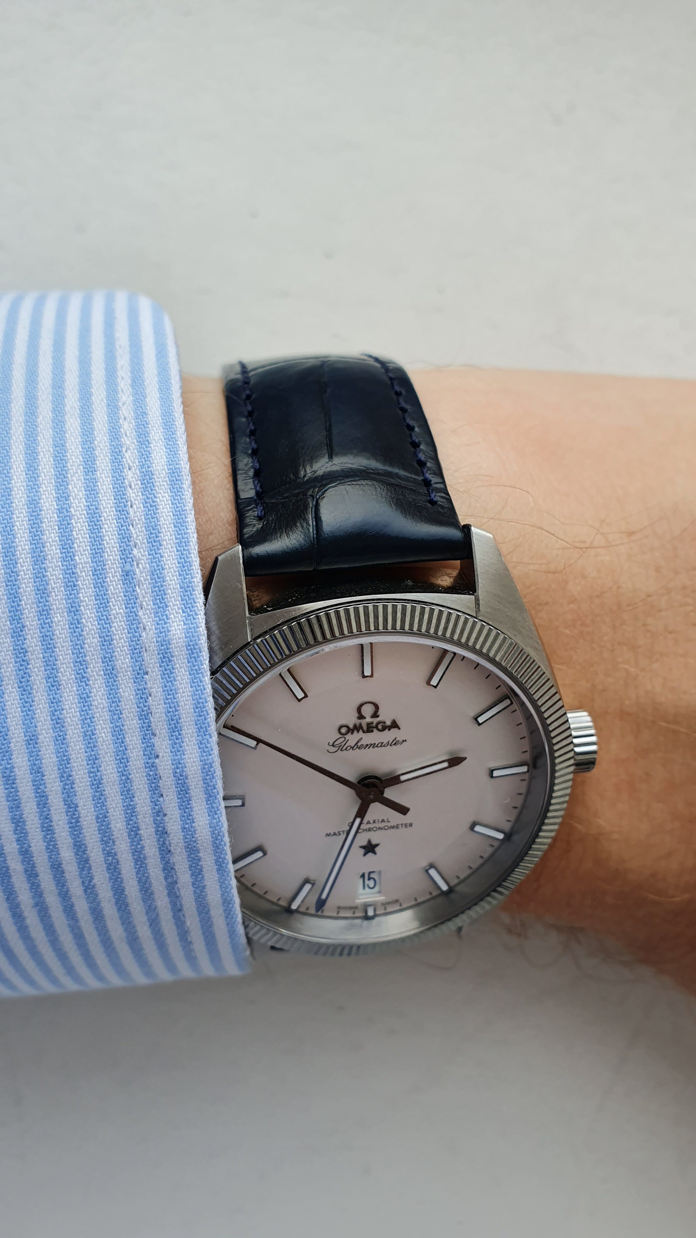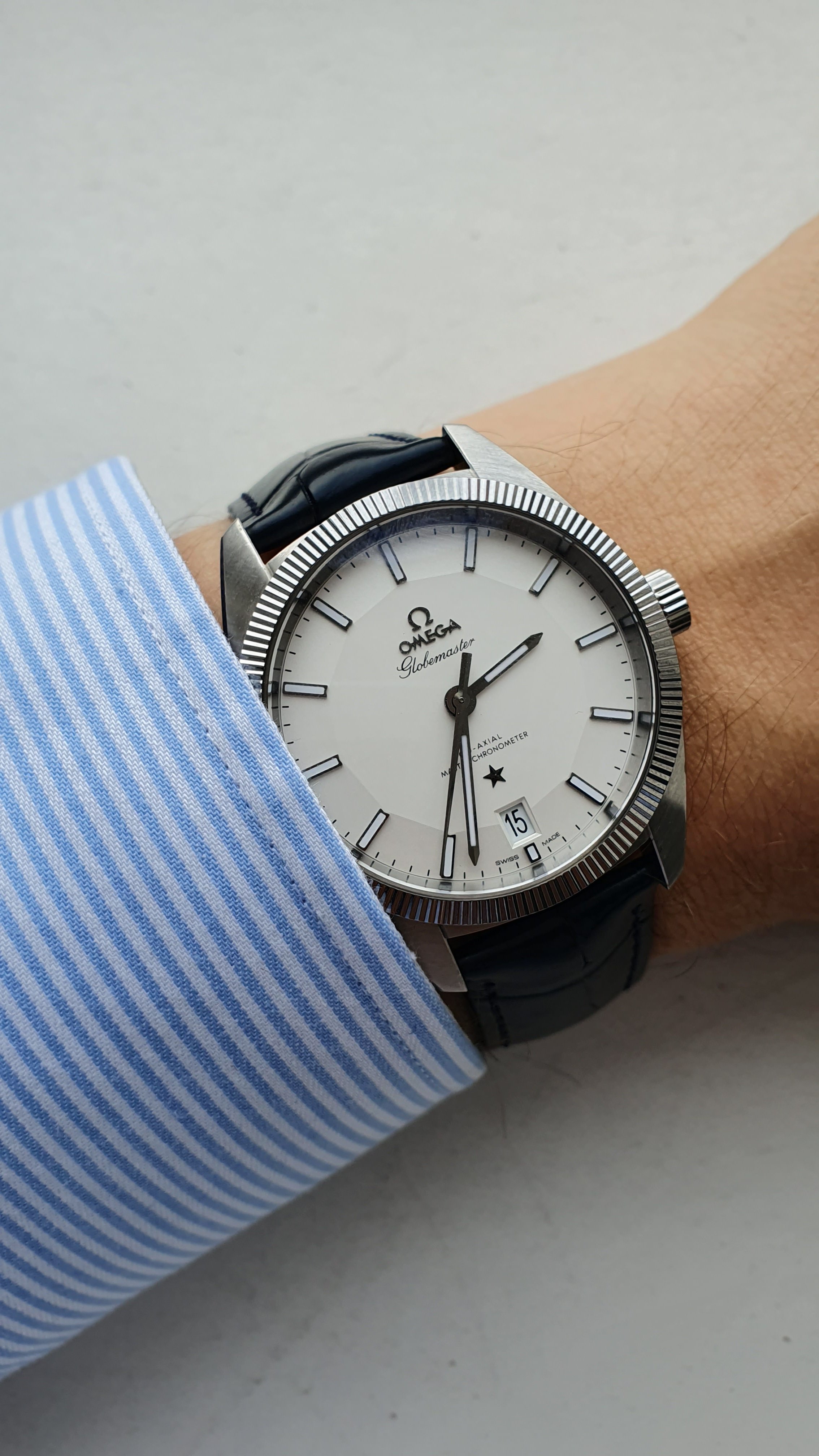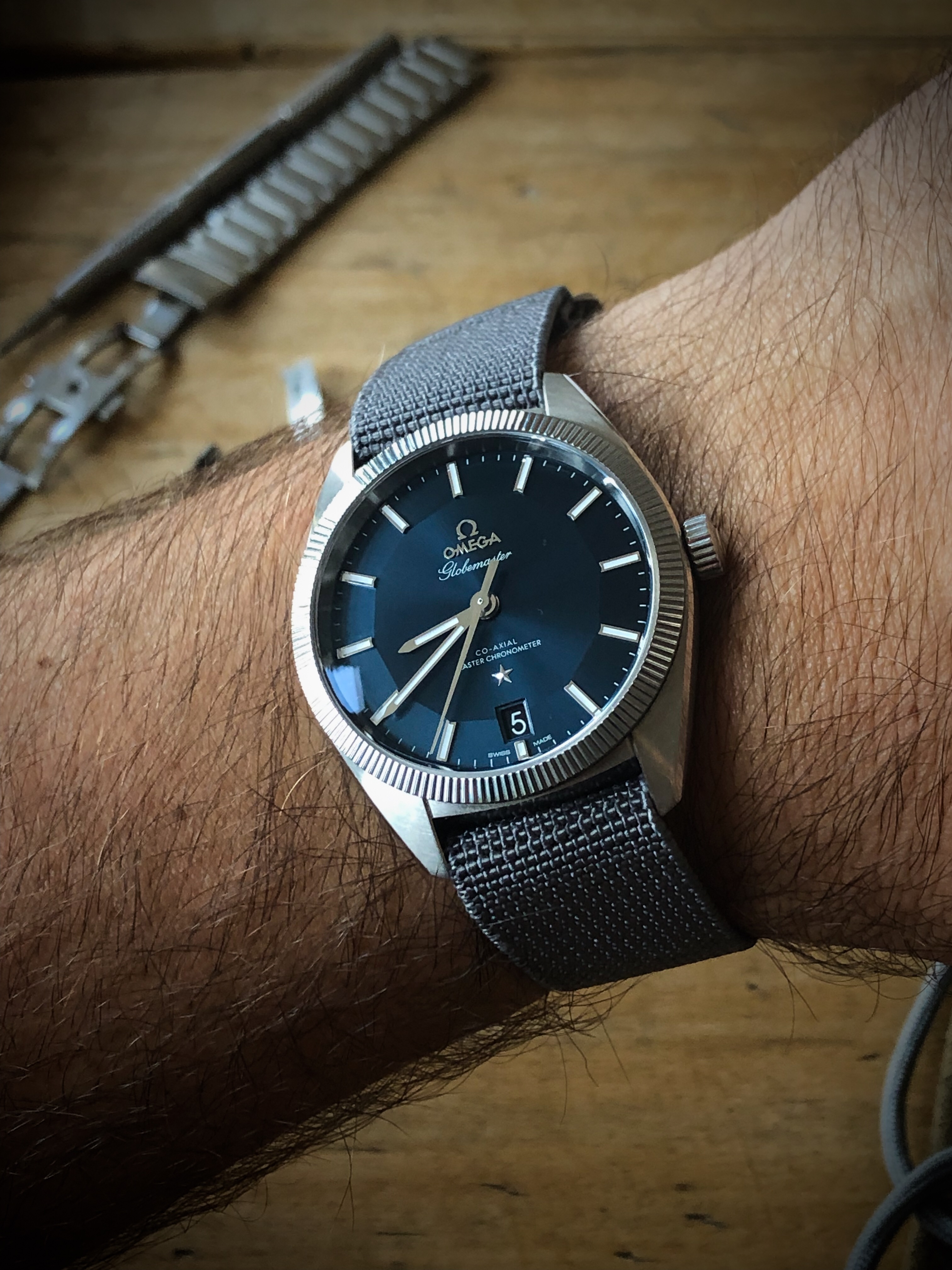 I bought mine on the bracelet and find it very comfortable to wear. I’ll probably buy the OEM alligator strap with the deployant clasp at some point just to provide an additional wearing option. IMHO, the Globemaster is one of Omega’s best offerings, but it’s frequently overshadowed by the Seamaster and Speedmaster lines.