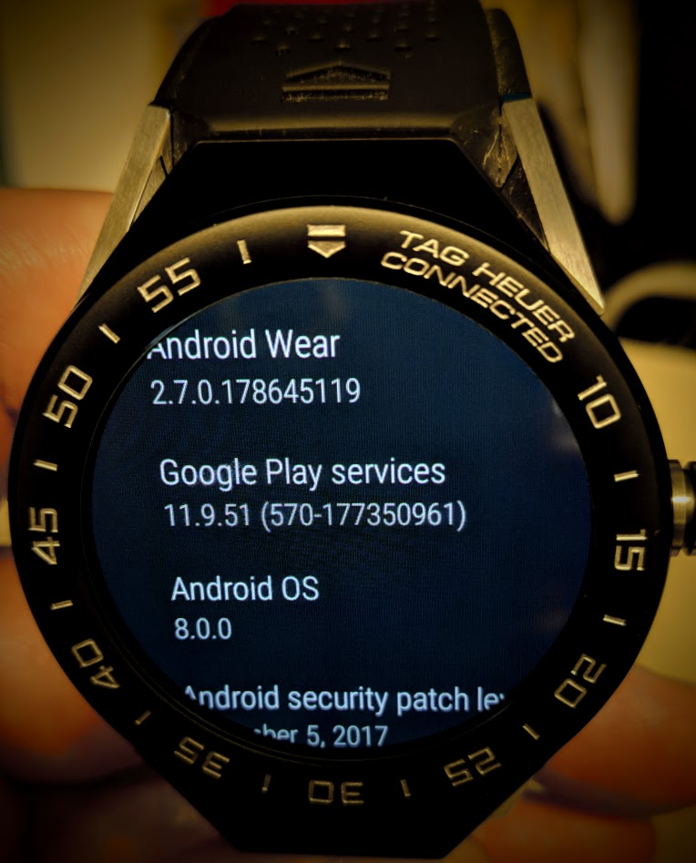The version number associated with the new Oreo build of Android Wear is still apparently 2.6.0, though it is reporting as "Android OS 8.0.0."
