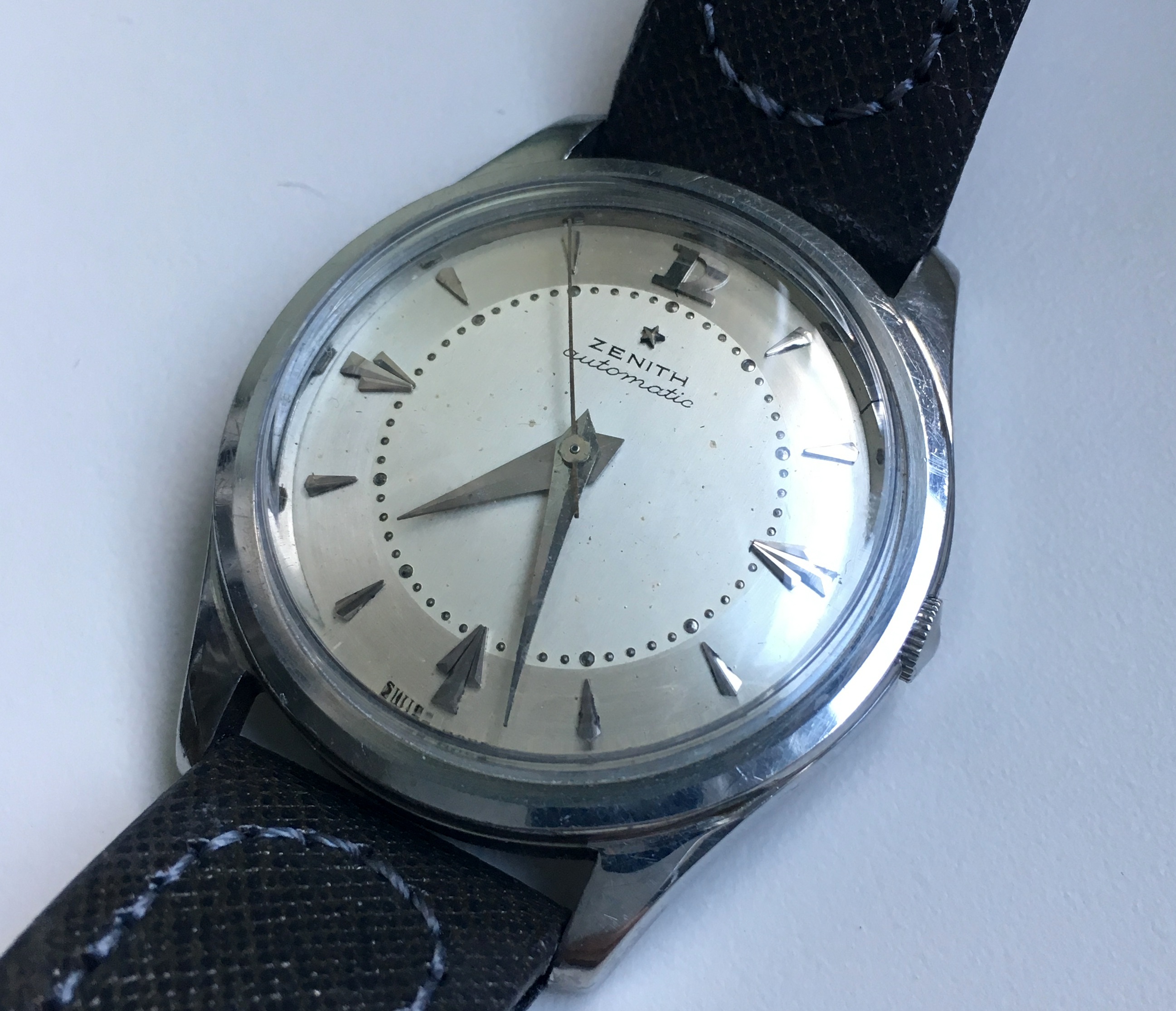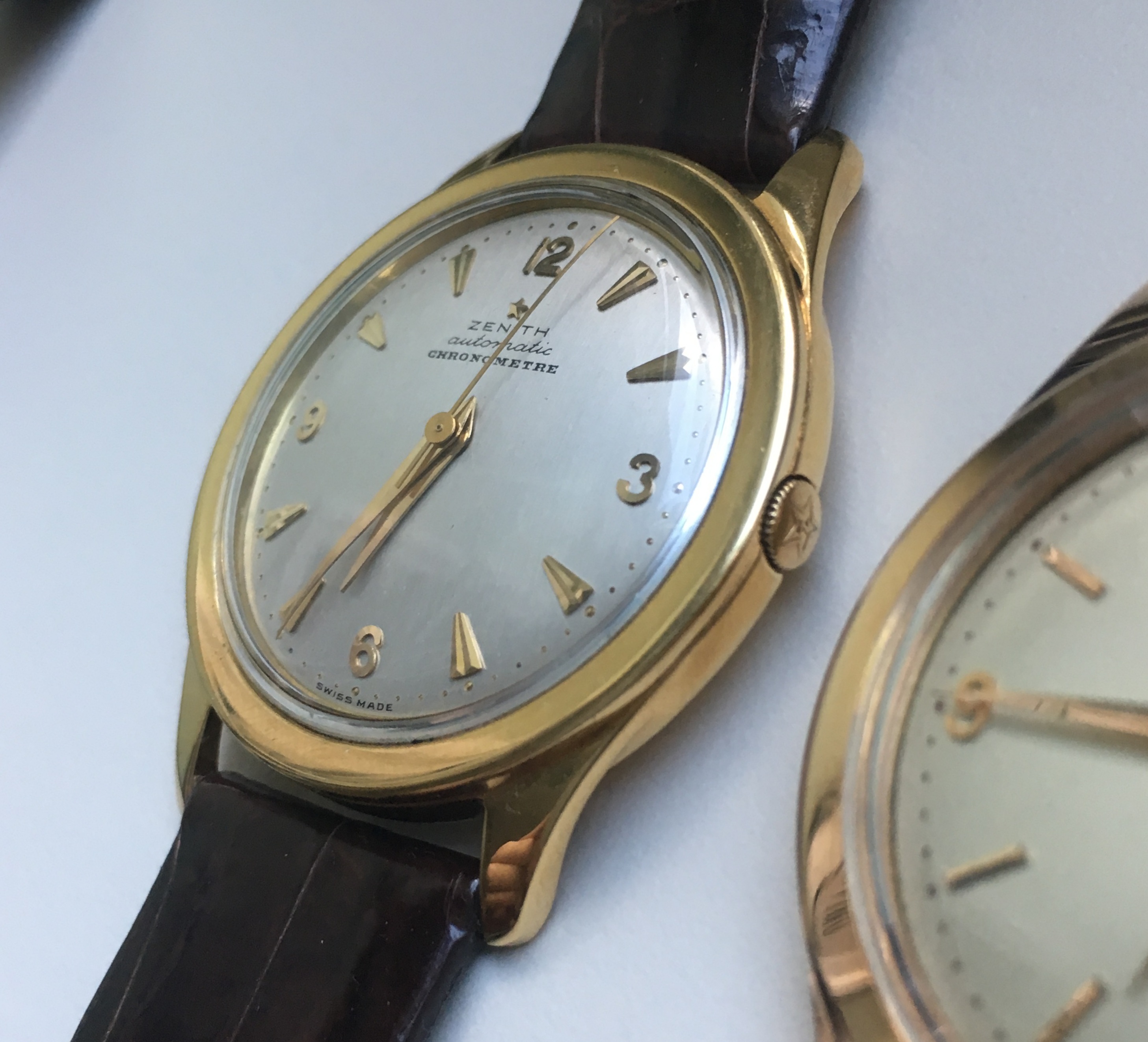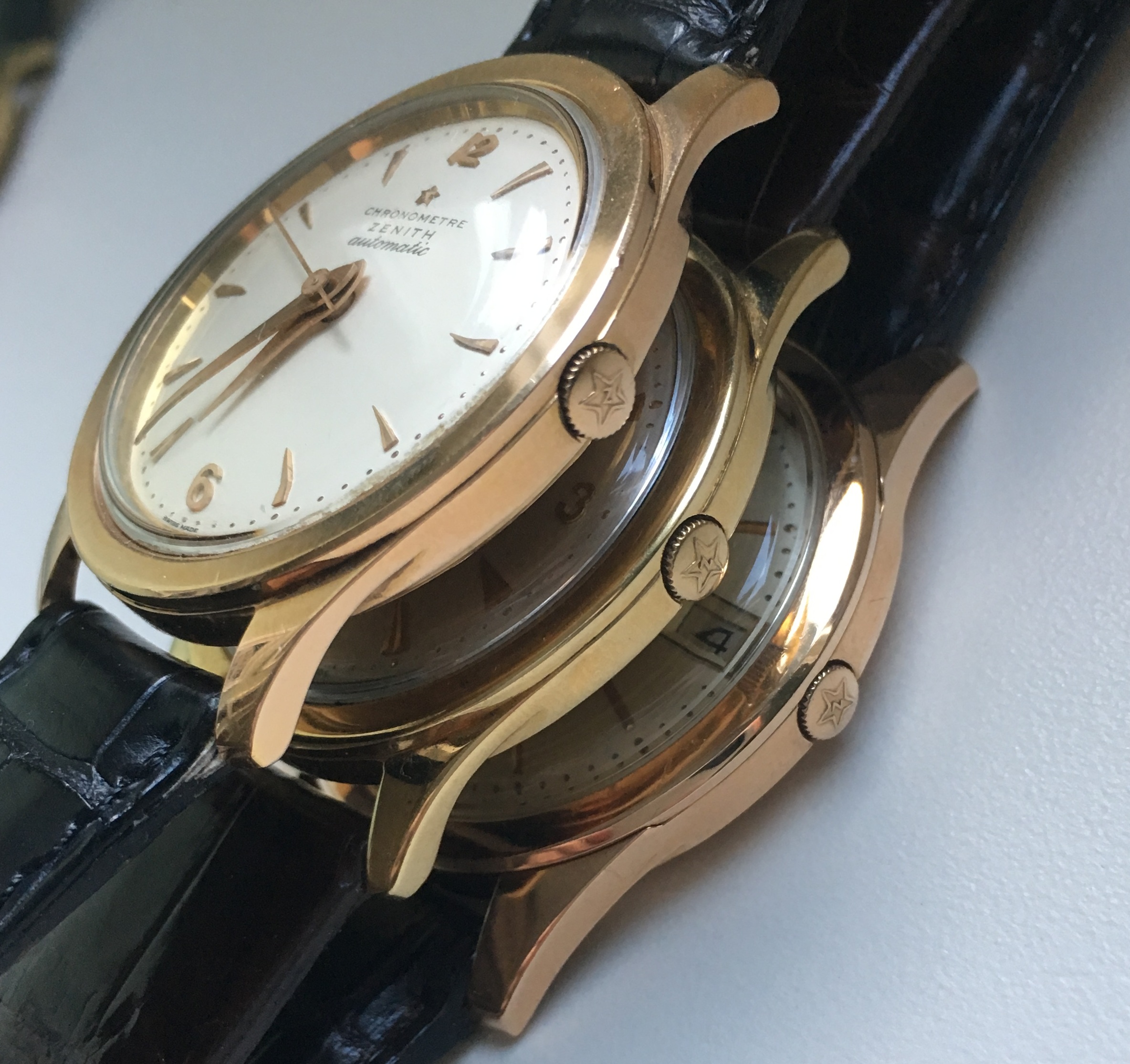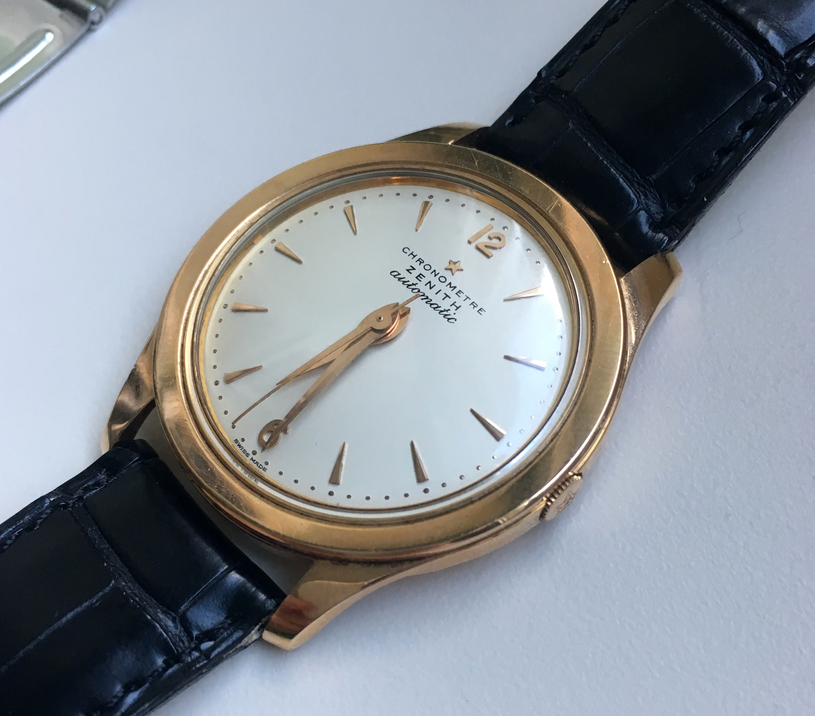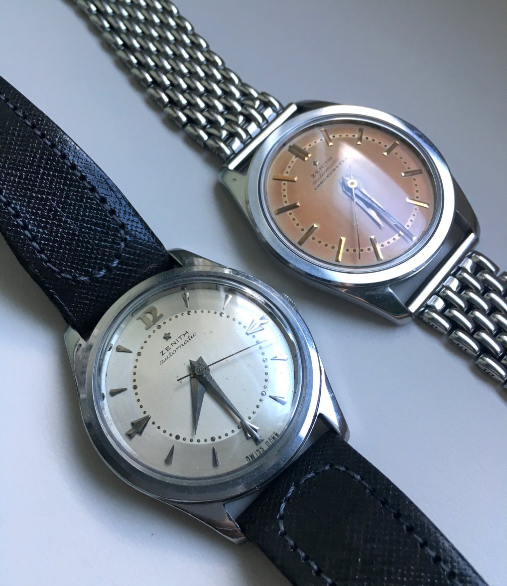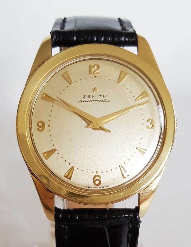 路路Mrs Nataf's Other SonAs some of you know, I have a long-term love of Zenith three-handers, a fascination with what @ConElPueblo has characterized well as "obscurity, elegance and technical merit." Here another model that has caught my interest (thanks to friends @kyle L and @giuseppe.totaro for feeding the bear). At first glance, just another(!) elegant Zenith dress watch from the Ephrem Jobin era, this one becomes more interesting when the eye registers the recessed crown.