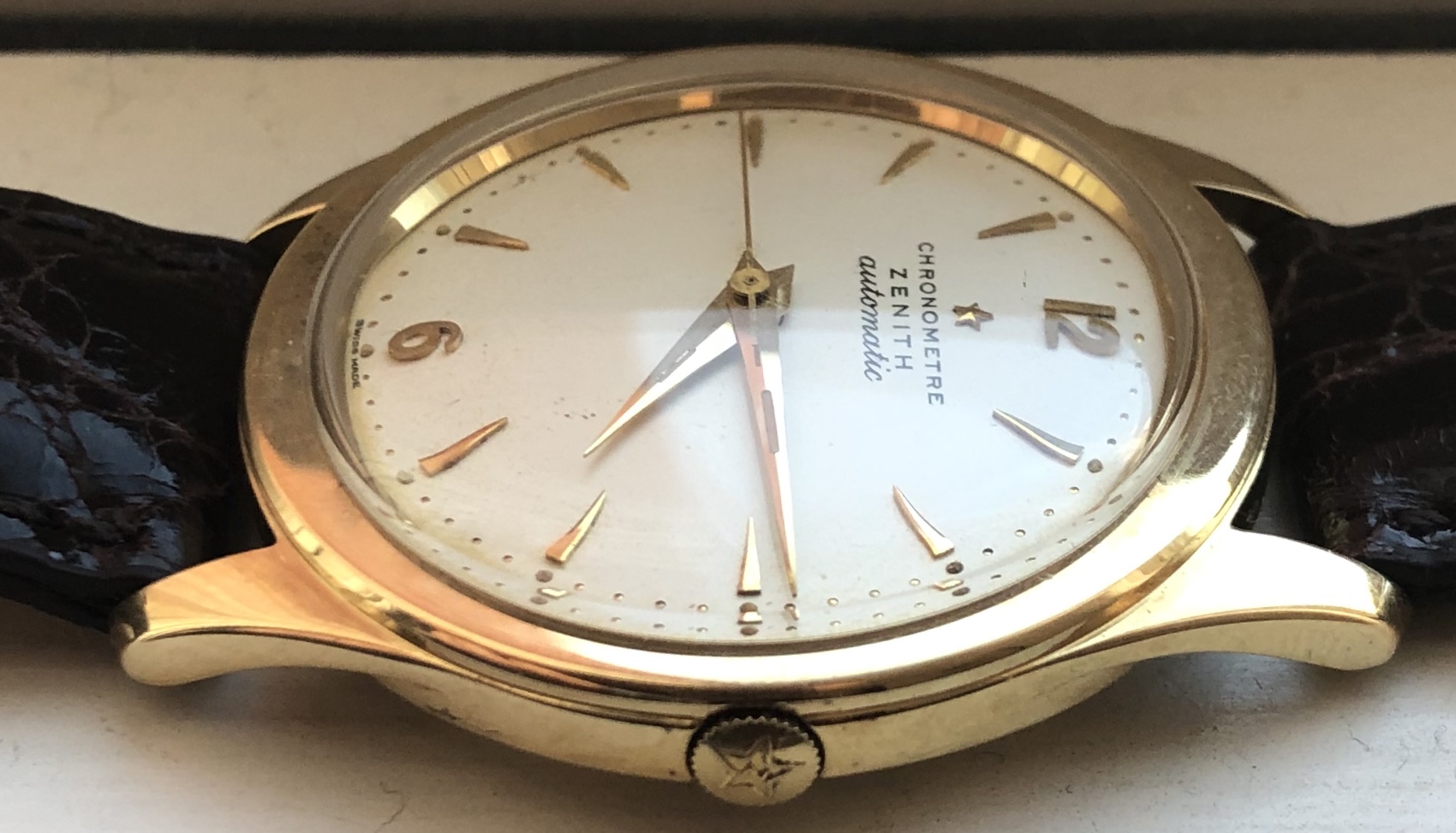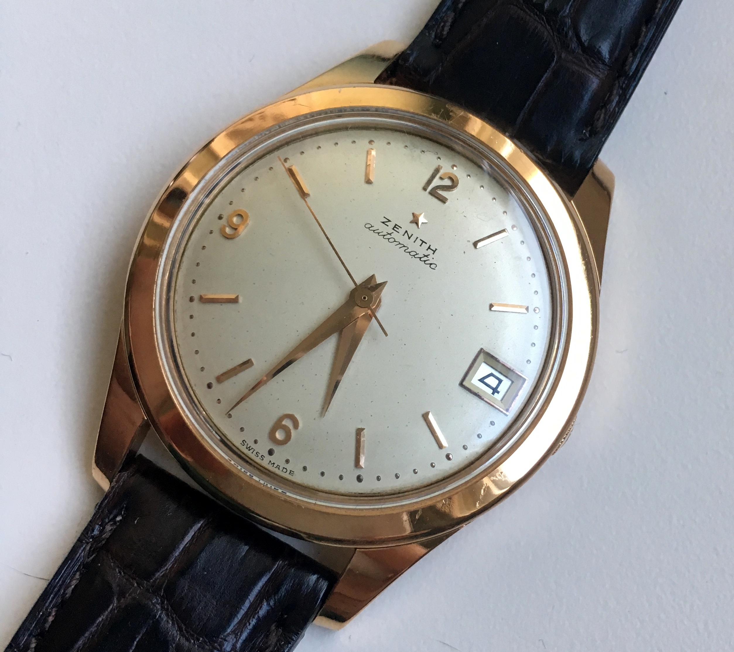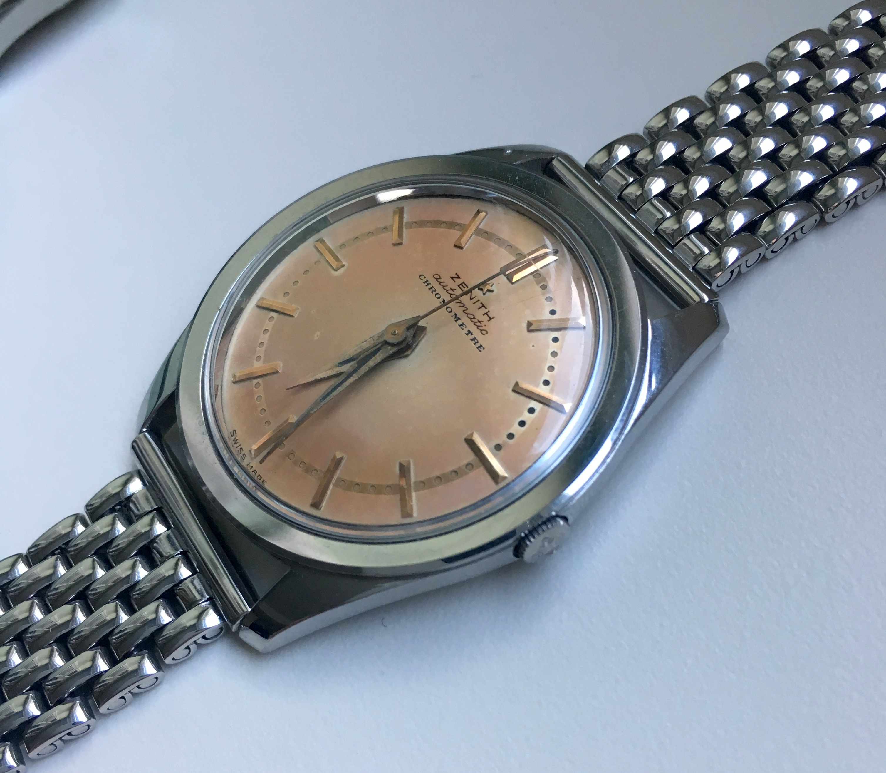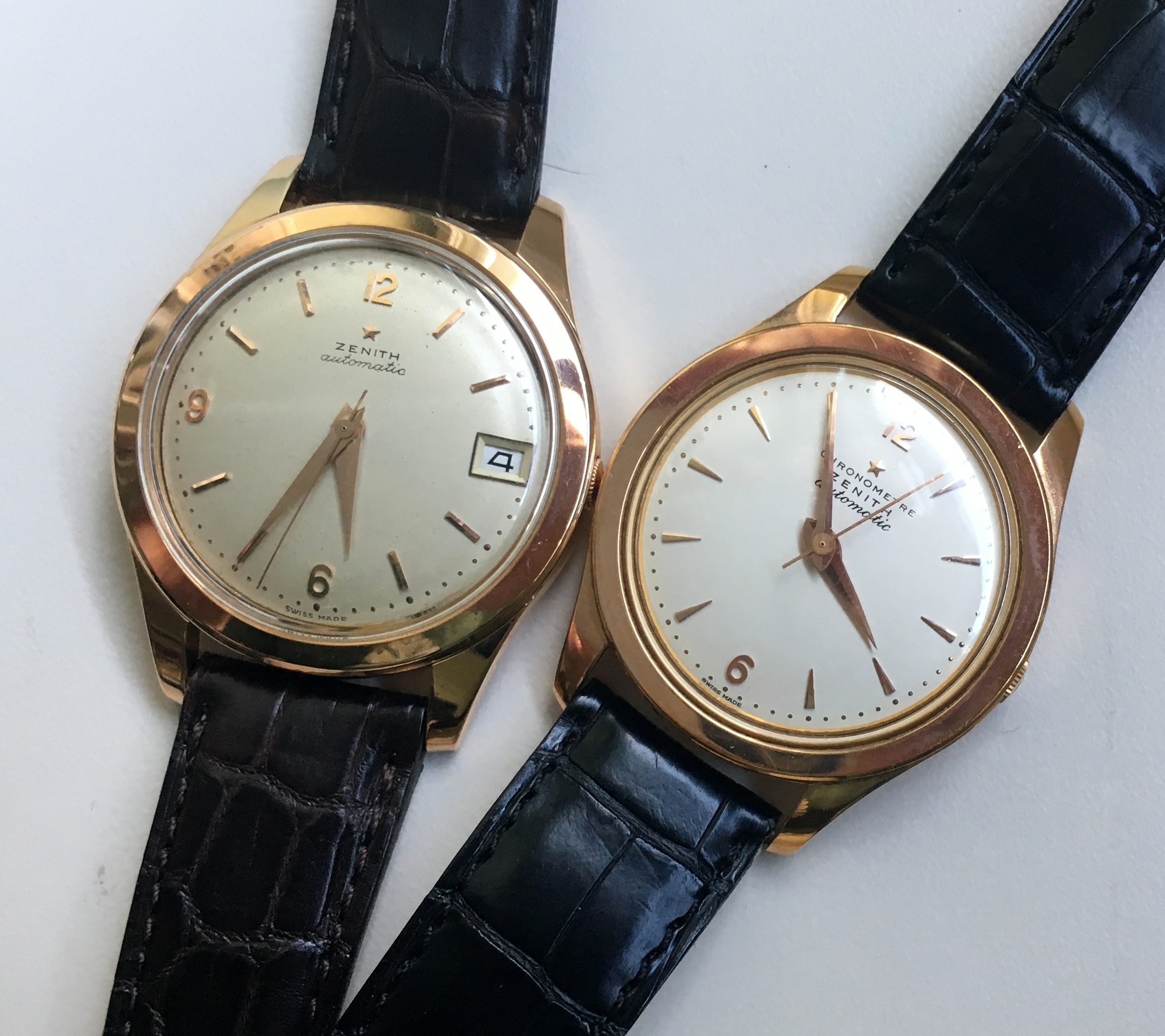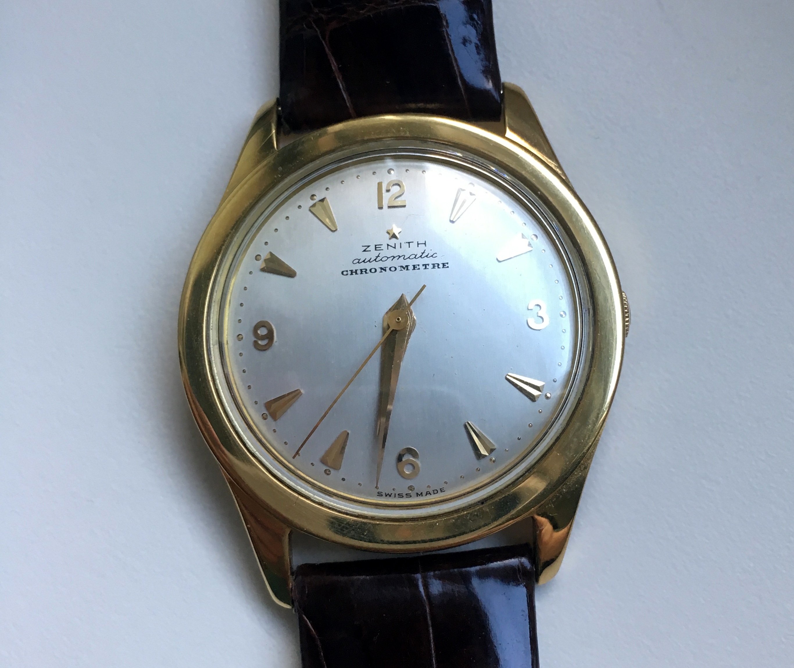 路路Mrs Nataf's Other SonAs some of you know, I have a long-term love of Zenith three-handers, a fascination with what @ConElPueblo has characterized well as "obscurity, elegance and technical merit." Here another model that has caught my interest (thanks to friends @kyle L and @giuseppe.totaro for feeding the bear). At first glance, just another(!) elegant Zenith dress watch from the Ephrem Jobin era, this one becomes more interesting when the eye registers the recessed crown.