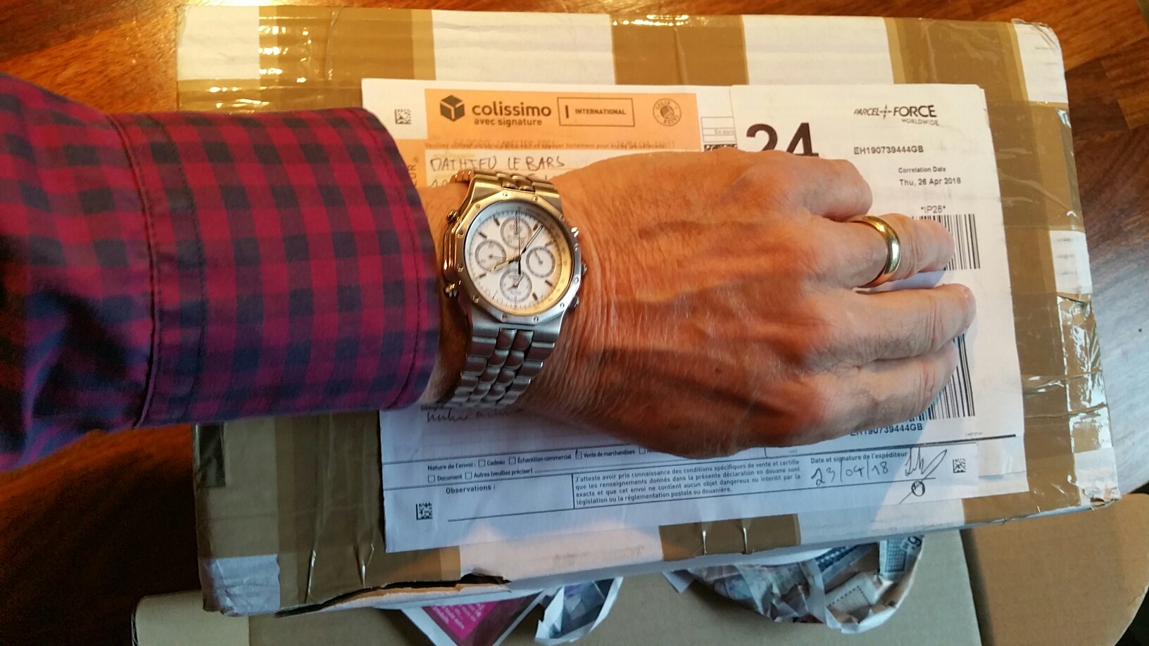 Posts 1,434 Likes 6,513 tikkathree ยทApr 28, 2018 This pewter /silver 7T34 Royal Oak arrived yesterday working beautifully. See that big box in the photos? That's what it came in! Gotta love careful packing.