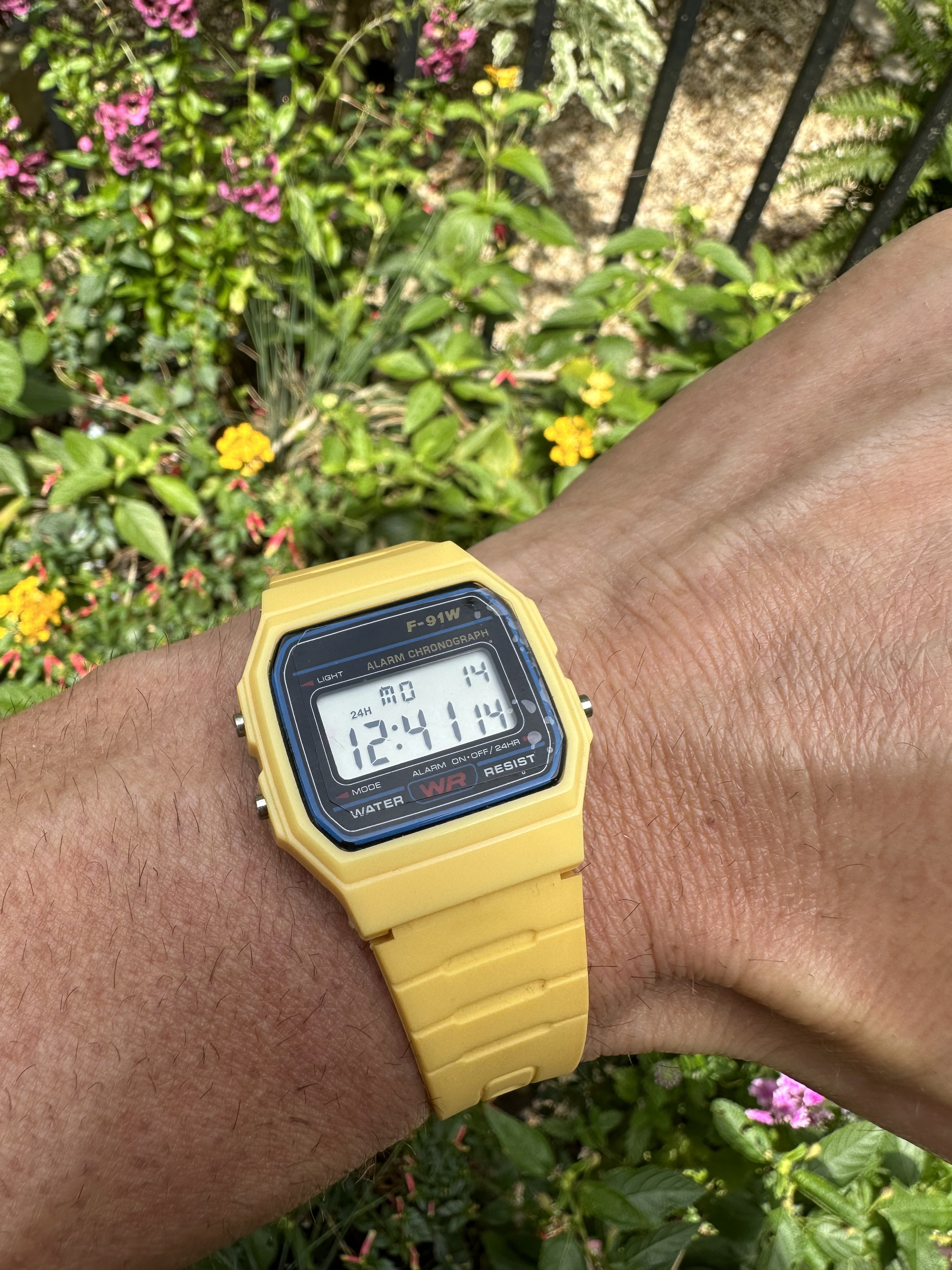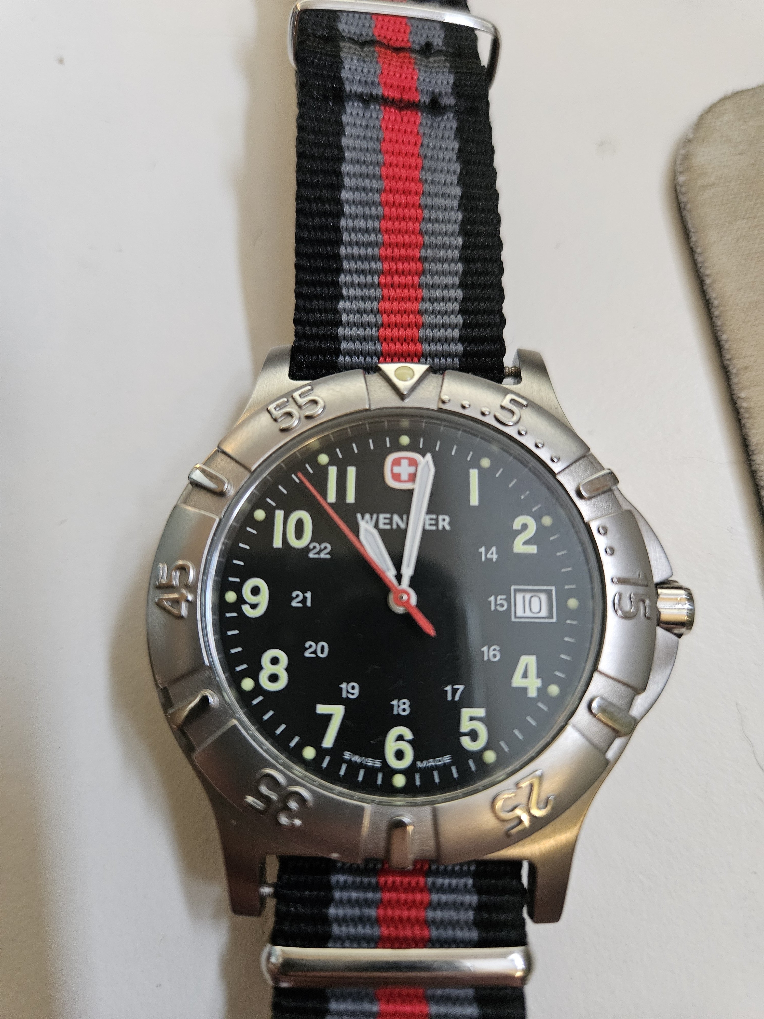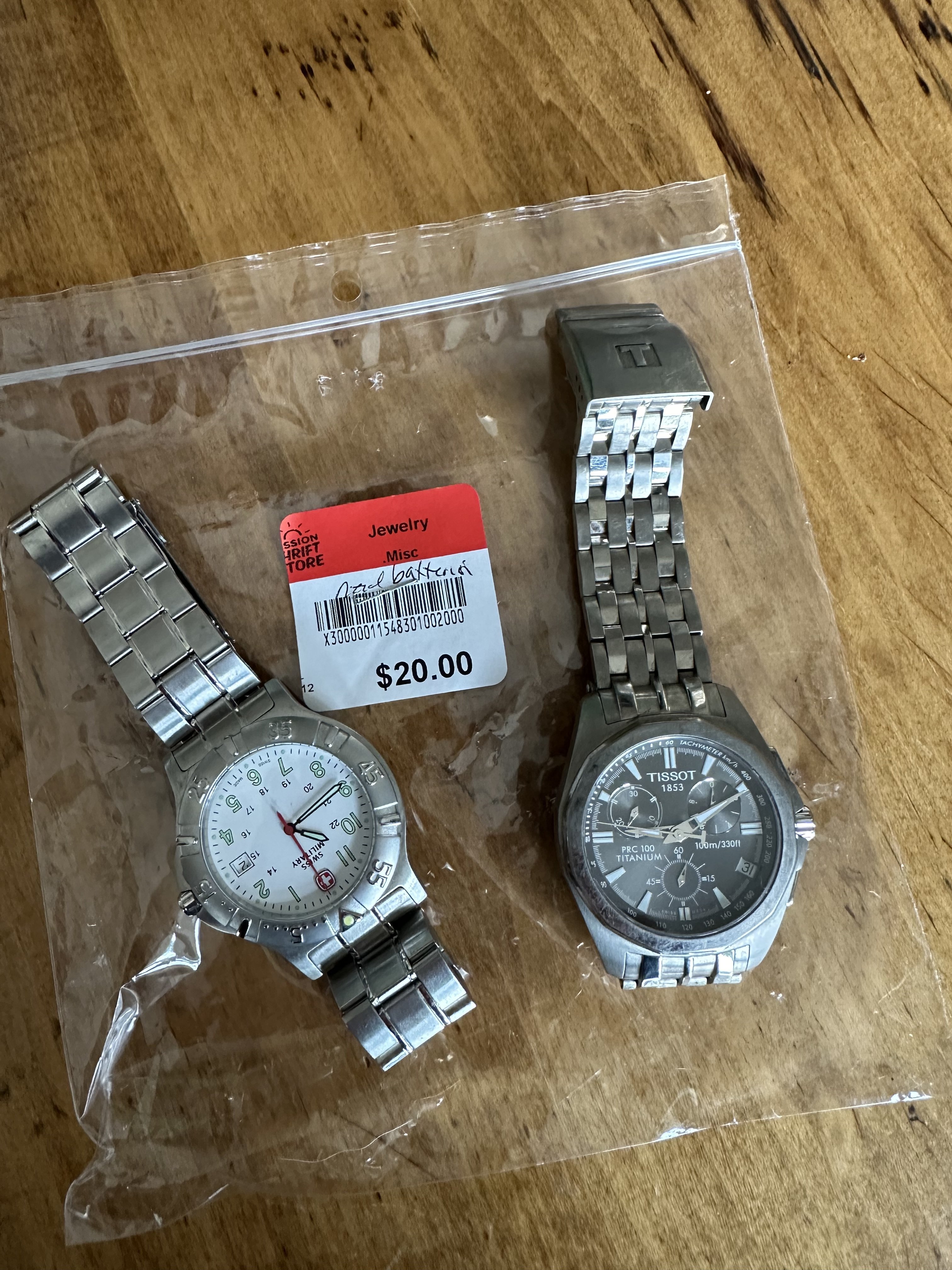 A watch. Nothing fancy but for $8 I have a nice strap. I am always on the lookout for old footballs. Got one today. Looking forward to what I hope will be a close Super Bowl. I am cheering for the team that trails with 5 minutes to go.
