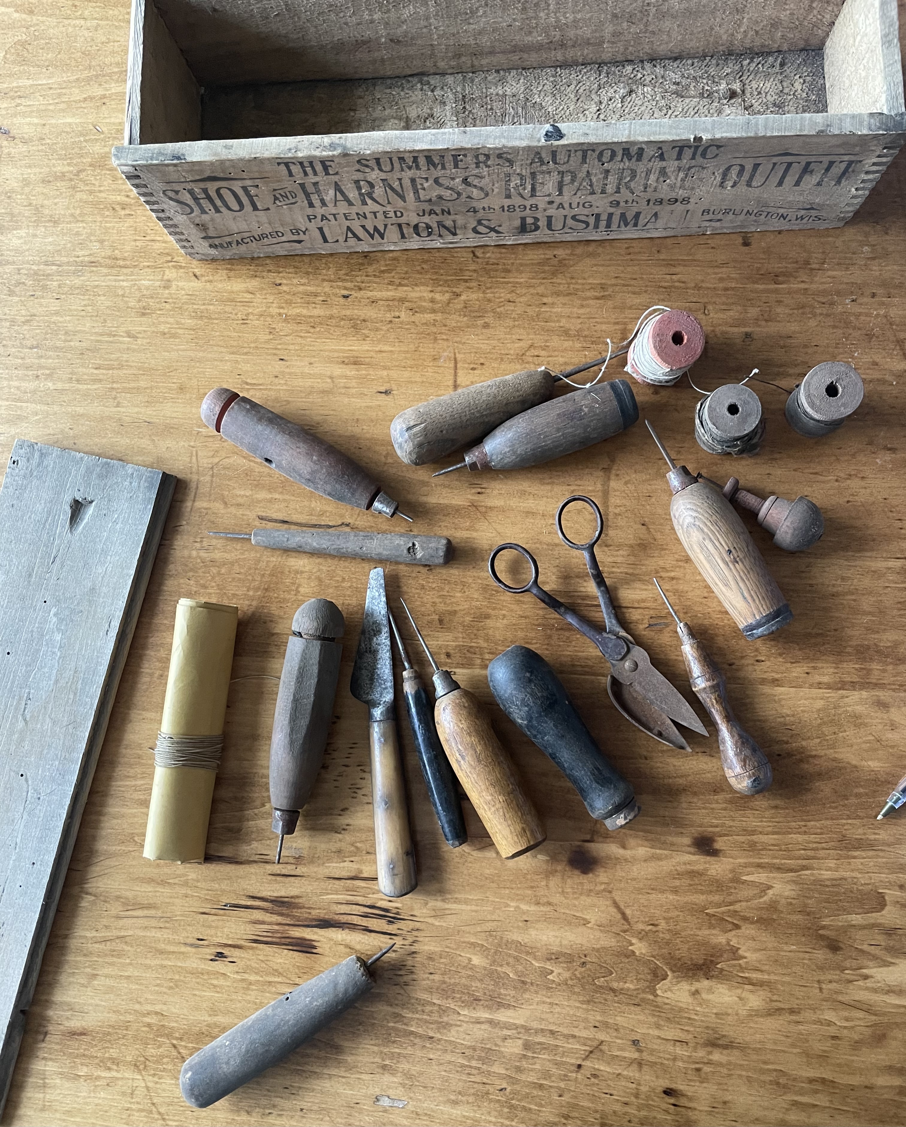 When @DaveK visits I will let him pick an awl from this batch. These tools came with this amazing old box. As a teenager I worked in shoe repair. Leatherwork goes back a long time for me.
