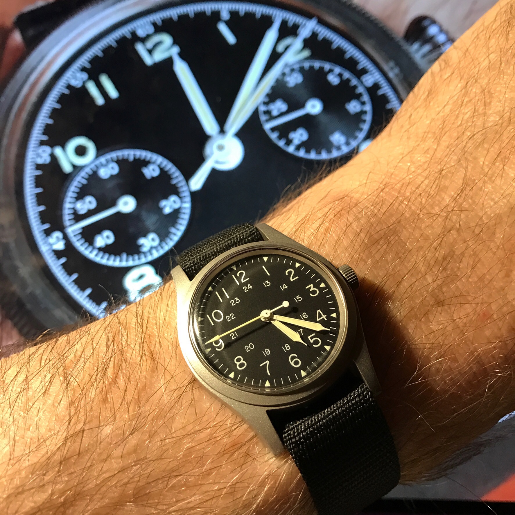 The brushed case finish feels cheap, but ends up working really well towards the rugged/beater watch vibe. It's nice and legible, and the case is pretty slim so it lends itself really nicely to being tossed on a NATO and going anywhere / doing anything. Crown is nice and large so very easy to wind, even if wearing gloves or your fingers are frozen. Keeps really good time at its price range. And of course it's manual wind which I really love - all in all for $500.