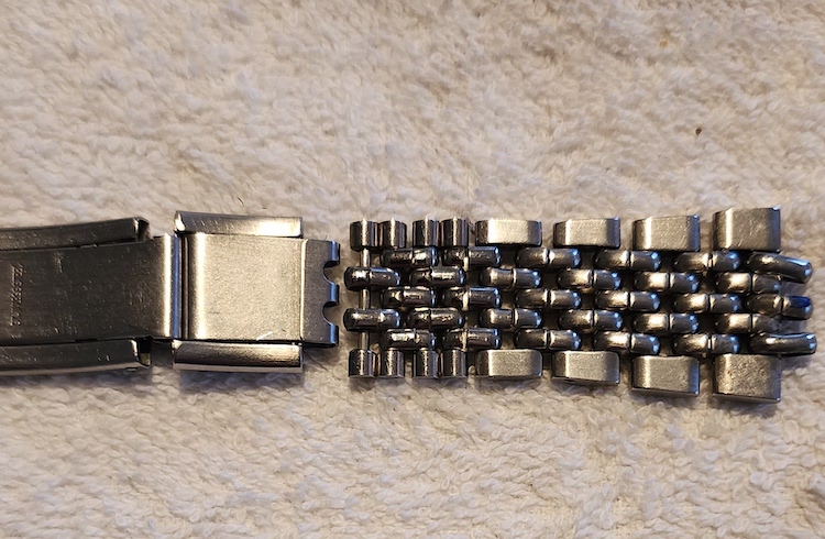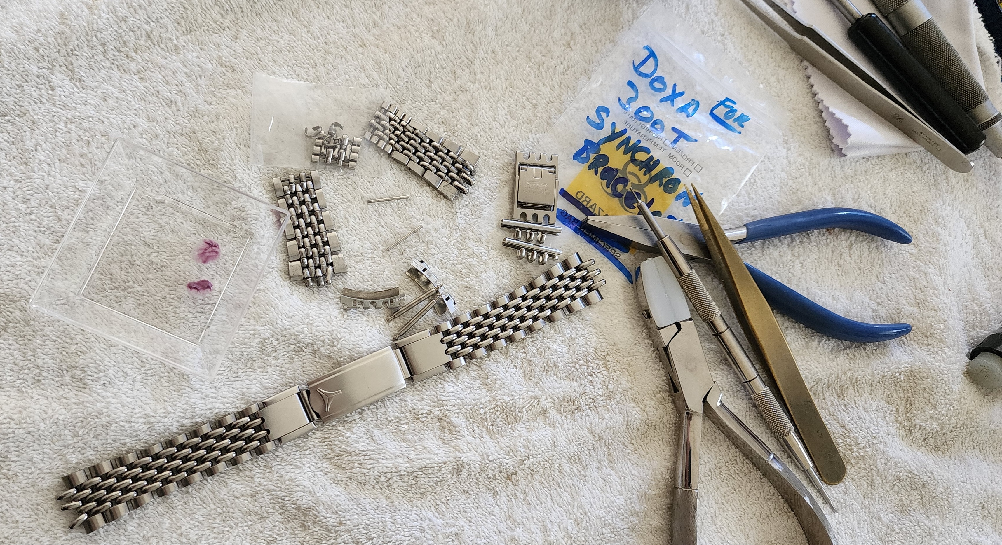 Support the bottom of the link in a bracelet block, apply oil to both ends of the link and use a pin punch and a hammer.