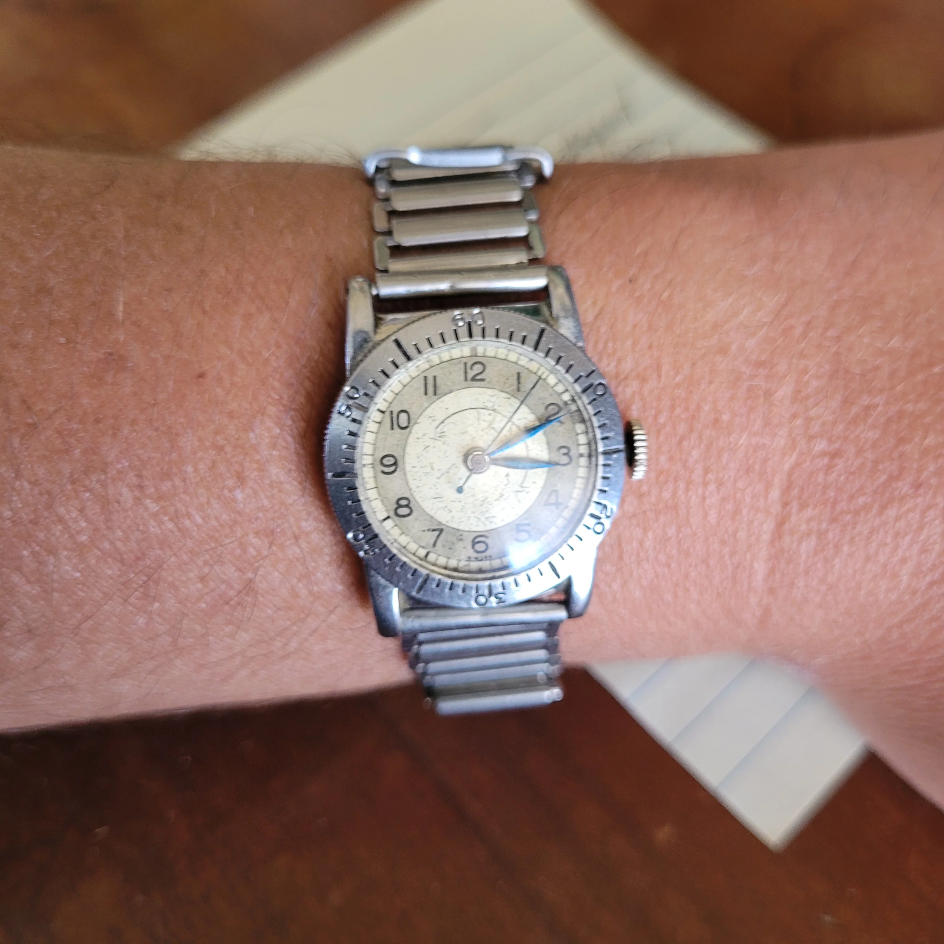 This one is a bit of a project, a 1940 A-11. It is missing the locking crown, and the case has been cut in one place, so I am having the case welded up by a jeweler I know.
