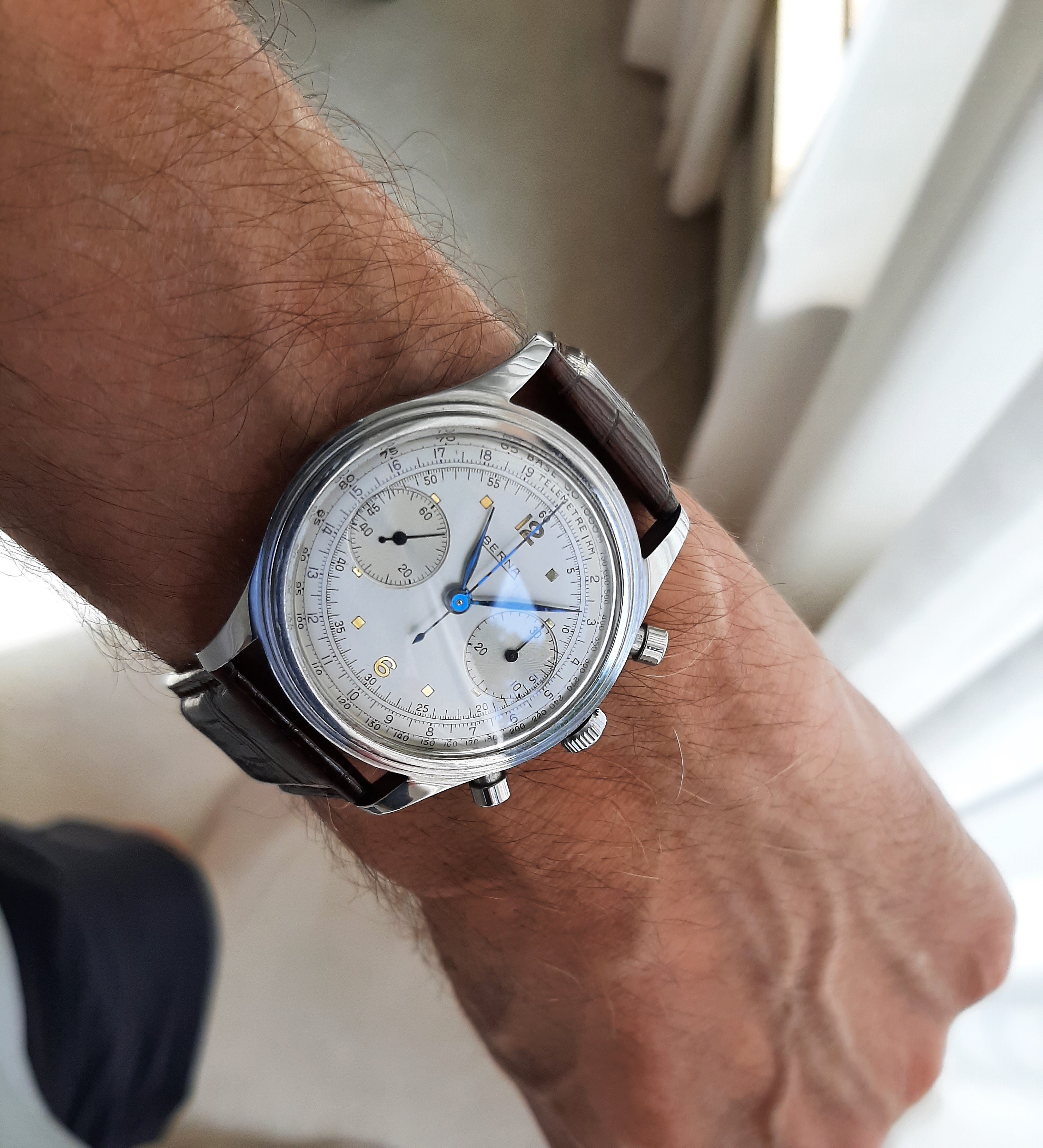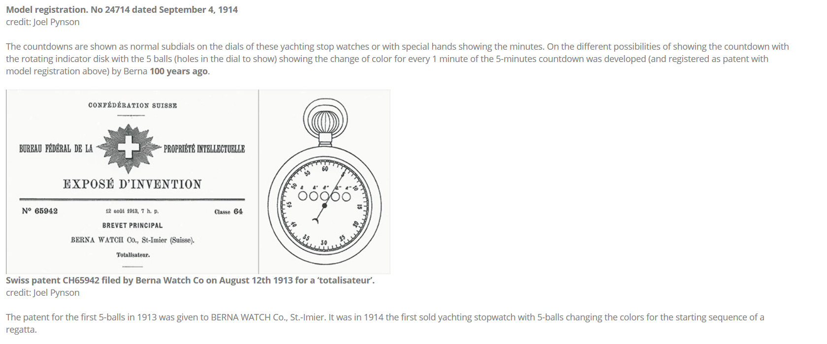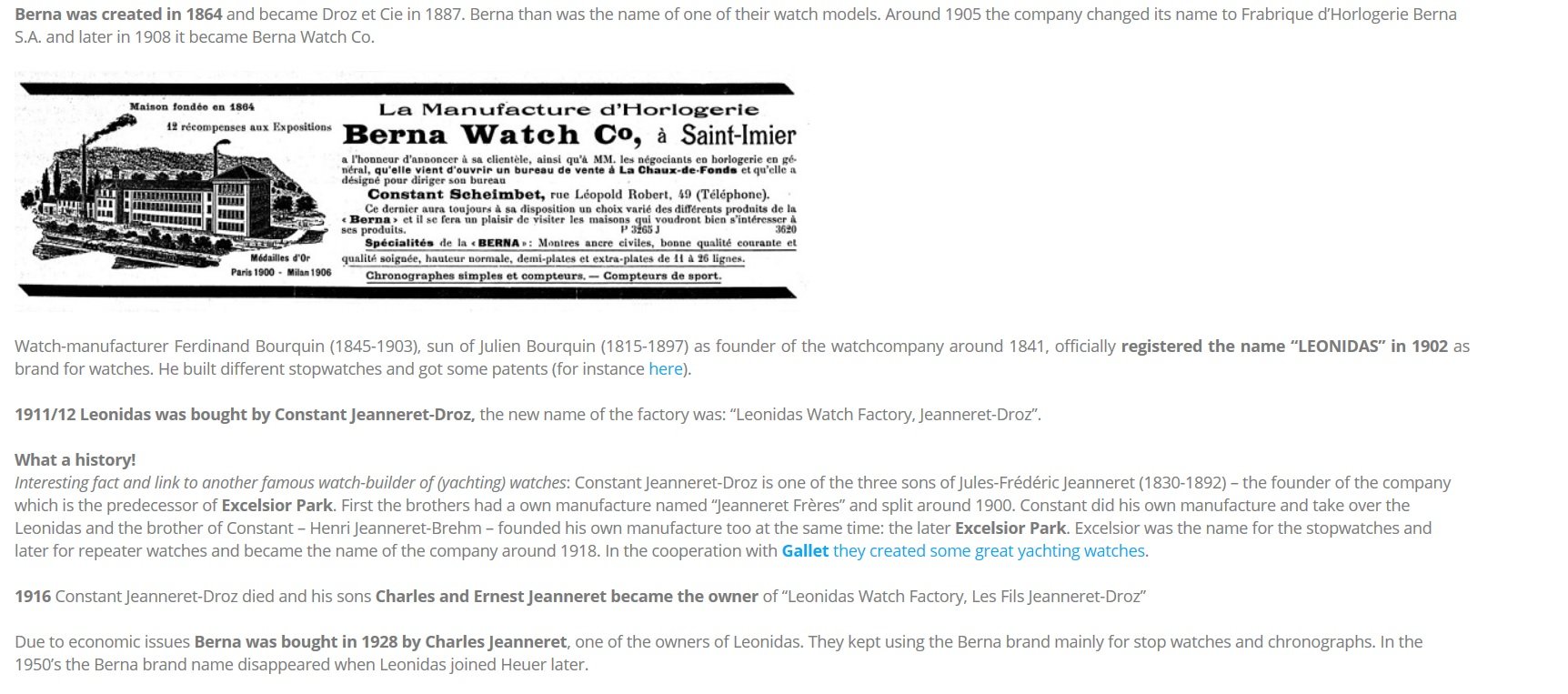Posts 1,377 Likes 2,802 Ron_W ·Oct 19, 2023 A little 5 ball regatta history with Excelsior Park and Leonidas connections. The first patent for a 5 ball watch timer was by Berna Watch Co in 1913, a stopwatch and chronograph manufacturer. Pocketwatch ofcourse . Berna was later bought by the owners of Leonidas, who continued the brand until the 50`s when it merged with Heuer and that is how Heuer got involved. Some cool racetimers as well And some lovely, lovely, valjoux chronographs, like mine ; Thanks !