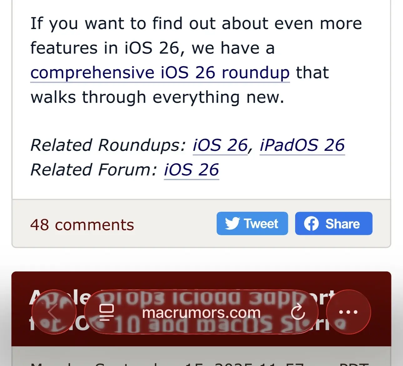 ··The ArchitectI'm surprised at how sloppy this whole iOS 26 update feels. As someone working in UI/UX, I'm aware of how change-averse people can be, especially with something as personal as their iPhone. This update feels different than usual though: drastically worse legibility in places, totally pointless gimmicky UI flourishes that contribute nothing useful to overall UX. The visual flourishes aren't even impressive, they're just messy and create visual distraction. Many motions and animations (like home screen/unlock) are even slower than before. Feels like Apple is regressing in many aspects of their user interface design.