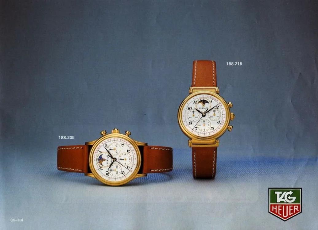 I very much like the dial of this watch, esp. the moonphase. It is a Tag Heuer 188.205 Edward Heuer Lemania Chronograph for the brand's 125th Anniversary (1985). From what I have found there are 4 refs with small variations.
