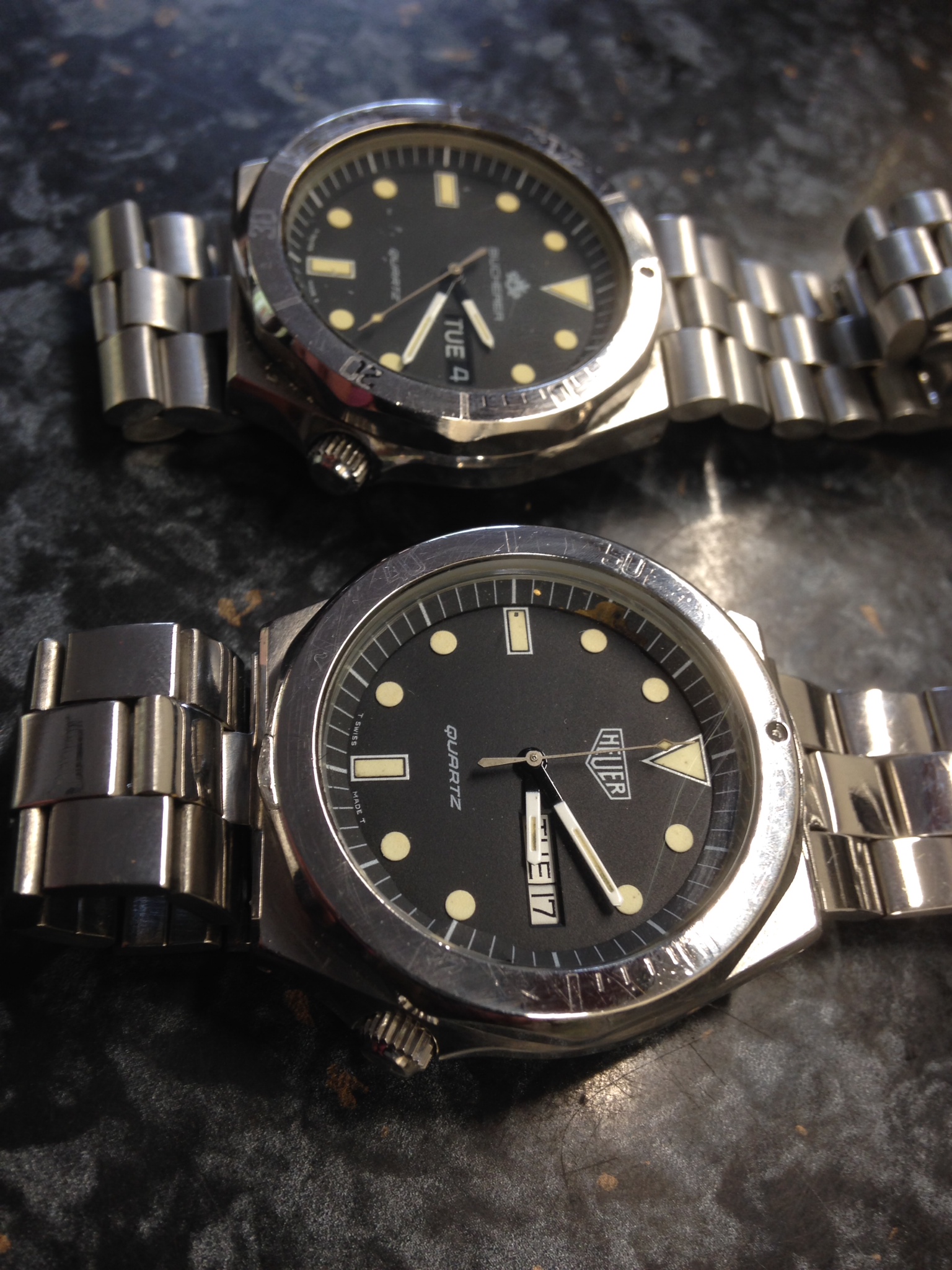 The heuer was a recent eBay buy but has some damage to the chapter ring and the bezel is well worn
