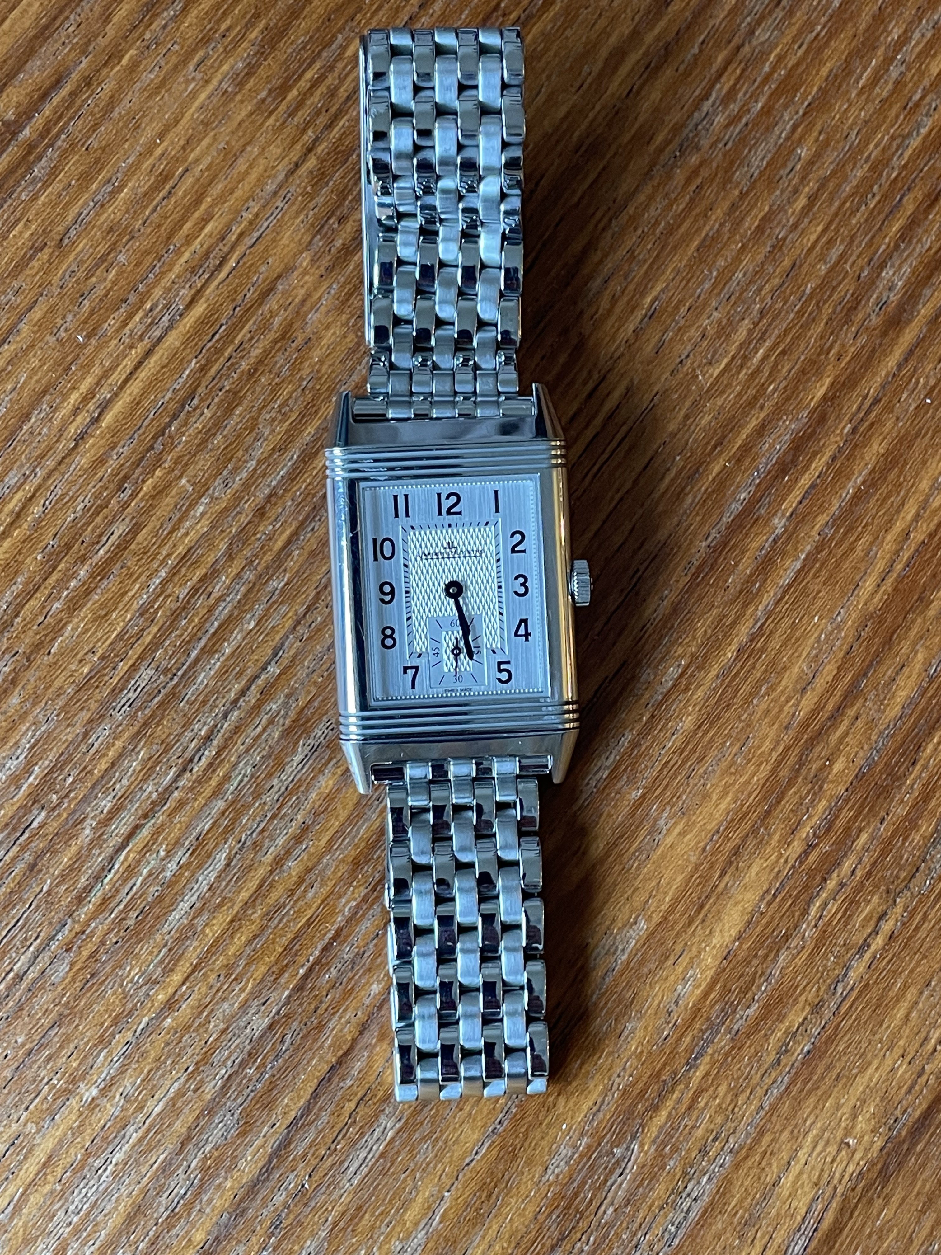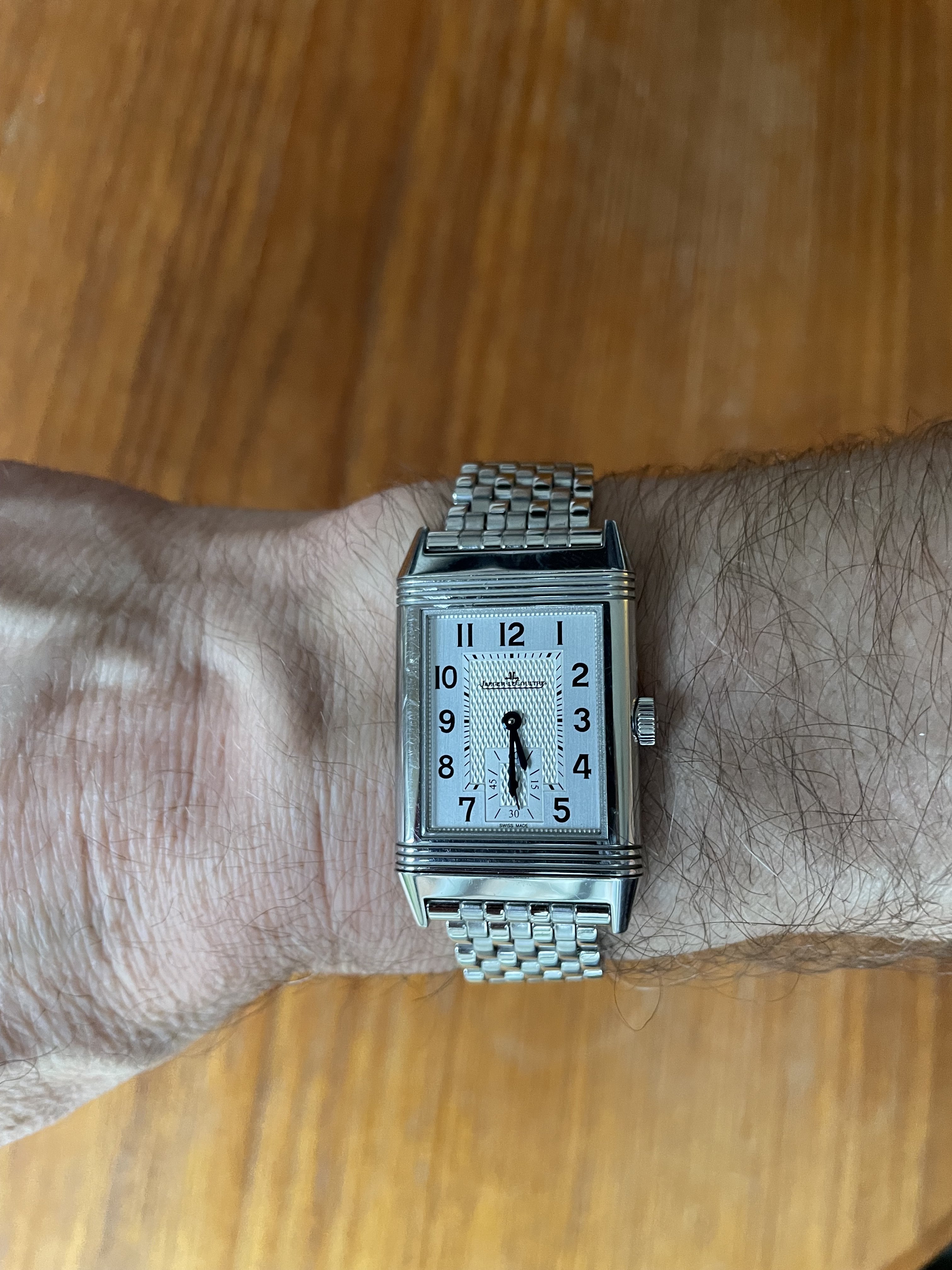 @DaveK I have the Reverso medium (42.9 x 25.5 mm) with 19mm lug width. It looks great on a leather strap, but with summer coming I’m thinking about getting a bracelet for it. I’d love to see what you’re wearing and if there are any recommendations for aftermarket or JLC options