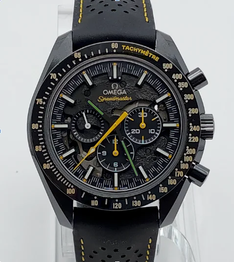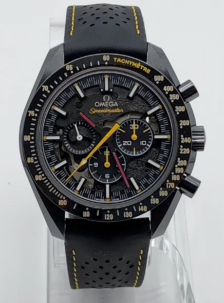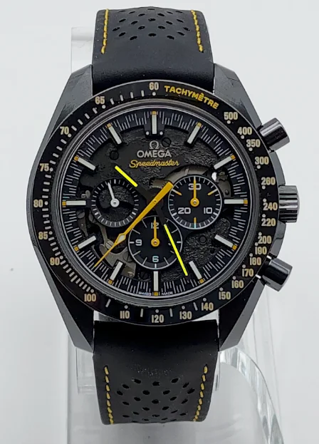 I’ve always liked the idea of a ceramic case watch since I “wear” my watches and am not one to baby them. Mine get scratches. I tried on several of the other Dark side models with the automatic movements, and wasn’t a fan of how thick they were. The case is 44.25mm in diameter, with 21mm lug width, 49mm lug to lug, and 12mm thick.