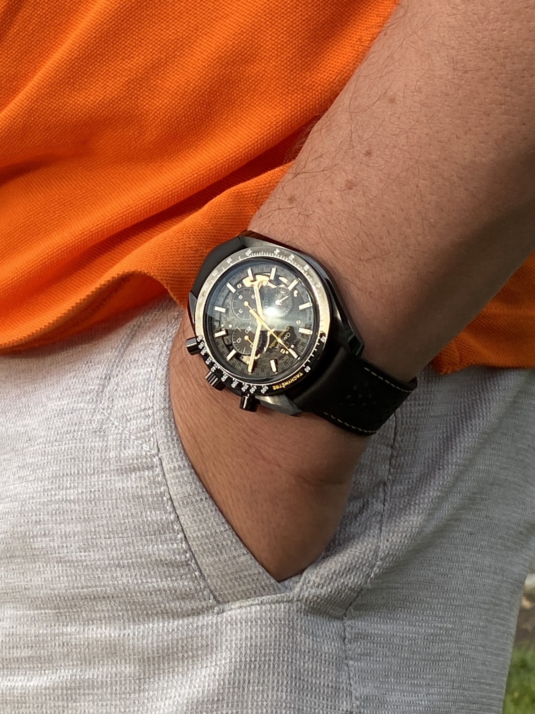 I also think that Omega do Ceramic cases better than most as they manage to achieve both brushed and polished finishes on their case work which I find visually stunning. Of course the well tried and tested and even famous movement based off the old Lemania movement works as expected and the pushers have a firm and reassuring click to them.