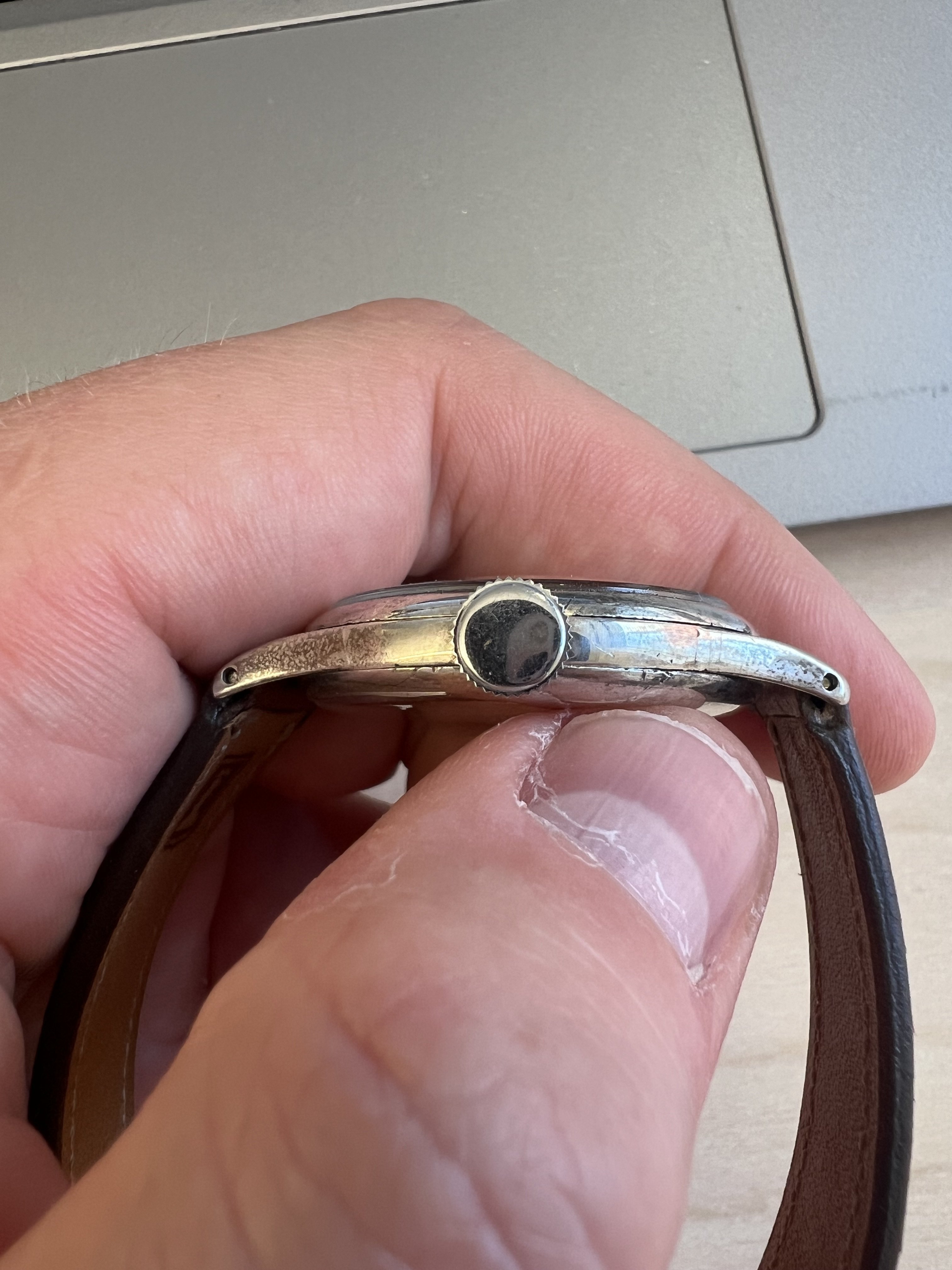 As purchased, the watch had a chunky modern crown. I’ve fitted a replacement from the parts bin that is better, but still not ideal. Does anyone here have any suggestions regarding what a “correct” crown would have looked like in this period and on this case style? Pumpkin, or something more typical to the 30s/40s? I think it will be quite a challenge to find something silver or silver plated, to develop a matching patina.