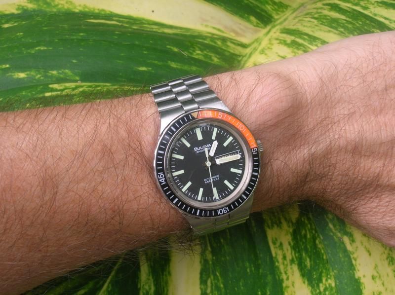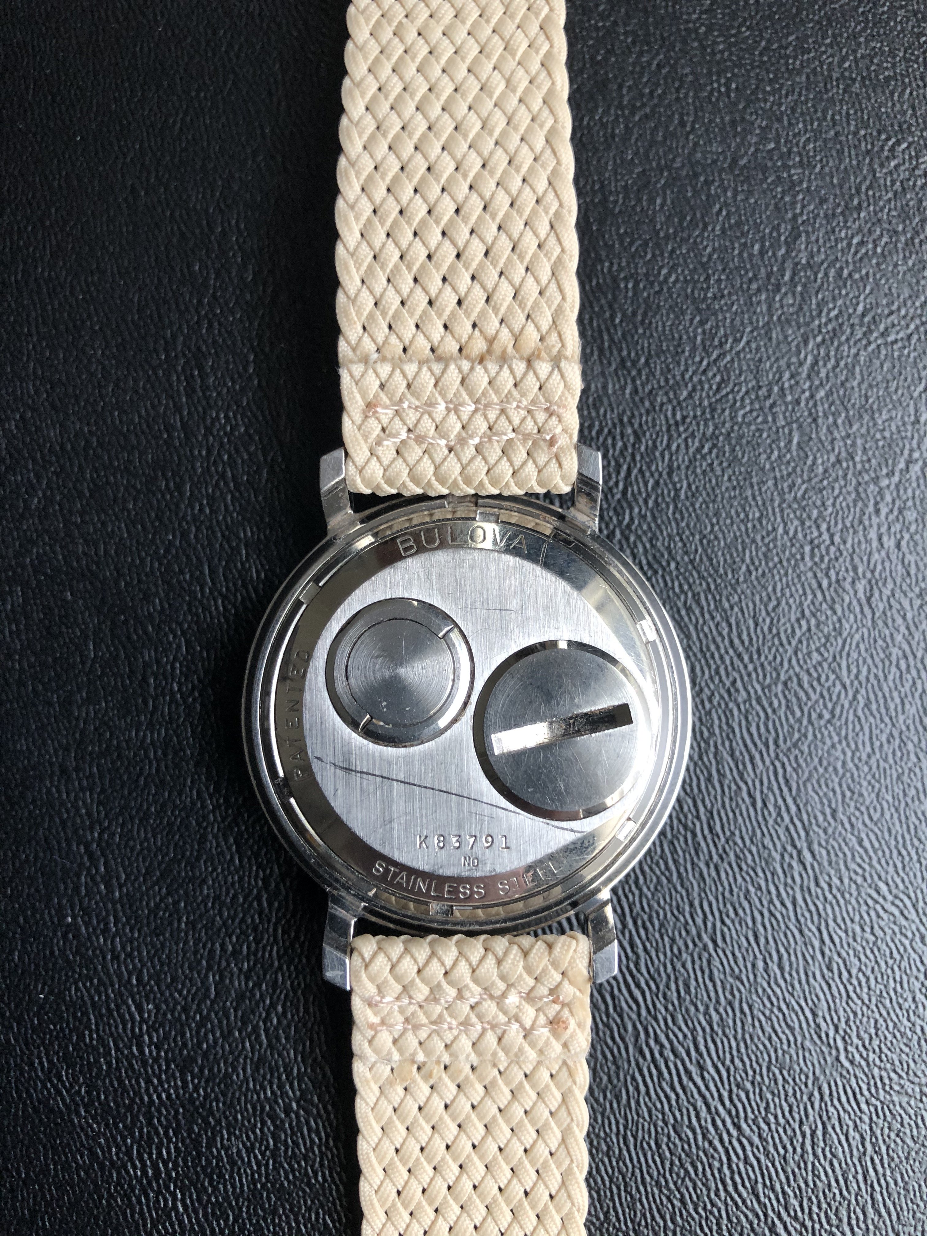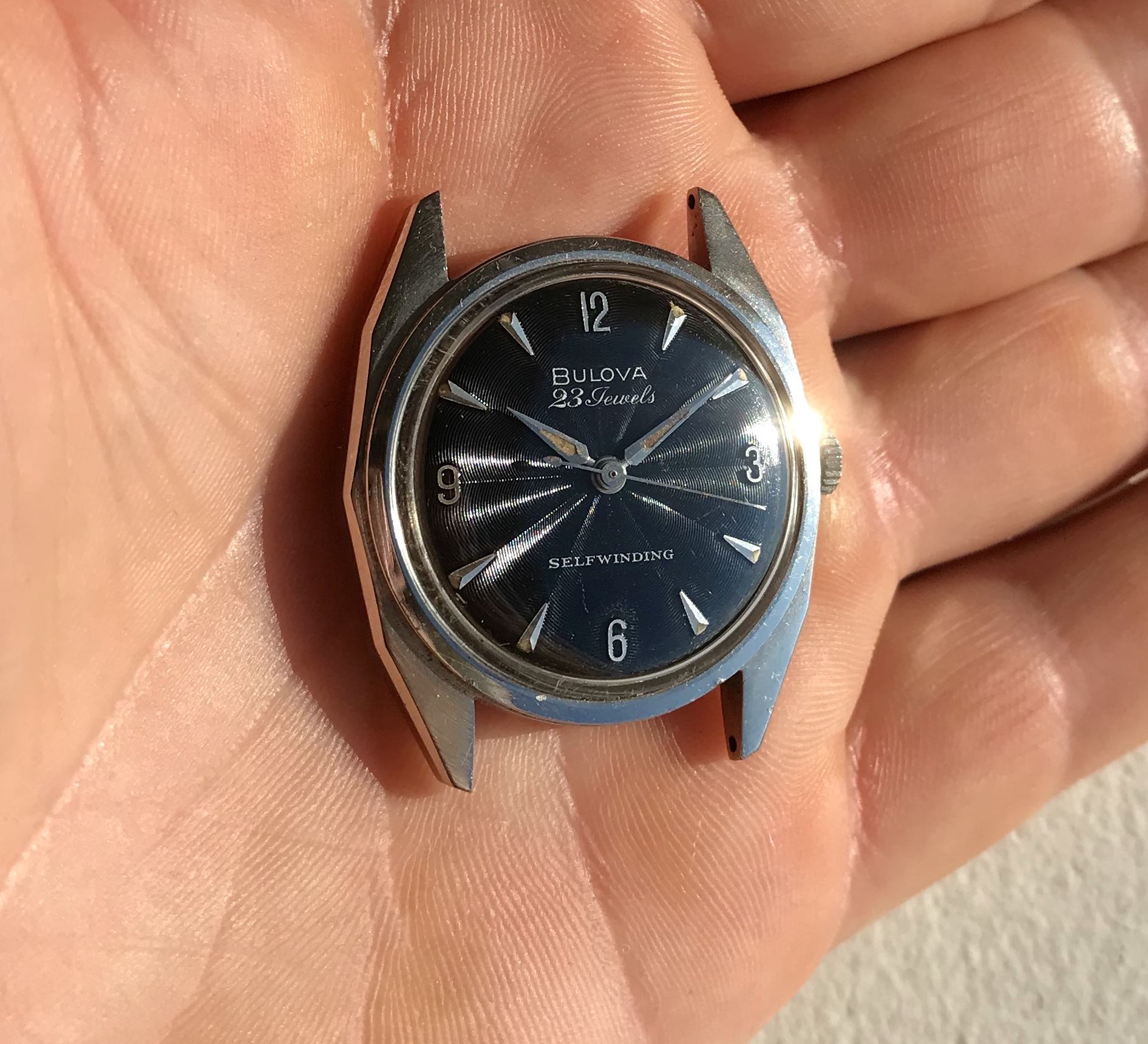 That's a really wonderful piece. I've never seen that case style before...very nice catch...what year?. I have a 1959 Bulova with a similar dial, but in gold. I have yet to definitively identify the model, but I suspect it might be a Sea King judging from the case design, "Waterproof" on the dial and its 11-AFC movement.