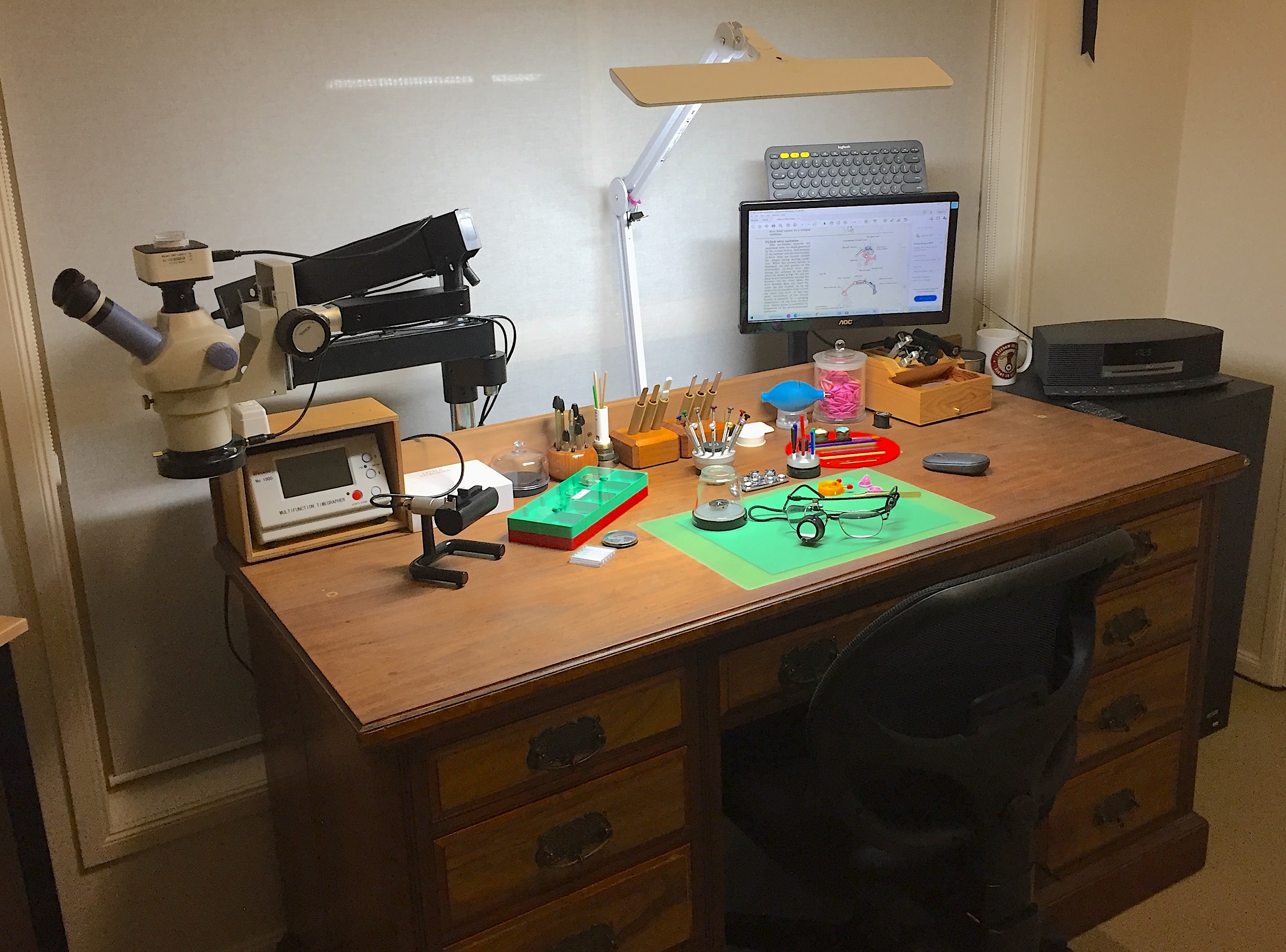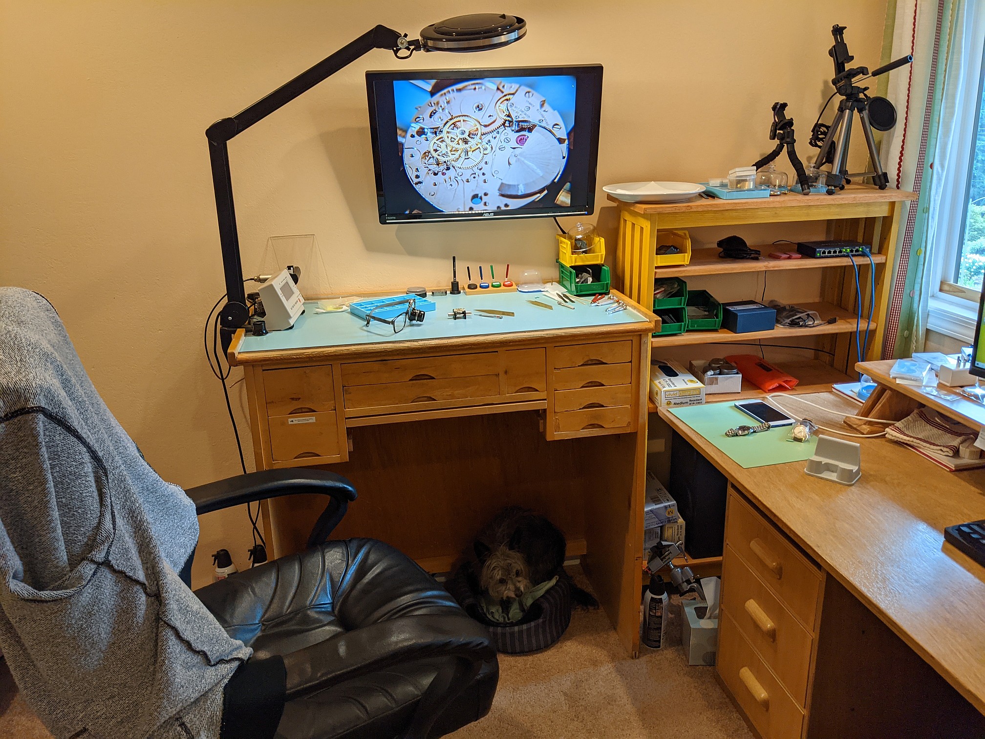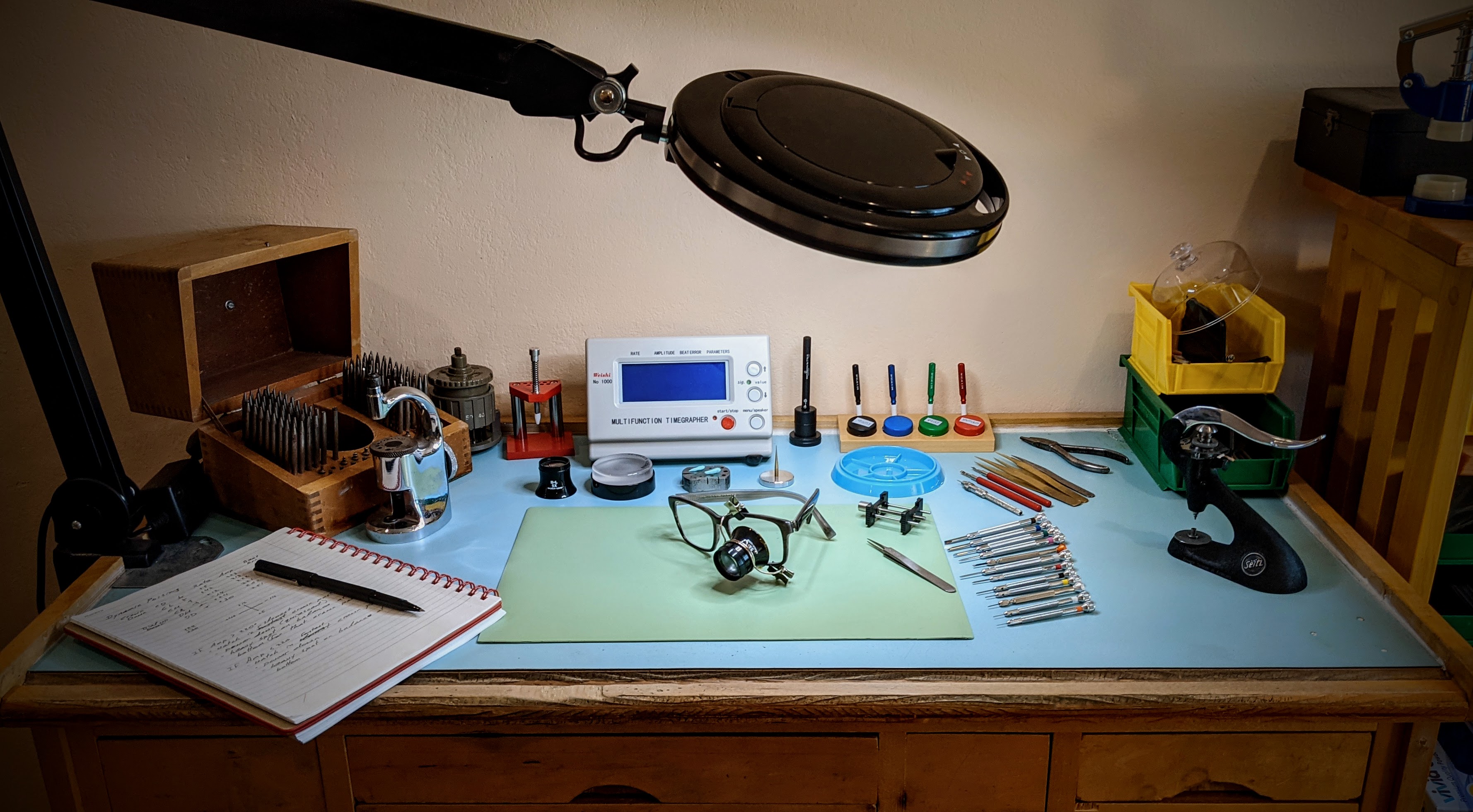 I remember visiting a fellow watchmaker in town years ago who had a bench for sale that I thought I might buy. When I got there it was covered in about 3 inches of various items. Dials jammed in there getting scratched up, movements piled up without regard for damage, and he had one tiny area cleared off to work on. I passed on the bench, but I'll never forget the poor state of it...I wonder how many customer's watches were damaged by being on that bench...