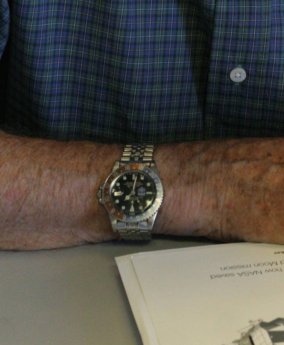 During my research I have seen a few images of Jim Lovell wearing his Rolex GMT. None were great and none could be enhanced without serious distortion to get a good look a the GMT.