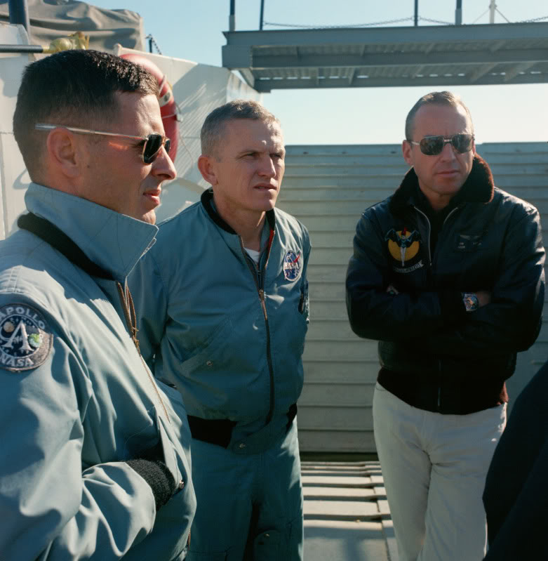 The image below has been my favorite Lovell pictures with the crew of Apollo 8. They look ready for the task at hand and Lovell's pose with the bomber jacket wearing the shinny new GMT on his wrist has always been my favorite.