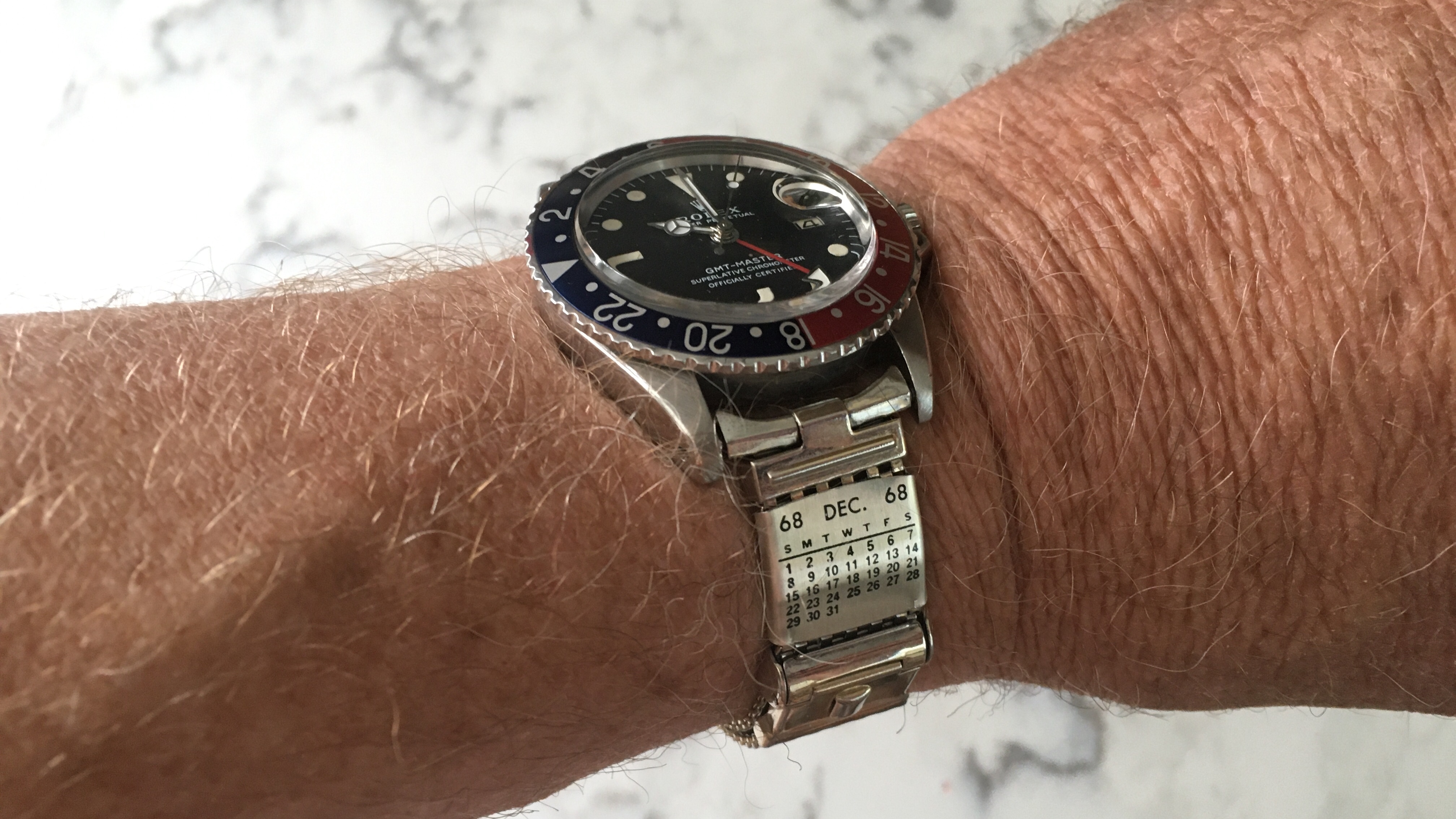 What a great looking well worn GMT 1675. It also appears that the dial has a Naval Academy crest printed on it at the 9 o'clock position.