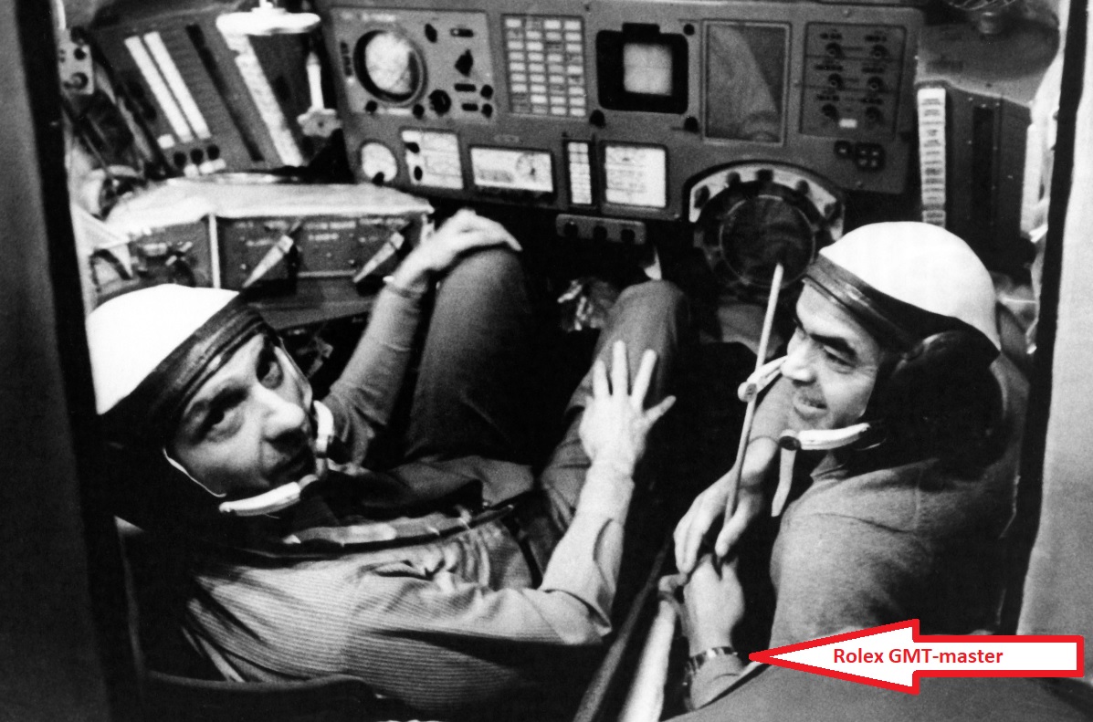 ... the very first photo I got in my hands showed Major General cosmonaut Andriyan Nikolayev wearing a Rolex GMT-master pilot watch while sitting in a Soyuz simulator with NASA astronaut Thomas "Tom" Stafford. (Photo: NASA)