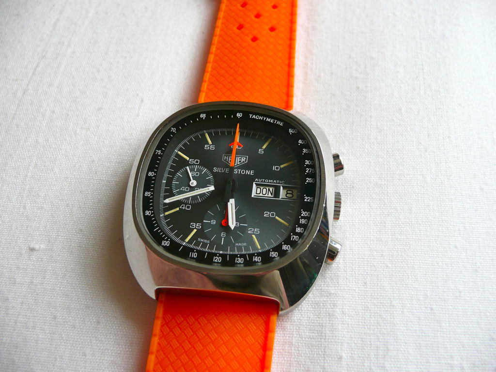 I have just bought my first Heuer, which I am very excited about! It is an Autavia 1563. It comes with a non-Gay Freres 馃檨 grains of rice bracelet, which I like (and I am trying to track down an authentic version), but I think it would look great on an orange strap too.