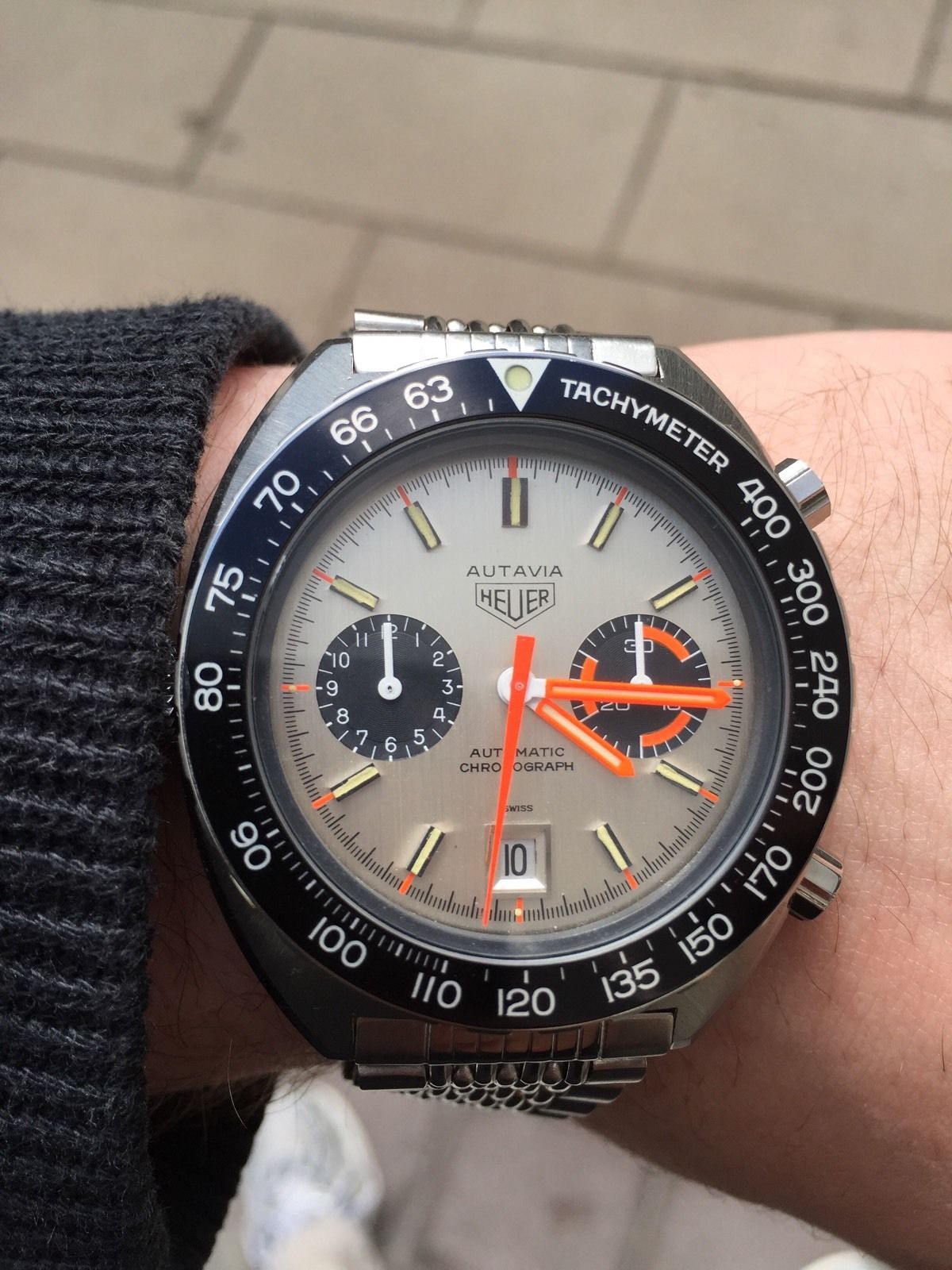 Recently I had a chance to have a look in flesh at this Autavia 11630T (3rd execution?) and did some quick mobile photos. Had it only for some minutes in my hands. It has experienced definitely rough times since it left the factory, but the dial looks very attractive to me, so I am considering a purchase and want to find out, what a fair value would be, regarding its condition. To me, as a newbie, it looks unpolished and basically to be correct?