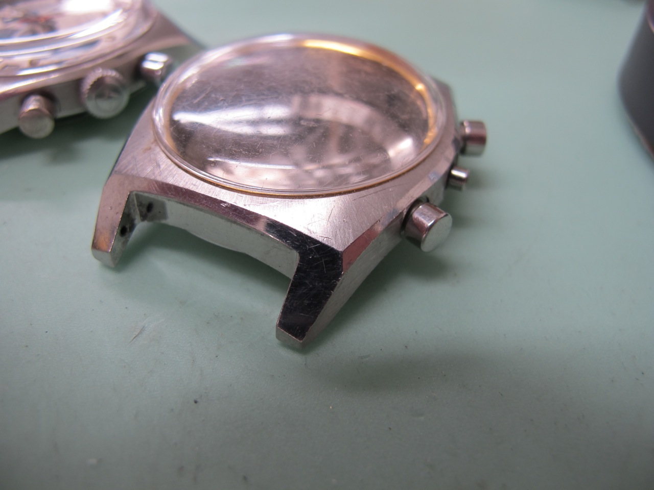 A look at the polished surfaces will reveal that he did not polish smooth all the dings, an aspect we had agreed upon before he started work. We both felt that restoring the case surfaces to perfection would have irretrievably altered the shape.